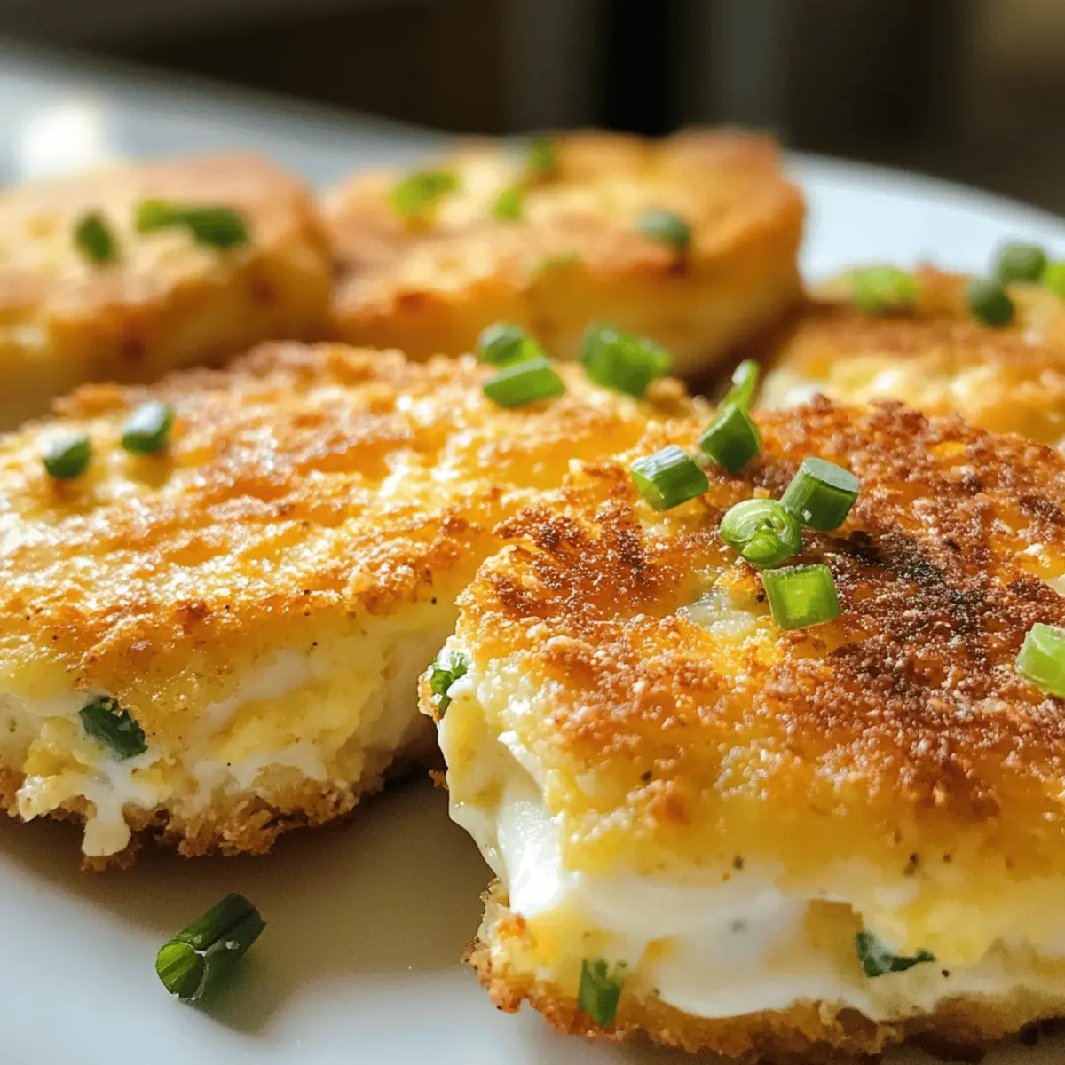 The aroma of sizzling eggs is the perfect call to the kitchen, and I can’t help but feel excited about crafting something truly special. Elevate your lunch game with my Crispy Low-Carb Egg Salad Cakes, a fun twist on the classic recipe that promises both crunch and flavor without the carbs. These beauties are not only keto-friendly but also incredibly quick to whip up, making them an ideal choice for busy weekdays or delightful gatherings. Imagine serving them warm over crisp lettuce or nestled on toasted bread, pleasing both the health-conscious and the taste adventurers at your table. Don’t you just want to dive into the deliciousness of crispy, cheesy goodness? Let’s get cooking! Why is this egg salad so special? Unique Twist: These Crispy Egg Salad Cakes transform a traditional dish into a crunchy delight, perfect for anyone looking to shake things up. Low-Carb Goodness: With just 2g of net carbs per serving, they fit seamlessly into a keto lifestyle, making healthy eating enjoyable. Quick and Easy: Made in just 30 minutes, they’re perfect for busy weekdays, ensuring you don’t sacrifice flavor for speed. Versatile Options: Serve them in various ways—on lettuce leaves, along with a light salad like a Tomato Garlic Salad, or on toasted bread for a heartier meal that impresses at gatherings. Crowd-Pleaser: These crispy cakes are sure to impress everyone at the table, delivering a protein-packed punch that appeals to all dietary preferences! Crispy Egg Salad Ingredients • Discover the delightful components! For the Cakes • Hard-Boiled Eggs – The protein-packed foundation of the dish; always opt for fresh eggs for the best flavor. • Low Moisture Mozzarella – Adds creaminess and allows for a lovely stretch when cooked; try shredded cheddar for a fun twist. • Parmesan Cheese – Provides a salty, savory depth; swap it with pecorino if you prefer a sharper taste. • Mayonnaise – Binds everything together, offering richness; Greek yogurt is a lighter substitute. • Dijon Mustard – Infuses the mixture with a tangy flavor burst; yellow mustard is an easy alternative. • Green Onions – Adds a lovely fresh crunch and mild onion taste; chives can replace them for a more subtle flavor. • Salt and Pepper – Essential for enhancing taste; freshly cracked pepper contributes to a more robust flavor profile. Cooking Essentials • Cooking Oil – A light spray is all you need to achieve a perfect sear for those crispy egg salad cakes; use your favorite oil for frying. Enjoy crafting these Crispy Egg Salad cakes that are not only delightful but also cater to a healthier lifestyle. Happy cooking! Step‑by‑Step Instructions for Crispy Egg Salad Cakes Step 1: Prepare the Egg Mixture In a large mixing bowl, combine chopped hard-boiled eggs, low moisture mozzarella, grated Parmesan, mayonnaise, Dijon mustard, minced green onions, salt, and pepper. Mix thoroughly until all ingredients are well combined, creating a cohesive and slightly creamy texture. This will be the flavorful base for your Crispy Egg Salad Cakes, so ensure everything is evenly integrated for maximum taste. Step 2: Shape the Discs Using a 1/4 cup measuring cup, scoop the egg salad mixture and gently form it into round discs on a plate. Aim for a thickness of about 1-inch to ensure even cooking. This shaping will create the crispy exterior when cooked, so take care to maintain a uniform size for all the cakes. Set them aside as you prepare to cook. Step 3: Heat the Pan Preheat a non-stick frying pan over medium-high heat for about 2 minutes. Once hot, spray the pan with a light coating of cooking oil to prevent sticking. You want the oil shimmering but not smoking, which signals that it’s ready for the Crispy Egg Salad Cakes. Make sure the pan is adequately heated to achieve that irresistible golden-brown crust. Step 4: Sear the Cakes Carefully add the shaped egg salad discs to the hot pan, making sure not to overcrowd them to maintain high heat. Sear each disc for about 1-2 minutes or until they develop a beautiful golden crust. Once the underside is crispy, gently flip them over and sear for an additional 1-2 minutes. The centers should remain creamy while the outsides crisp up. Step 5: Complete the Cooking After searing all the discs, remove them from the pan and place them on a warm plate. Repeat the cooking process for any remaining discs, ensuring you maintain the temperature of the pan. The final result should be a delightful batch of Crispy Egg Salad Cakes, with each cake having a satisfying crunch on the outside and creamy texture inside. Step 6: Serve and Enjoy Present your Crispy Egg Salad Cakes warm, beautifully arranged over butter lettuce leaves or on toasted bread for a heartier meal. These delicious creations not only taste fantastic but also provide a healthy, low-carb option for lunch or appetizers. Share these delightful cakes with family and friends for a satisfying and flavorful experience. Crispy Egg Salad Customizations Feel free to get creative with your Crispy Egg Salad Cakes, enhancing flavor and nutrition with these fun variations! Veggie Boost: Add finely diced celery or bell peppers for extra crunch and flavor. The vibrant colors will make your dish even more appealing! Spicy Kick: Spice it up with jalapeños or a splash of hot sauce for an exciting twist. This adds a bold heat that can elevate the flavor profile. Herbaceous Twist: Fresh herbs like dill or parsley can infuse your cakes with fresh, aromatic flavors. The bright notes beautifully complement the creamy texture. Dairy-Free: Substitute low moisture mozzarella and Parmesan with dairy-free cheese alternatives for a vegan-friendly option. You won’t sacrifice flavor, and everyone can enjoy! Crunchy Coating: For an added layer of texture, coat the discs in crushed pork rinds or almond flour before frying. This crispy outer layer offers a delightful contrast. Savory Additions: Fold in crumbled bacon or cooked sausage 