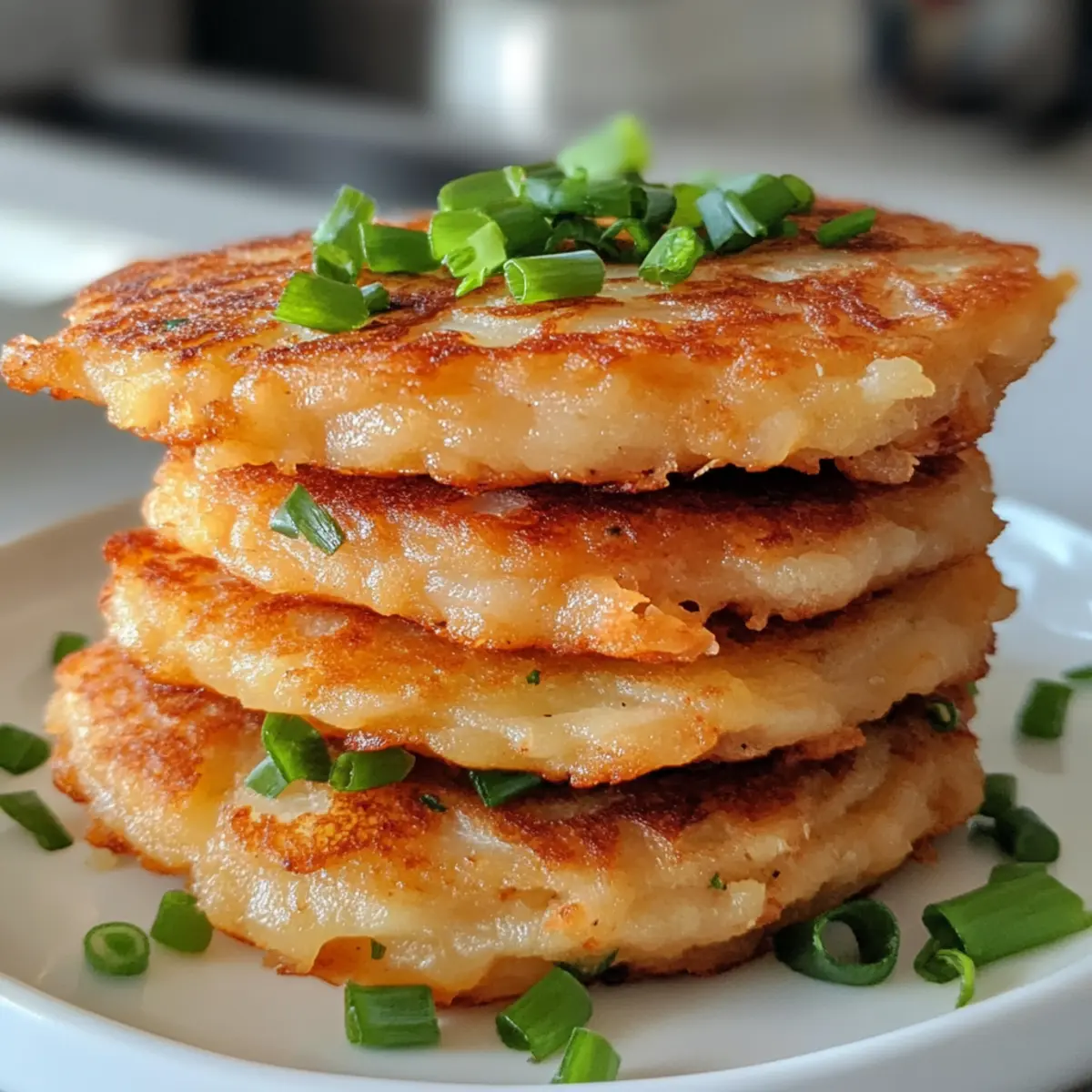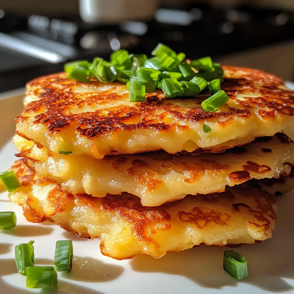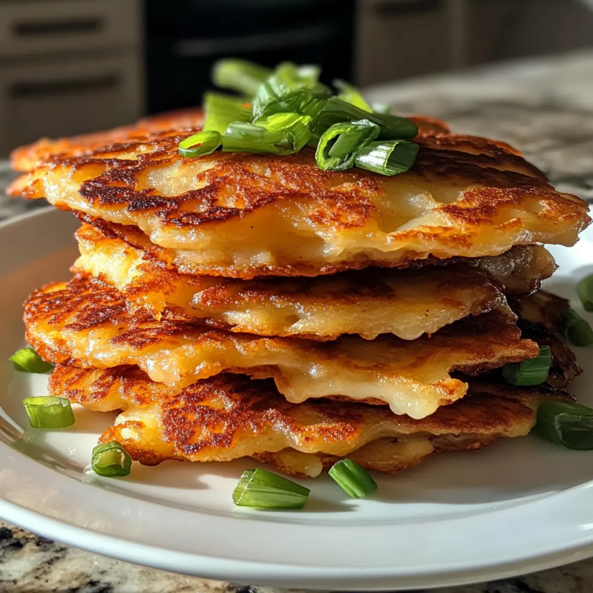 As I flipped my first pancake, the crackling sound filled my kitchen, instantly transporting me to the bustling streets of Seoul where crispy snacks reign supreme. These Crispy Korean Potato Pancakes (Gamjajeon) combine the creamy goodness of russet potatoes with a delightful cheesy twist, making them a scrumptious choice for any time of day. What I love most? They’re quick to whip up and endlessly customizable—perfect for impressing guests or simply satisfying a late-night craving. With the savory crunch of green onions and the promise of gooey cheese in every bite, you’ll find it hard to resist returning for seconds. Are you ready to give these irresistible pancakes a try? Let’s dive in! Why Are Crispy Korean Potato Pancakes Special? Unique Flavor Profile: The combination of russet potatoes and gooey cheese creates a deliciously irresistible bite. Quick Preparation: You can whip these up in no time, making them ideal for busy weeknights or unexpected guests. Customizable Options: Swap in your favorite cheeses or even add finely grated zucchini to elevate the nutrition. Crowd-Pleasing Snack: Perfect for parties or family gatherings, they’re sure to be a hit alongside Cinnamon Roll Pancakes or as a delightful appetizer. Savory and Satisfying: Their crispy golden exterior encases a tender, cheesy center, making them delightful at any hour. Indulge in these potatoes that are anything but ordinary! Crispy Korean Potato Pancakes Ingredients For the Pancake Mixture • Russet Potatoes – The backbone of this dish, providing structure and crispiness; Yukon Gold offers a creamier alternative. • Cornstarch – Essential for binding, ensuring your pancakes achieve that coveted crispy texture. • Salt – A flavor enhancer that ties all the ingredients together beautifully. • Black Pepper – Adds a whisper of warmth; feel free to adjust to your taste. • Green Onions – Brings a fresh, mild onion flavor; chives can be swapped in for a similar taste. For the Cheesy Twist • Mozzarella Cheese – Its gooey texture makes each bite heavenly; consider cheddar or pecorino for different flavor notes. For Frying • Oil – Choose a neutral oil with a high smoke point like vegetable or canola, important for perfect frying. Are you ready to make these delightful Crispy Korean Potato Pancakes? They’re a fun and delicious dish to bring family together, and customization is just a sprinkle away! Step‑by‑Step Instructions for Crispy Korean Potato Pancakes Step 1: Prep Potato Mixture Start by peeling and grating 2-3 russet potatoes into a large bowl. To ensure your Crispy Korean Potato Pancakes have the best texture, drain excess moisture from the potatoes by squeezing them in a clean kitchen towel. Then, add 1-2 tablespoons of cornstarch, a pinch of salt, freshly ground black pepper, and chopped green onions to the bowl. Mix until everything is well combined. Step 2: Incorporate Cheese Next, fold in 1 cup of grated mozzarella cheese into the potato mixture until evenly distributed. The cheese will add a delightful gooeyness to your crispy pancakes. This is also the perfect time to get creative; feel free to swap mozzarella for cheddar or add in any additional ingredients, like finely grated zucchini, for extra flavor! Step 3: Heat Pan Place a non-stick skillet over medium heat and allow it to warm for about 2 minutes. Once hot, drizzle in 2-3 tablespoons of vegetable or canola oil. You want just enough to cover the bottom of the pan lightly. To test if the oil is ready, sprinkle a bit of the potato mixture into the pan; if it sizzles, it’s perfect for frying. Step 4: Form and Cook Pancakes Scoop portions of the potato mixture into the hot oil, using about 1/4 cup per pancake. Flatten each scoop gently with a spatula to form disc shapes, ensuring even cooking. Allow the pancakes to fry for 3-4 minutes until they turn golden brown and crispy on the bottom, then carefully flip and fry the other side for another 3-4 minutes. Step 5: Melt Additional Cheese As the second side is cooking, sprinkle a small amount of extra cheese on top of each pancake. This will create that delicious melted layer on your Crispy Korean Potato Pancakes. Make sure to monitor the cooking to maintain optimal crispiness, adjusting the heat as necessary to avoid burning. Step 6: Serve Warm Once both sides are perfectly crispy and golden, remove the pancakes from the pan and let them drain briefly on paper towels. Garnish with remaining chopped green onions before serving. These delightful pancakes are best enjoyed warm; consider pairing them with a side of soy sauce or your favorite dipping sauce to elevate the experience! Crispy Korean Potato Pancakes Variations Feel free to explore and play with these delicious variations—your taste buds will thank you! Cheese Swap: Substitute mozzarella with cheddar or gouda for a different flavor experience. The sharpness of cheddar adds a delightful twist! Herbed Delight: Mix in fresh herbs like parsley or dill for an aromatic touch. These herbs brighten the flavor while adding a lovely green hue. Spicy Kick: Incorporate finely diced jalapeños or a sprinkle of cayenne for some heat. This mouthwatering addition makes every bite a little adventure. Veggie Boost: Add finely grated zucchini or carrots (squeeze out excess moisture) for added nutrition and vibrant color. They blend beautifully into the pancake batter! Smoky Flavor: Sprinkle in smoked paprika for a delightful smokiness that pairs perfectly with the crispiness of the pancakes. It’s a flavor explosion! Vegan Option: Substitute cheese with nutritional yeast for a cheesy flavor without the dairy. These pancakes can be just as comforting and flavorful. Baked Version: Prep in an oven by placing mixed batter in a greased baking dish and baking at 400°F (200°C) for about 20 minutes. It’s a great way to enjoy them with less oil! Savory Dipping Sauce: Serve with a soy sauce and vinegar dipping sauce to enhance the fl