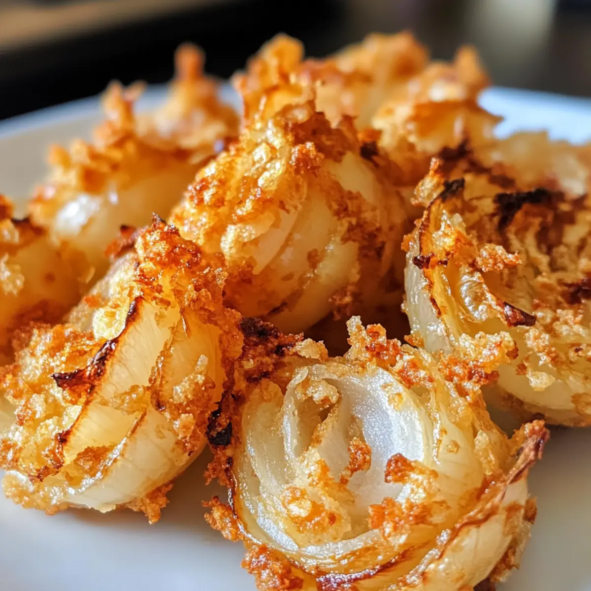 I recently stumbled upon a delightful twist on a restaurant favorite: Crispy Mini Blooming Onions in Air Fryer. As I took my first bite, I was completely enchanted by their light, airy crunch and golden petals that seemed to open up like a flower—perfect for dipping in your sauce of choice. These crispy wonders not only make for an irresistible appetizer but are also a healthy alternative to traditional fried onion rings, thanks to the air fryer. Plus, with endless customization options, like cheese-stuffed or spicy versions, they suit any palate and occasion. Who could resist a fun, flavorful snack that can easily be tailored to satisfy cravings? Ready to transform your kitchen into a mini steakhouse? Let’s dive into this mouthwatering recipe!