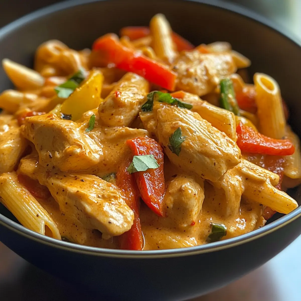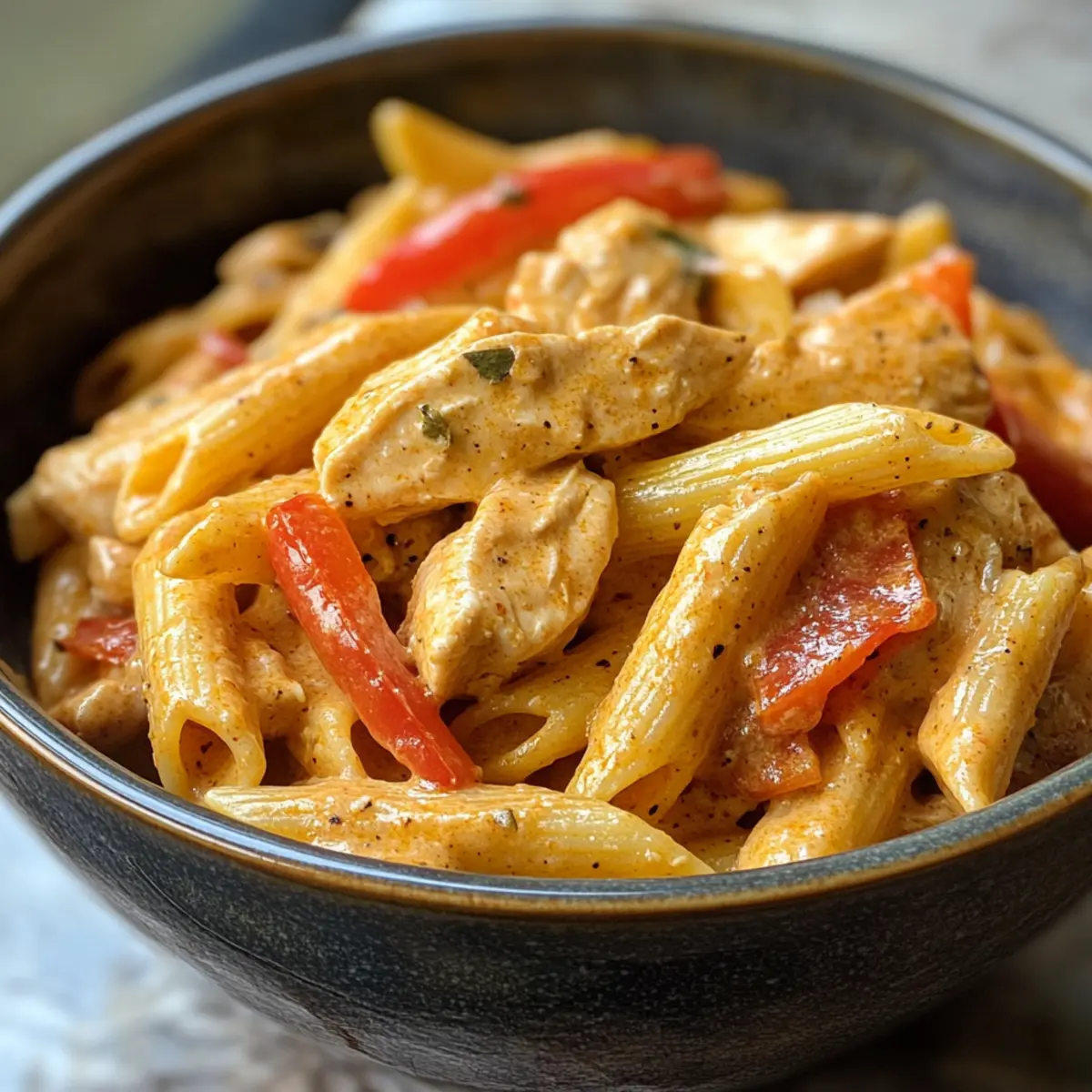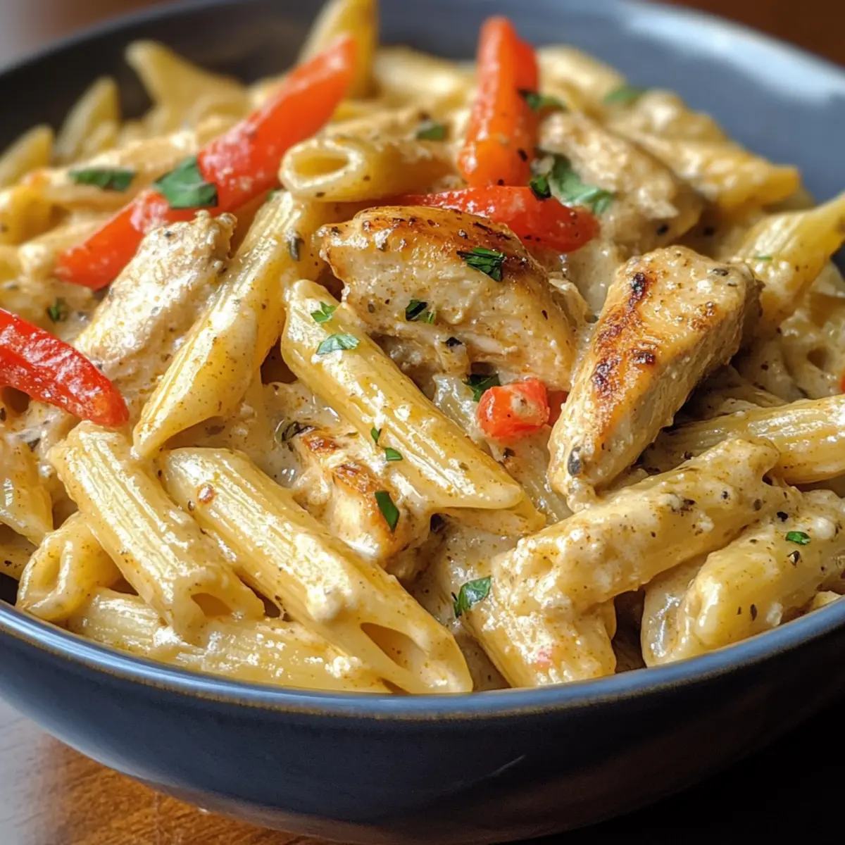 The intoxicating aroma of Cajun spices wafted through my kitchen as I prepared for a cozy night in. That’s when I first whipped up this Crock Pot Creamy Cajun Chicken Pasta, a warm hug in a bowl that promises to please everyone at the table. With tender chunks of chicken and vibrant bell peppers swimming in a luscious, creamy sauce, this dish is not only beginner-friendly but also a lifesaver on those hectic weeknights. Just 15 minutes of prep, and the slow cooker works its magic, turning simple ingredients into a satisfying experience. Whether for a family dinner or a gathering of friends, this flavorful twist on classic pasta is sure to become a go-to favorite. Are you ready to take your taste buds on a flavorful adventure? Why is this recipe a crowd-pleaser? Mouthwatering Flavor: The Cajun seasoning adds a delightful kick that elevates the dish from ordinary to extraordinary. Simple Preparation: With just 15 minutes of hands-on time, you can set up the slow cooker and let it work its magic, making it perfect for busy weeknights. Creamy Comfort: The rich sauce coats the pasta beautifully, creating a satisfying meal that feels like a warm hug on a chilly evening. Versatile Options: Feel free to customize this dish by swapping in your favorite vegetables or pasta shapes, ensuring everyone at the table finds something to enjoy. Family-Friendly: The dish appeals to all ages, making it an ideal choice for family dinners or gatherings with friends. Pair it with garlic bread or a fresh side salad to complete the meal! Try it out with your favorite seasonings and enjoy a new twist on dinner! Crock Pot Creamy Cajun Chicken Pasta Ingredients For the Chicken • Chicken Breasts – Use boneless, skinless chicken for a tender, moist bite. • Olive Oil – Helps the seasoning stick and adds a rich flavor; vegetable oil can be used as a substitute. For the Seasoning • Cajun Seasoning – This brings that essential spicy kick; feel free to swap in Creole seasoning for a different flavor profile. • Garlic Powder – Enhances the overall taste with a hint of sweetness. • Onion Powder – A convenient way to add depth; fresh onions can be a nice substitute. • Smoked Paprika – Elevates the dish with its smoky flavor, perfect for a Cajun twist. • Salt – Balances flavors, remember to taste as you go! • Black Pepper – For an added layer of warmth. For the Vegetables • Bell Pepper (sliced) – Adds sweetness and texture; experiment with different colors or even zucchini! • Onion (thinly sliced) – Provides aromatic sweetness; red onion offers a milder hint. • Garlic (minced) – Fresh garlic packs a flavor punch, but garlic powder works in a pinch. For the Sauce • Diced Tomatoes (canned, with juices) – Brightens the dish with acidity and moisture; fresh tomatoes are a great substitute. • Chicken Broth – Rounds out the flavor; opt for low-sodium for a healthier option. • Heavy Cream – Creates that rich, creamy base; coconut milk is a great dairy-free substitute. • Parmesan Cheese (grated) – Intensifies creaminess, while nutritional yeast works for a dairy-free alternative. For the Pasta • Penne Pasta – Holds the creamy sauce well; substitute with any pasta shape you love, like rotini or fettuccine. For Garnish • Fresh Parsley – Adds a pop of color and freshness; feel free to skip if you don’t have any on hand. With these simple yet flavorful ingredients, you’re on your way to crafting a delicious Crock Pot Creamy Cajun Chicken Pasta that will impress everyone at your table! Step‑by‑Step Instructions for Crock Pot Creamy Cajun Chicken Pasta Step 1: Season the Chicken Begin by seasoning the boneless, skinless chicken breasts with olive oil, Cajun seasoning, garlic powder, onion powder, smoked paprika, salt, and black pepper. Ensure the chicken is well-coated for maximum flavor. This step should take about 5 minutes, setting the stage for your Crock Pot Creamy Cajun Chicken Pasta. Step 2: Brown the Chicken Next, heat a skillet over medium heat and brown the seasoned chicken for 2-3 minutes on each side until golden brown. This step adds depth to the chicken’s flavor, enhancing your dish. Once browned, remove the chicken from the skillet and place it in the bottom of your slow cooker. Step 3: Add the Vegetables Layer sliced bell peppers, thinly sliced onions, and minced garlic on top of the browned chicken in the slow cooker. The vibrant colors and aromatic scents will invite everyone to the table! Make sure to distribute the vegetables evenly to allow for even cooking. Step 4: Incorporate the Tomatoes and Broth Pour in the canned diced tomatoes (with juices) and chicken broth over the layered vegetables. The liquid will help keep the chicken moist while cooking. Ensure the ingredients are well combined without disturbing the chicken too much, creating a flavorful base for your Crock Pot Creamy Cajun Chicken Pasta. Step 5: Cook the Chicken Mixture Cover the slow cooker and cook on low for 4-5 hours or on high for 2-3 hours. The chicken should be tender and easily shred apart when done. This slow cooking allows all the flavors to meld beautifully, ensuring a delicious outcome. Step 6: Shred the Chicken After cooking, remove the chicken from the slow cooker and shred it using two forks. Return the shredded chicken to the sauce mixture, stirring well to incorporate. This step ensures that each bite of your Crock Pot Creamy Cajun Chicken Pasta is filled with flavor and tender chicken. Step 7: Add Cream and Cheese Next, stir in the heavy cream and grated Parmesan cheese into the slow cooker until completely smooth. This rich addition makes the sauce creamy and luxurious! Allow the mixture to heat through for about 5-10 minutes, ensuring everything is combined perfectly. Step 8: Cook the Pasta While the sauce is heating, cook the penne pasta according to the package instructions until al dente, usually about 8-10 minutes. Drain the pasta and prepare to combi