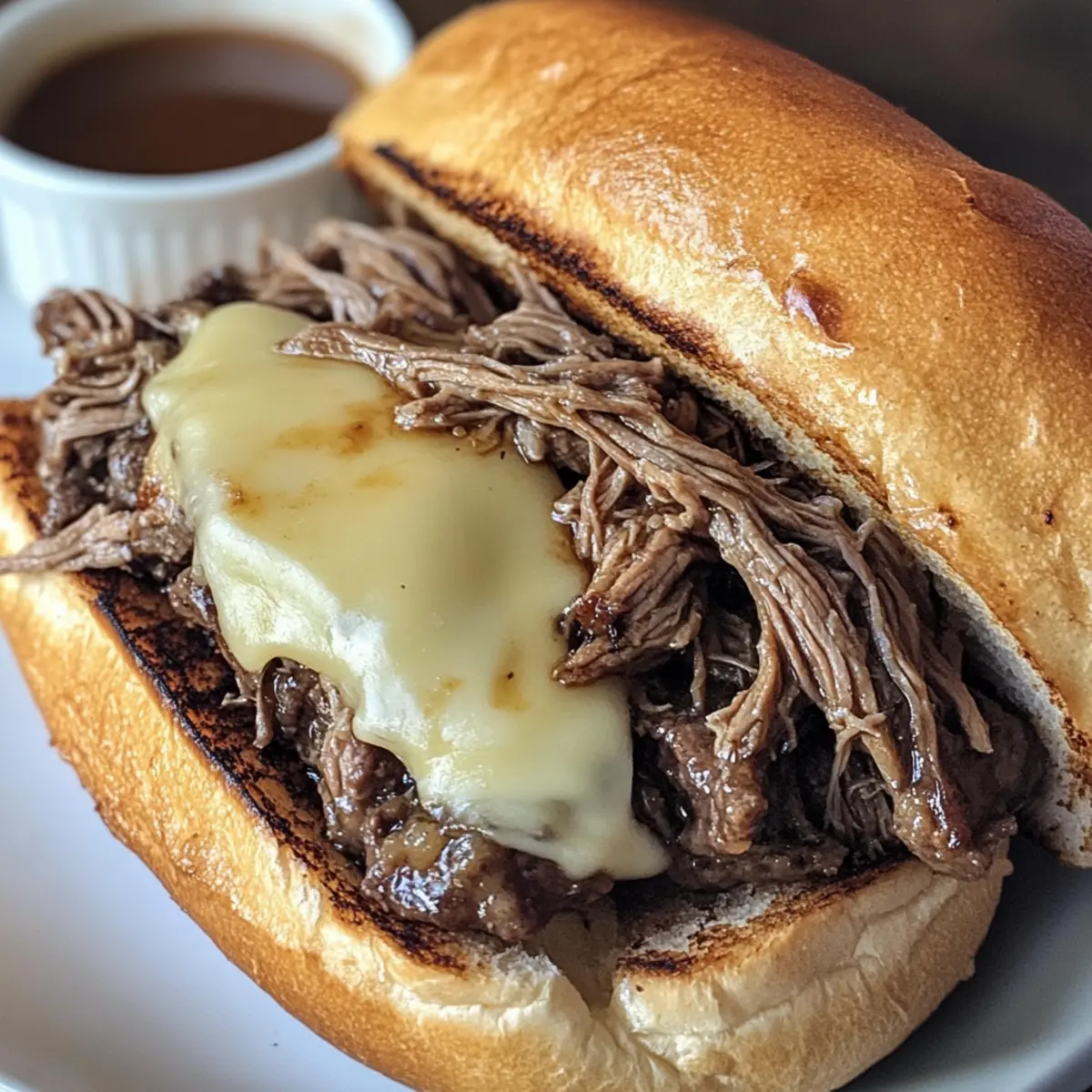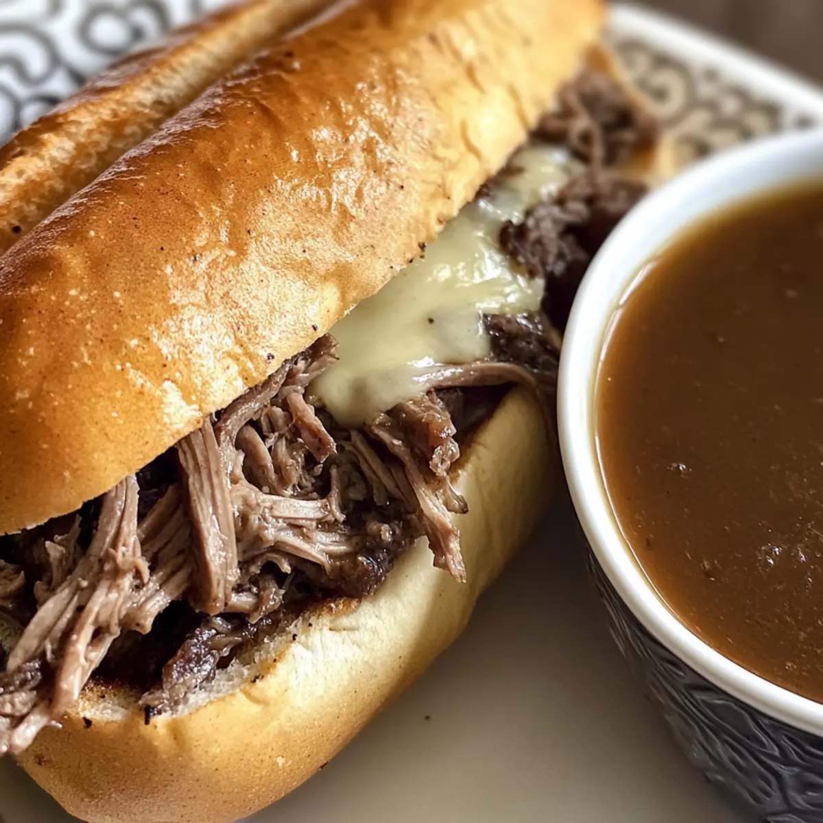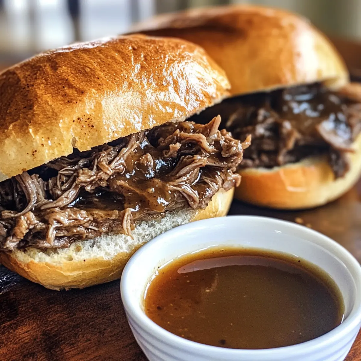 The aroma wafting through my kitchen felt like a warm embrace, instantly taking me back to cozy family gatherings. Today, I’m thrilled to share my go-to recipe for Crockpot French Dip Sandwiches, a comforting meal that transforms simple ingredients into unforgettable flavors. With tender beef and rich au jus served on toasted hoagie rolls, this dish is a masterpiece of easy preparation and hearty satisfaction, making it the perfect choice for busy weeknights or game day feasts. Plus, the slow-cooking magic means you can focus on what really matters—enjoying time with loved ones. Ready to dive into a culinary experience that will leave your taste buds dancing? Let’s get cooking! Why Are Crockpot French Dip Sandwiches a Must? Ultimate Comfort Food: Experience cozy vibes with tender beef soaking in rich au jus, making every bite a warm hug. Effortless Preparation: Simply set your crockpot and let it do the work—perfect for busy days or casual weekends. Customizable Delight: Whether you prefer the classic version or want to try something new with veggies or different cheeses, this recipe invites creativity. Impressive Flavor: The combination of seasoning and slow cooking ensures a depth of flavor that will have everyone asking for seconds! Crowd-Pleaser: Ideal for game days or family dinners, these sandwiches are sure to please guests and family alike. Don’t miss out on serving them alongside crispy Bites Zesty Dip for an extra treat! Crockpot French Dip Sandwiches Ingredients For the Beef • Beef Chuck Roast – Provides rich flavor; brisket or round roast makes for great substitutes. • Olive Oil – Enhances browning; use vegetable oil if needed. • Salt – Essential for flavor; kosher or sea salt offers a great texture. • Black Pepper – Adds depth; always choose freshly cracked for the best taste. • Garlic Powder – Infuses savory notes; fresh garlic works well too. • Onion Powder – Brings sweetness; you can swap in fresh onions if desired. For the Cooking Liquid • Beef Broth – Moisturizes; veggie broth is perfect for a vegetarian version. • Worcestershire Sauce – Adds flavor complexity; soy sauce is a good alternative in a pinch. • Soy Sauce – Enhances umami; tamari suits those needing a gluten-free option. For the Sandwich Assembly • Hoagie Rolls – The heart of the sandwich; sub rolls or baguettes are tasty options too. • Provolone Cheese (Optional) – Adds creaminess; feel free to skip for a dairy-free delight. • Fresh Parsley (Optional) – Brightens dishes; swap with other fresh herbs as you wish. Now that you have everything you need to create these delightful Crockpot French Dip Sandwiches, gather your ingredients and prepare for a culinary adventure that will surely warm your heart and home! Step‑by‑Step Instructions for Crockpot French Dip Sandwiches Step 1: Prep the Roast Start by patting the beef chuck roast dry with paper towels to remove excess moisture. Rub the roast generously with olive oil, salt, black pepper, garlic powder, and onion powder, ensuring an even coating all around. This seasoning will enhance the flavors during cooking. Let it sit while you prepare the next steps for your delicious Crockpot French Dip Sandwiches. Step 2: Sear the Beef (Optional) For added flavor, heat a skillet over medium-high heat. Once hot, sear the beef on all sides until it’s beautifully browned, which should take about 3–4 minutes per side. This step adds a lovely crust and depth of flavor to your Crockpot French Dip Sandwiches, making them even more irresistible. Remove the beef from the skillet and transfer it to the Crockpot. Step 3: Combine Ingredients In a mixing bowl, combine the beef broth, Worcestershire sauce, and soy sauce until well-blended. Pour this savory mixture over the seasoned roast in the Crockpot, ensuring it covers the beef evenly. This rich cooking liquid will infuse your meat with flavor as it slow-cooks. Now, you’re ready to let the magic begin! Step 4: Cook Cover the Crockpot with its lid and set it to cook on low for 8 hours. During this time, the beef will become incredibly tender and easily shreddable. As the hours pass, the aroma of the Crockpot French Dip Sandwiches will fill your kitchen, making it hard to resist checking on your delicious meal. Step 5: Shred the Beef Once the cooking time is up, carefully remove the lid and let the roast rest for about 5 minutes. Using two forks, shred the beef into bite-sized pieces, letting it absorb the river of flavorful juices left in the Crockpot. Returning the shredded meat back into the broth creates the perfect filling for your sandwiches! Step 6: Prepare the Rolls While the beef is resting, slice your hoagie rolls in half. If you like a melty cheese experience, layer provolone cheese inside the rolls and broil them in the oven for 1–2 minutes until golden and bubbly. This extra step elevates your Crockpot French Dip Sandwiches, adding an appetizing melty goodness. Step 7: Assemble Fill each toasted hoagie roll with generous portions of the shredded beef, making sure to scoop some of the delicious au jus with it. Serve alongside small bowls of the remaining au jus for dipping, garnished with fresh parsley for a burst of color and flavor. Your Crockpot French Dip Sandwiches are now ready to impress! What to Serve with Crockpot French Dip Sandwiches Elevate your dining experience with these delightful pairings that complement the comforting flavors of your sandwiches. Crispy Potato Chips: These salty snacks add a satisfying crunch that balances the tender beef perfectly. Pairing them with your sandwiches offers a delightful texture contrast. Fresh Garden Salad: A bright, refreshing salad with mixed greens and a light vinaigrette introduces a crisp element, cutting through the richness of the beef. Consider adding some sliced cucumbers and cherry tomatoes for extra flavor. Roasted Vegetables: Seasoned and caramelized root vegetables enhance your meal with e