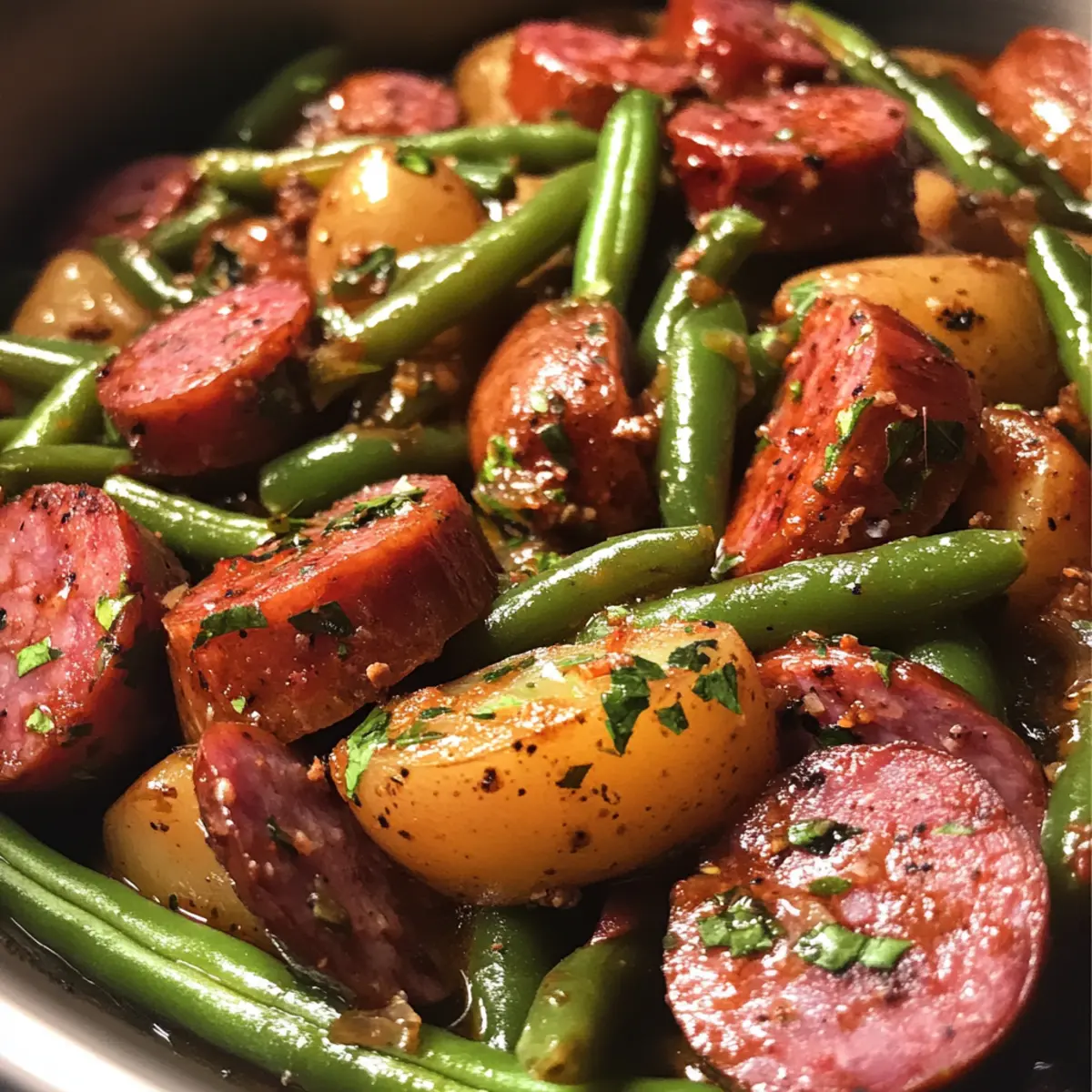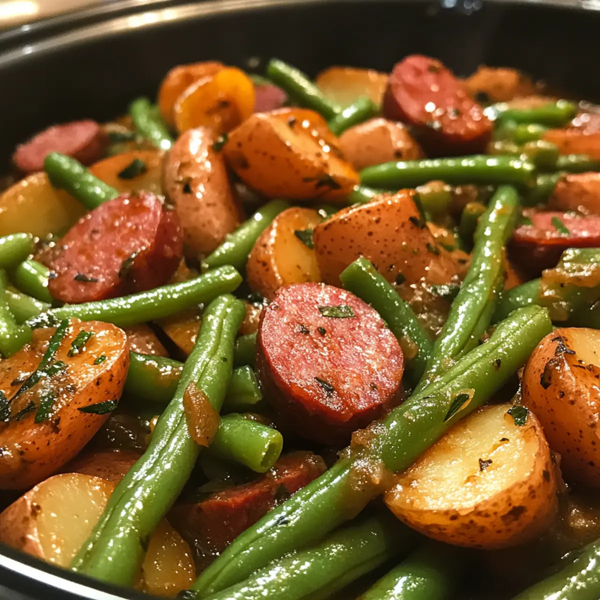 There’s something magical about walking into a home filled with the savory aromas of a meal slowly simmering away in the Crockpot. Today, I’m excited to share my recipe for Crockpot Kielbasa and Green Beans—an easy one-pot meal that’s perfect for busy evenings and family gatherings alike. With its blend of hearty kielbasa, vibrant green beans, and tender baby potatoes, this dish not only serves up comfort but requires minimal prep time, giving you the freedom to unwind. Plus, it’s gluten-free, making it a universally loved option for everyone at your table. Ready to bring a burst of cozy satisfaction to your dining experience? Let’s dive into this delightful recipe! Why Is This Recipe a Must-Try? Hearty Simplicity: This Crockpot Kielbasa and Green Beans recipe combines fresh ingredients, making it a wholesome meal that anyone can whip up effortlessly. Irresistible Aroma: Picture the rich, savory scents enticing your family as they gather around the dinner table. This dish is a feast for the senses! Versatile Enjoyment: Easily customize with your favorite vegetables or even spice it up with red pepper flakes for an exciting twist. Crowd Pleaser: Perfect for family dinners or gatherings, this recipe is sure to impress and satisfies varied tastes. Meal Prep Friendly: Make it ahead and let the flavors meld together—your future self will thank you on busy nights! For other delicious one-pot ideas, check out my Crockpot Chicken Corn or explore the sweet side with Cookies Cream Cupcakes! Crockpot Kielbasa and Green Beans Ingredients • Everything you need for a warm, hearty dish! For the Main Dish Kielbasa – A flavorful protein base; turkey kielbasa is a lighter option if you prefer. Fresh Green Beans – Adds a touch of crunch and freshness; frozen green beans work well for convenience. Baby Potatoes – Provides heartiness; halve them for even cooking. Onion – Introduces sweetness and depth; finely chop for better flavor integration. Minced Garlic – Enhances the overall aroma and taste; fresh garlic is recommended for the best results. For Seasoning Garlic Powder – Adds a boost of garlic flavor; use it for greater depth. Onion Powder – Complements the taste of fresh onions; it’s an easy flavor enhancer. Smoked Paprika – Infuses a subtle smokiness; regular paprika can substitute in a pinch. Salt and Black Pepper – Essential for seasoning; adjust according to your preference. For Cooking Low-Sodium Chicken Broth – Keeps everything moist and flavorful; vegetable broth is a great alternative for a vegetarian twist. Now that you have the ingredients ready, let’s get cooking with this delightful Crockpot Kielbasa and Green Beans recipe! Step‑by‑Step Instructions for Crockpot Kielbasa and Green Beans Step 1: Prep the Ingredients Start by slicing the kielbasa into 1-inch pieces, allowing for even cooking. Next, trim the ends of the fresh green beans, ensuring they are ready to provide a crunch. Finely chop the onion to enhance its sweetness and depth in the dish. This preparation sets the foundation for your flavorful Crockpot Kielbasa and Green Beans! Step 2: Layer in the Crockpot Time to build the layers! Begin by placing the sliced kielbasa at the bottom of your crockpot. Next, add the freshly trimmed green beans followed by the halved baby potatoes, spreading them out evenly. Finish off by piling the chopped onion on top to maximize flavor infusion as everything cooks together slowly. Step 3: Season the Mixture Sprinkle the dish with minced garlic, garlic powder, onion powder, and smoked paprika, ensuring every layer gets its share of seasoning. Add salt and black pepper to taste, balancing the flavors beautifully. This step is crucial for infusing the Crockpot Kielbasa and Green Beans with delightful aromas and robust flavor. Step 4: Add the Liquid Pour low-sodium chicken broth over the layered ingredients, ensuring everything is moistened. The broth will help create a luscious sauce while cooking, enhancing the dish’s overall flavor profile. Make sure to cover the contents so the flavors meld together as the Crockpot does its magic! Step 5: Cook to Perfection Cover the crockpot and cook on low for 6-7 hours or on high for 3-4 hours. If using the high setting, check the tenderness of the potatoes after 3 hours—they should be easily pierced with a fork. The result will be perfectly cooked kielbasa, vibrant green beans, and soft potatoes coming together beautifully. Step 6: Serve and Enjoy Once cooking is complete, gently stir the mixture to combine all the flavors. For an elegant touch, garnish with fresh parsley and grated Parmesan cheese if desired. Serve the warm Crockpot Kielbasa and Green Beans to your family, and watch them relish every comforting bite! Make Ahead Options These Crockpot Kielbasa and Green Beans are perfect for meal prep enthusiasts! You can chop and layer all the ingredients, including the kielbasa, green beans, and potatoes, up to 24 hours in advance. Simply refrigerate the assembled crockpot container overnight to keep everything fresh. When you’re ready to enjoy the dish, just add the broth and seasonings, then set your crockpot to cook on low for 6-7 hours or high for 3-4 hours. This meal prep technique not only saves time but also ensures that the dish retains its comforting flavors and textures, making serving dinner on busy nights a breeze! Crockpot Kielbasa and Green Beans Variations Feel free to sprinkle your creativity into this delightful dish and make it your own! Healthier Option: Substitute turkey kielbasa for a lighter flavor that still packs a punch in each bite. The dish remains hearty without sacrificing satisfaction. Veggie Boost: Add vibrant carrots or zucchini to enhance both color and nutrition, creating an even more wholesome meal. The extra veggies will soak up all those delicious flavors! Spicy Kick: For those who crave heat, introduce red pepper flakes or sliced jalapeños to the mix! The result? A comfo