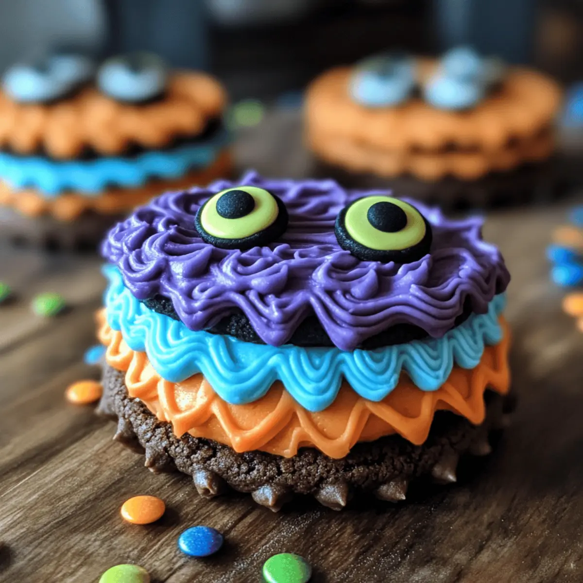 These Cute Monster Sandwich Cookies are perfect for busy home cooks looking for time-saving meal prep solutions! You can prepare the frosting up to 24 hours in advance. Simply follow the frosting instructions, store it in an airtight container in the refrigerator, and when you’re ready to assemble the cookies, just give it a quick stir to restore its creamy texture. The cookies themselves can be assembled and stored in a single layer in an airtight container for up to 3 days; however, it’s best to wait to add the candy eyes until you’re ready to serve to keep them looking fresh and fun. This way, you can enjoy these delightful treats without the last-minute stress!
