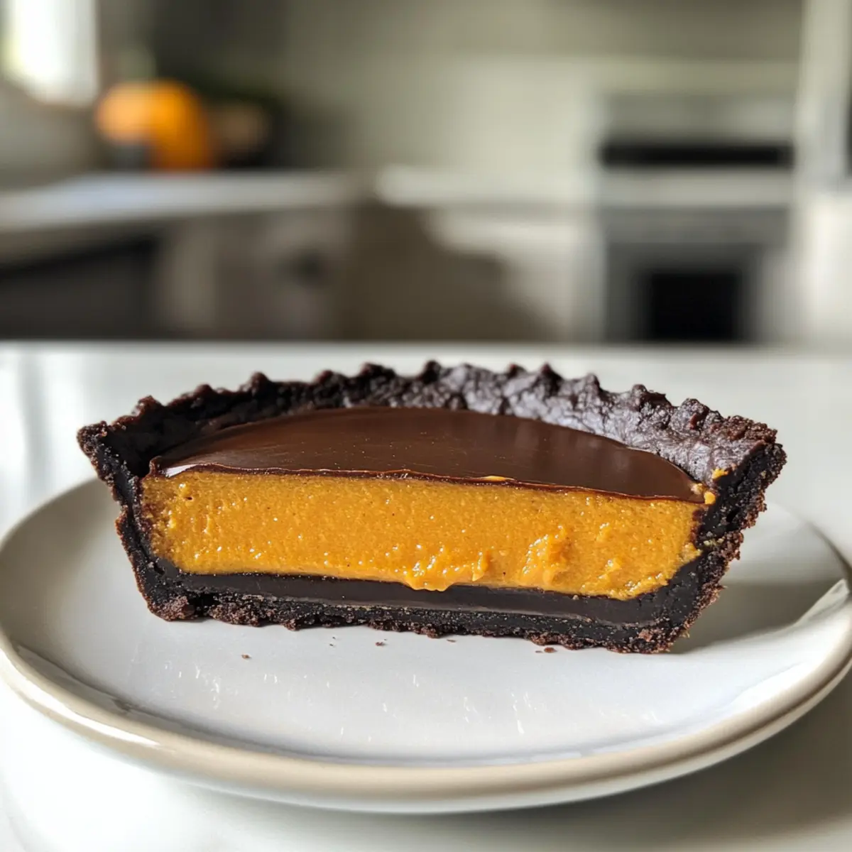 As I watched the leaves turn vibrant hues of orange and gold, I felt an invigorating urge to create something that celebrates the spirit of fall. Enter the Indulgent Dark Chocolate Pumpkin Tart: a delightful fusion that beautifully marries rich dark chocolate with the comforting essence of spiced pumpkin. This Dark Chocolate Pumpkin Tart is not only a stunning centerpiece for any gathering but also a breeze to prepare, making it the perfect solution for those busy weeks when you crave a show-stopping dessert without the stress. It’s a treat that promises to impress your family and friends, and with the option to make it ahead of time, your holiday gatherings just got a whole lot sweeter! Are you ready to dive into this scrumptious journey of flavors? Why is this tart the ultimate dessert? Irresistible Fusion: The combination of rich dark chocolate and spiced pumpkin creates a decadent tart that perfectly captures the essence of fall. Easy to Prepare: With simple steps, you can whip up a stunning dessert that doesn’t require professional skills. Versatile for Any Occasion: Whether it’s a cozy family dinner or a festive gathering, this Dark Chocolate Pumpkin Tart is sure to impress all your guests. Make-Ahead Convenience: Prepare it in advance to save time, allowing you to focus on enjoying your company rather than stressing in the kitchen. Serving Elegance: Pair it with a dollop of whipped cream or a scoop of vanilla ice cream for the ultimate treat, just like with our Bakery Style Chocolate cookies! Dive into the delightful world of cozy flavors with this tart that’s guaranteed to be a hit! Dark Chocolate Pumpkin Tart Ingredients For the Crust • All-purpose flour – Provides structure for the tart crust. Substitution: Can be replaced with a gluten-free flour blend. • Unsweetened dark cocoa powder – Adds rich chocolate flavor to the crust. Note: Use high-quality cocoa for the best results. • White sugar – Sweetens the crust evenly, balancing flavors. Substitution: Granulated sugar can be swapped for coconut sugar for a lower glycemic index. • Kosher salt – Enhances the overall flavor of the crust. • Unsalted butter – Binds the crust ingredients and adds richness. Substitution: Coconut oil can be used for a dairy-free version. For the Filling • Pure pumpkin (canned) – Provides moisture and flavor in the filling. Note: Always use pure pumpkin puree, not pie filling. • Sweetened condensed milk – Adds creaminess and sweetness to the filling. Substitution: For a dairy-free version, use a coconut cream alternative. • Large egg – Acts as a binding agent in the filling. Substitution: Flax egg or chia egg for a vegan option. • Pumpkin pie spice – Infuses the filling with a classic fall flavor profile. • Additional kosher salt – Balances sweetness and enhances flavor in the filling. Embark on a sweet adventure with this Dark Chocolate Pumpkin Tart, destined to be the star of your fall gatherings! Step‑by‑Step Instructions for Dark Chocolate Pumpkin Tart Step 1: Preheat the Oven Begin by preheating your oven to 425°F (218°C). This initial high temperature is key for creating a perfectly baked crust. While the oven warms up, you can prepare your tart pan, ensuring it will be ready to hold all the delicious ingredients once the crust is made. Step 2: Prepare the Tart Pan Spray a 9-inch round tart pan with cooking spray to prevent sticking. Make sure to coat the pan evenly for easy release later. Setting this up now allows you to focus on crafting the indulgent dark chocolate crust without worrying about sticking issues. Step 3: Make the Crust In a spacious bowl, whisk together 1 cup of all-purpose flour, ½ cup of unsweetened dark cocoa powder, ½ cup of white sugar, and a pinch of kosher salt. Pour in ½ cup of melted unsalted butter and mix until crumbly. The mixture should resemble wet sand that holds together when pressed. Next, transfer this chocolate mixture into your prepared tart pan and firmly press it into the bottom and sides for a sturdy crust. Step 4: Bake the Crust Place the tart pan in the preheated oven and bake the crust for 10 minutes. As it bakes, keep an eye out for lightly set edges that firm up nicely. Once done, remove it from the oven and allow it to cool for about 10 minutes, ensuring the crust is ready to hold the creamy pumpkin filling. Step 5: Prepare the Filling In a separate mixing bowl, whisk together one 15-ounce can of pure pumpkin puree, one 14-ounce can of sweetened condensed milk, one large egg, 1 teaspoon of pumpkin pie spice, and a pinch of additional kosher salt. Continue whisking until the mixture is completely smooth and free of lumps. This spiced mixture will be the velvety filling in your Dark Chocolate Pumpkin Tart. Step 6: Combine the Filling and Crust Now that the crust has cooled, carefully pour the pumpkin filling into it, spreading it evenly with a spatula for a beautiful presentation. The rich orange hue of the filling contrasts beautifully with the dark chocolate crust, making it visually appealing. Step 7: Bake the Tart Return the tart to the oven and bake at 425°F for 10 minutes. This initial blast of heat helps set the filling. After 10 minutes, lower the temperature to 350°F (175°C) and continue to bake for an additional 25-30 minutes, or until the filling is just set and slightly puffed. A toothpick inserted should come out clean, signaling that it’s ready. Step 8: Cool the Tart Once baked, remove the tart from the oven and allow it to cool at room temperature for at least one hour. This cooling step is essential for the filling to set properly before serving. The result will be a decadent Dark Chocolate Pumpkin Tart, beautifully poised for slicing. Make Ahead Options Prepare your Indulgent Dark Chocolate Pumpkin Tart ahead of time to streamline your holiday baking! You can make the crust up to 24 hours in advance; simply press it into the tart pan, bake it as usual, and let it cool comple
