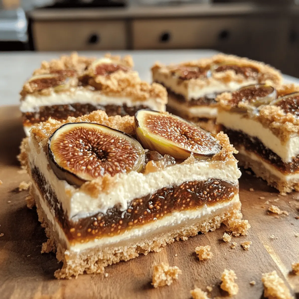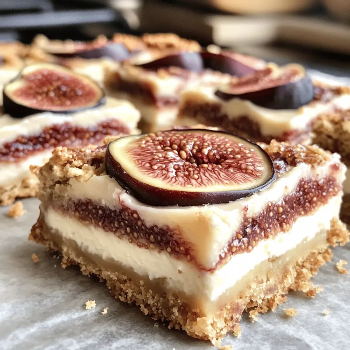 As I was savoring a quiet afternoon with a cup of tea, the thought struck me—why not elevate my sweet cravings with something truly delightful? That’s when I decided to whip up these Easy Creamy Fig and Cream Cheese Bars. They mingle the rich, luscious taste of cream cheese with the natural sweetness of dried figs, creating a dessert that’s not only easy to make but also perfect for sharing with friends and family. What I love most is that they can be prepped ahead, making them an ideal choice for those busy days when you still want to impress. Plus, this recipe lands in the vegetarian category, ensuring everyone can indulge. Are you ready to explore this tasty creation together? Why are these Fig and Cream Cheese Bars irresistible? Decadent, yet Easy: You’ll be surprised at how simple these bars are to prepare, making them the perfect treat for busy days. Sweet and Savory: The combination of figs and cream cheese creates a delightful balance that satisfies both sweet cravings and dessert lovers alike. Make-Ahead Magic: Prep them a day in advance for gatherings; they taste even better after chilling overnight! Versatile Delights: Swap figs for your favorite dried fruits, like dried apricots from my Mini Rolo Cheesecakes or dates for an alternative twist! Crowd-Pleaser: These bars are perfect for sharing—serve them at tea parties, brunches, or as thoughtful gifts that everyone will love. Decadent Fig and Cream Cheese Bars Ingredients For the Crust Dried Figs – Adds natural sweetness and rich flavor; substitute with fresh figs if desired, but adjust moisture levels accordingly. Flour – Forms the base structure of the crust; all-purpose flour is recommended for the best results. Brown Sugar – Contributes sweetness and depth; can be swapped with white sugar for a slightly different flavor. Salt – Enhances overall flavors, balancing the sweetness; use kosher or sea salt for best results. Unsalted Butter – Creates a rich, crumbly texture in the crust; if you’re looking for a dairy-free approach, try margarine or coconut oil. For the Cream Cheese Layer Cream Cheese – Provides a creamy topping that contrasts beautifully with the fig filling; can also be replaced with a dairy-free cream cheese for a vegan option. Egg – Binds the cream cheese layer together; for an egg-free alternative, consider using flaxseed meal mixed with water. Vanilla Extract – Infuses a lovely depth of flavor into the cream cheese; always go for real vanilla for the best taste. Lemon Juice – Brightens the flavor profile of the fig filling, adding a refreshing acidity. These Decadent Fig and Cream Cheese Bars are not just a treat but an experience waiting to happen! Step‑by‑Step Instructions for Decadent Fig and Cream Cheese Bars Step 1: Prepare the Crust In a mixing bowl, thoroughly combine flour, brown sugar, and salt to create a dry mixture. Cut in cold, unsalted butter using a pastry cutter or your fingertips until the mixture resembles coarse crumbs. Then, evenly press the crust mixture into the bottom of a greased 20×30 cm baking pan. Aim for a firm, even layer to form the base of your Decadent Fig and Cream Cheese Bars. Step 2: Cook Figs Remove stems from your dried figs and chop them coarsely. In a saucepan over medium heat, add the chopped figs along with a small amount of water (plus optional sugar for extra sweetness) to taste. Cook for about 5 minutes or until the figs are softened. Once done, blend the figs with the cooking liquid and lemon juice until you achieve a smooth consistency, then spread this luscious fig mixture evenly over the crust. Step 3: Mix Cream Cheese Layer In a separate bowl, beat softened cream cheese until creamy, then gradually add sugar, vanilla extract, and an egg. Continue mixing until the cream cheese layer is smooth and well combined—this should take just a couple of minutes. Carefully spread this thick cream cheese mixture over the fig layer, ensuring even coverage for a balanced slice of your Decadent Fig and Cream Cheese Bars. Step 4: Bake Preheat your oven to 180°C (356°F). Place your prepared baking pan into the oven and bake for approximately 30 minutes, or until the top is lightly golden and the cream cheese layer is set but still has a slight jiggle. Keep an eye on the bars during the last few minutes to avoid overbaking, which can lead to cracks in the surface. Step 5: Cool and Cut Once baked, remove the pan from the oven and allow the bars to cool completely on a wire rack. For the best texture and flavor, transfer the baking pan to the refrigerator and chill the bars for at least 4 hours or overnight. When ready to serve, slice into neat squares with a sharp knife for beautiful presentation, enhancing the experience of your Decadent Fig and Cream Cheese Bars. Expert Tips for Decadent Fig and Cream Cheese Bars Fig Quality: Choose softer dried figs for the best texture. Soak hard ones in warm water for 10 minutes to rehydrate before using. Crust Texture: Avoid overworking the dough to prevent a tough crust. Mix just until the ingredients are combined for the best results. Baking Time: Keep a close eye on the cream cheese layer near the end of baking to prevent it from overbaking, which can cause cracks. Cutting Neatly: For clean slices, use a sharp knife dipped in hot water. This method helps create beautiful pieces of your Decadent Fig and Cream Cheese Bars. Chilling Time: Allowing the bars to chill overnight enhances flavors and improves the texture. Don’t rush this step for the best results! Decadent Fig and Cream Cheese Bars Variations Feel free to get creative and make these bars your own—your culinary imagination is the limit! Fruity Twist: Swap dried figs with apricots, dates, or even cranberries for a playful mix of flavors. Nuts for Crunch: Add chopped nuts like walnuts or pecans in the cream cheese layer for added texture and richness. Spiced Delight: Incorporate warm spices like cinnamon or nutmeg to the cream cheese mixtu