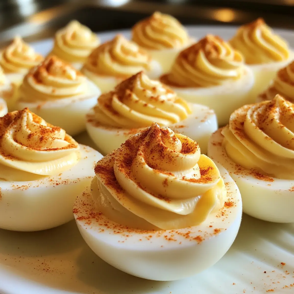 The aroma of fresh herbs and spices wafts through my kitchen as I prepare for the holidays, and nothing brings that festive spirit quite like deviled eggs. These Creamy Christmas Deviled Eggs are not just another appetizer; they offer a delightful harmony of flavors that are both creamy and tangy, topped with festive paprika for that burst of color. With a prep time so quick, you’ll have more time to sip on eggnog or chat with friends, making them a perfect make-ahead dish for any gathering. Plus, they cater to various dietary preferences with simple substitutions, ensuring everyone can indulge. Are you ready to have your guests raving about your holiday spread? Let’s dive in! Why are Deviled Eggs a Holiday Favorite? Timeless Tradition: Deviled eggs have been a staple at holiday gatherings for generations, bringing warmth and nostalgia to any table. Versatile Flavoring: You can customize the filling to suit your palate, whether adding a spicy kick with horseradish or keeping it classic with smooth mayo. Make-Ahead Magic: These creamy delights can be prepared up to three days in advance, freeing you to focus on other festive preparations. Crowd-Pleasing Appeal: Always a hit with guests, they’re a perfect finger food that pairs beautifully with bubbly or a festive cocktail. Check out my Chili Garlic Deviled eggs for a spicy twist! Health-Conscious Options: With easy swaps, you can keep everyone happy, from vegans with mashed avocado to gluten-free friends diving into this delightful classic. Deviled Eggs Ingredients For the Filling Eggs – Fresh, large eggs are essential for the base; using eggs at room temperature helps with easier peeling. Mayonnaise – This adds the creaminess to your filling; feel free to swap with vegan mayonnaise for a plant-based alternative. Dijon Mustard – Provides delightful tanginess; if you prefer milder flavors, yellow mustard can be a good substitute. Vinegar – Apple cider or white wine vinegar brightens the filling beautifully; skip it for a milder taste but expect a flavor change. For the Topping Paprika – A sprinkle of this spices up the dish and adds vibrant color; consider using smoked paprika for a unique twist. Salt and Pepper – Essential for enhancing overall taste; adjust according to your personal preference. Step‑by‑Step Instructions for Creamy Christmas Deviled Eggs Step 1: Steam the Eggs Begin by gently steaming fresh, large eggs in a steamer basket over boiling water for about 12 minutes. You’ll know they’re done when they are firm to the touch but still tender. Immediately transfer the eggs to an ice bath to cool for 10 minutes, which will make peeling easier and prevent overcooking. Step 2: Prepare the Egg Yolks Once the eggs are cool, carefully peel them and slice each egg in half lengthwise. Gently scoop out the yolks into a mixing bowl, taking care not to break the whites. The egg whites should be smooth and intact, serving as a perfect holder for the creamy filling of your Christmas Deviled Eggs. Step 3: Mix the Filling In the bowl with the yolks, add mayonnaise, Dijon mustard, apple cider vinegar, salt, and pepper. Using a fork or a hand mixer, blend these ingredients until the mixture is silky smooth and well combined. This creamy filling will create the perfect savory contrast to the tender egg whites. Step 4: Fill the Egg Whites Once your filling is mixed, use a spoon or a piping bag to evenly distribute the creamy mixture back into the hollowed egg whites. Aim for a generous but tidy dollop in each half, ensuring a delightful bite with each serving of these Christmas Deviled Eggs. Step 5: Garnish the Eggs To finish your beautifully filled deviled eggs, dust each one with a pinch of paprika for a pop of color and flavor. For an extra touch, you can top them with chopped chives or your favorite herb, adding both freshness and a festive look to your appetizer. Step 6: Chill for Flavor Finally, let your Christmas Deviled Eggs chill in the refrigerator for at least 30 minutes before serving. This step allows the flavors to meld together beautifully, resulting in a richer taste and a more enjoyable experience for your guests. Expert Tips for Perfect Deviled Eggs Fresh Eggs: Ensure your eggs are at least a week old for easier peeling. Fresh eggs can be stubborn and may tear when you try to peel them. Steaming Technique: Steaming the eggs instead of boiling prevents cracking and yields tender whites. Boiling can sometimes lead to rubbery egg whites. Silky Smooth Filling: Blend the yolk mixture until silky smooth to enhance texture. Lumpy filling can detract from the overall experience of deviled eggs. Chill Time: Allow the filled eggs to chill in the refrigerator for at least 30 minutes before serving. This not only enhances flavor but also helps the filling set and look neat. Garnish Wisely: A light dusting of paprika is traditional, but feel free to get creative! Fresh herbs or crumbled bacon can elevate your Christmas Deviled Eggs even more. How to Store and Freeze Deviled Eggs Fridge: Store leftover deviled eggs in an airtight container in the refrigerator for up to 3 days. This keeps them fresh and ready to enjoy! Make-Ahead: You can prepare the egg filling a day ahead and store it separately in the fridge, keeping the egg whites intact until you’re ready to serve. Freezer: It’s not recommended to freeze deviled eggs, as the texture of the egg whites can change, making them less enjoyable upon thawing. Reheating: If you’ve assembled deviled eggs and want to serve them later, simply chill them and serve cold. The flavors improve after chilling, making them a perfect appetizer! What to Serve with Christmas Deviled Eggs Indulge in the festive spirit of your gathering with delectable pairings that enhance your creamy deviled eggs and delight every guest. Crispy Bacon-Wrapped Asparagus: Offers a savory crunch that contrasts beautifully with the creamy texture of deviled eggs. This delightful finger food adds a de