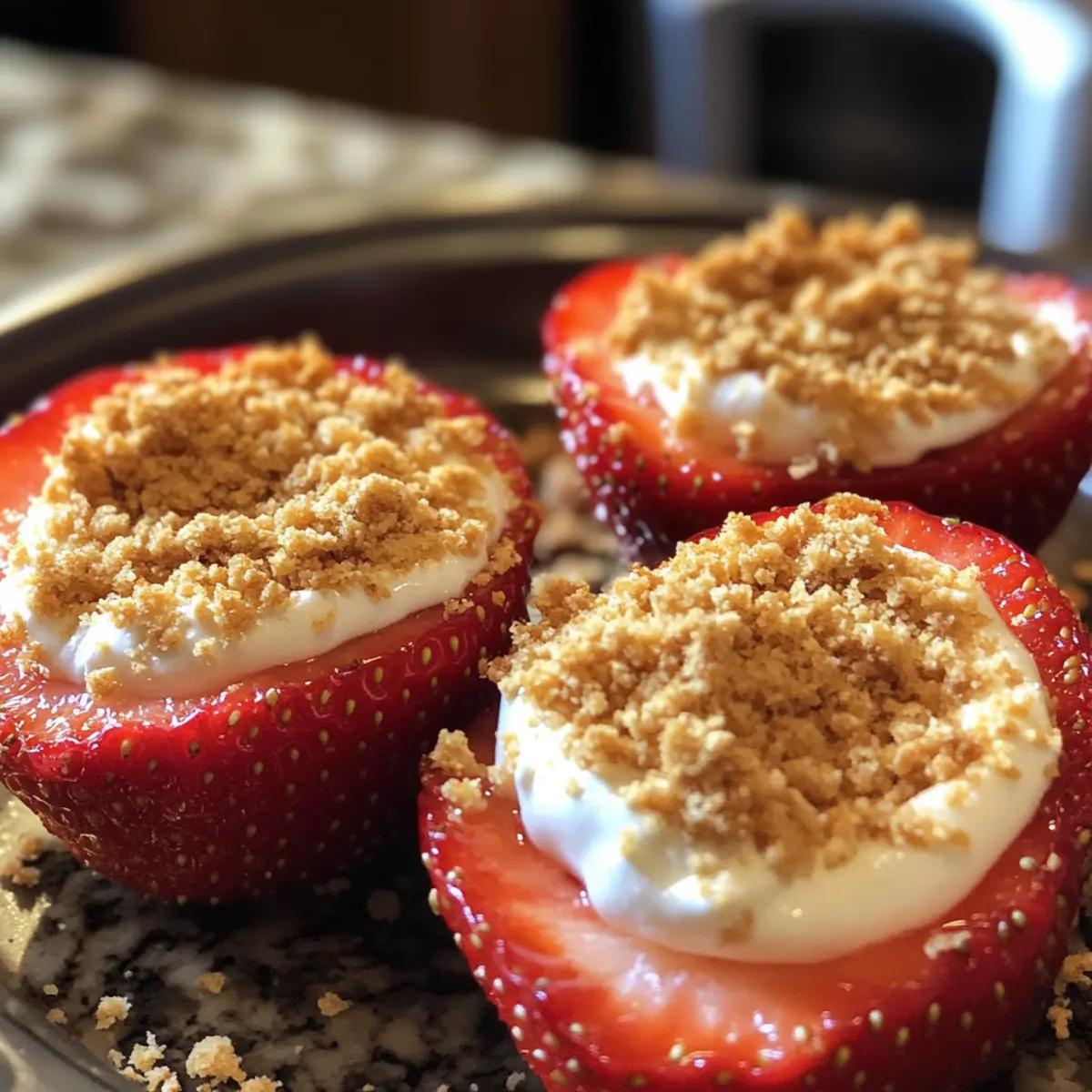 6. Sprinkle graham cracker crumbs over the tops of each filled strawberry.