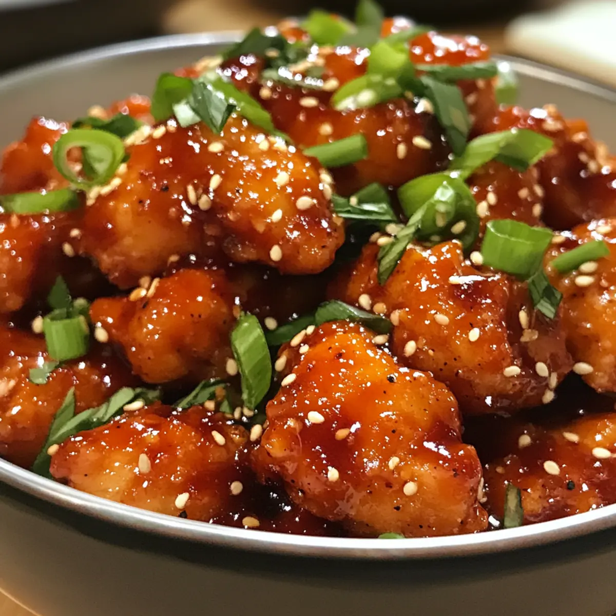 Irresistible Crunch: The crispy chicken pieces coated in a glossy, spicy sauce deliver an addictively satisfying texture that will impress everyone at your dinner table.