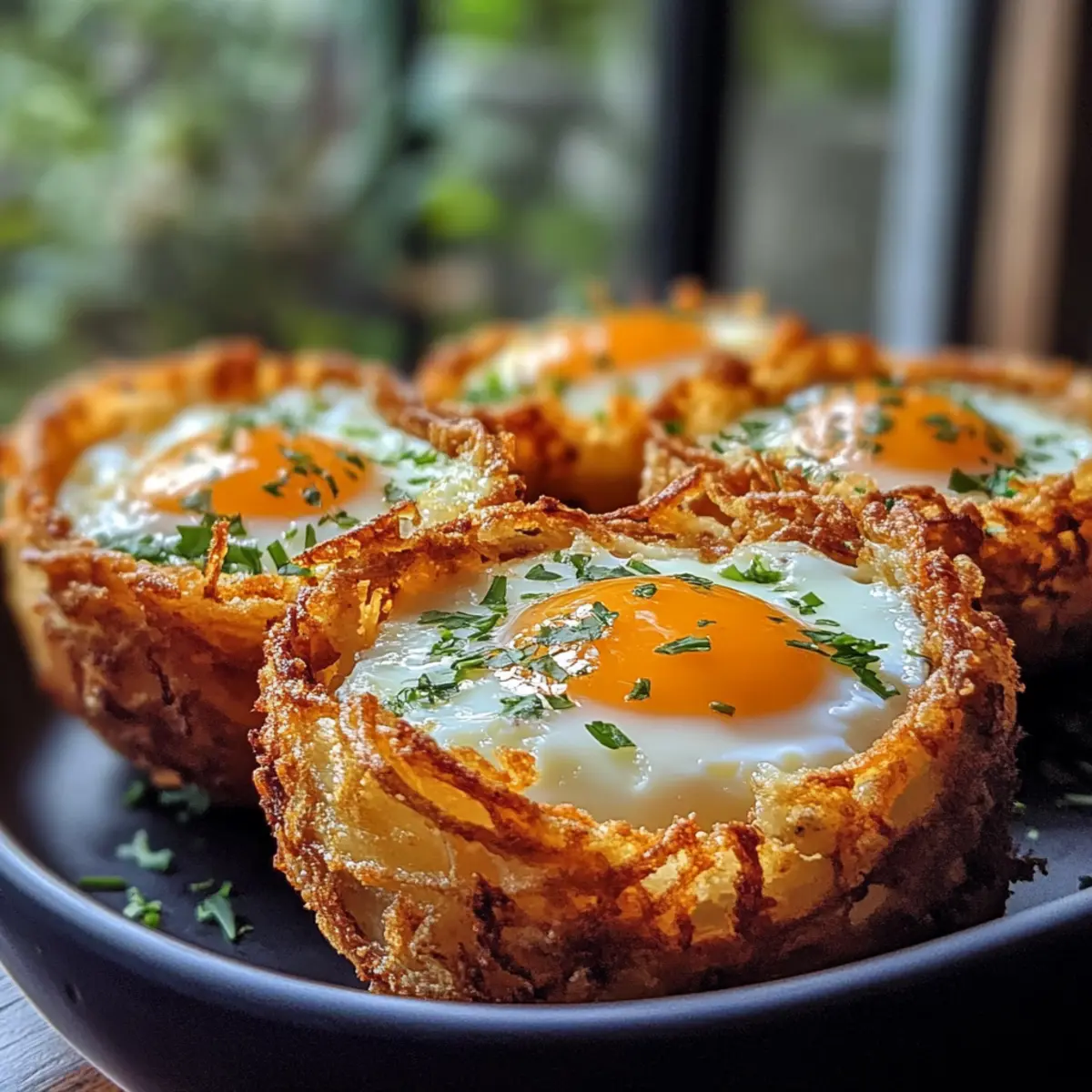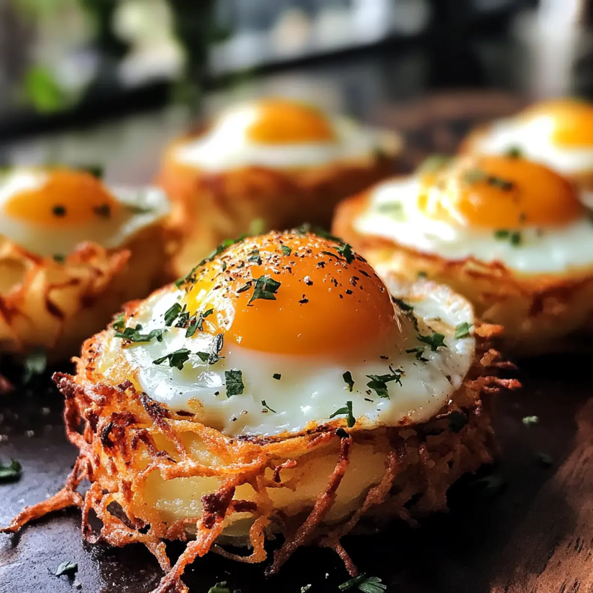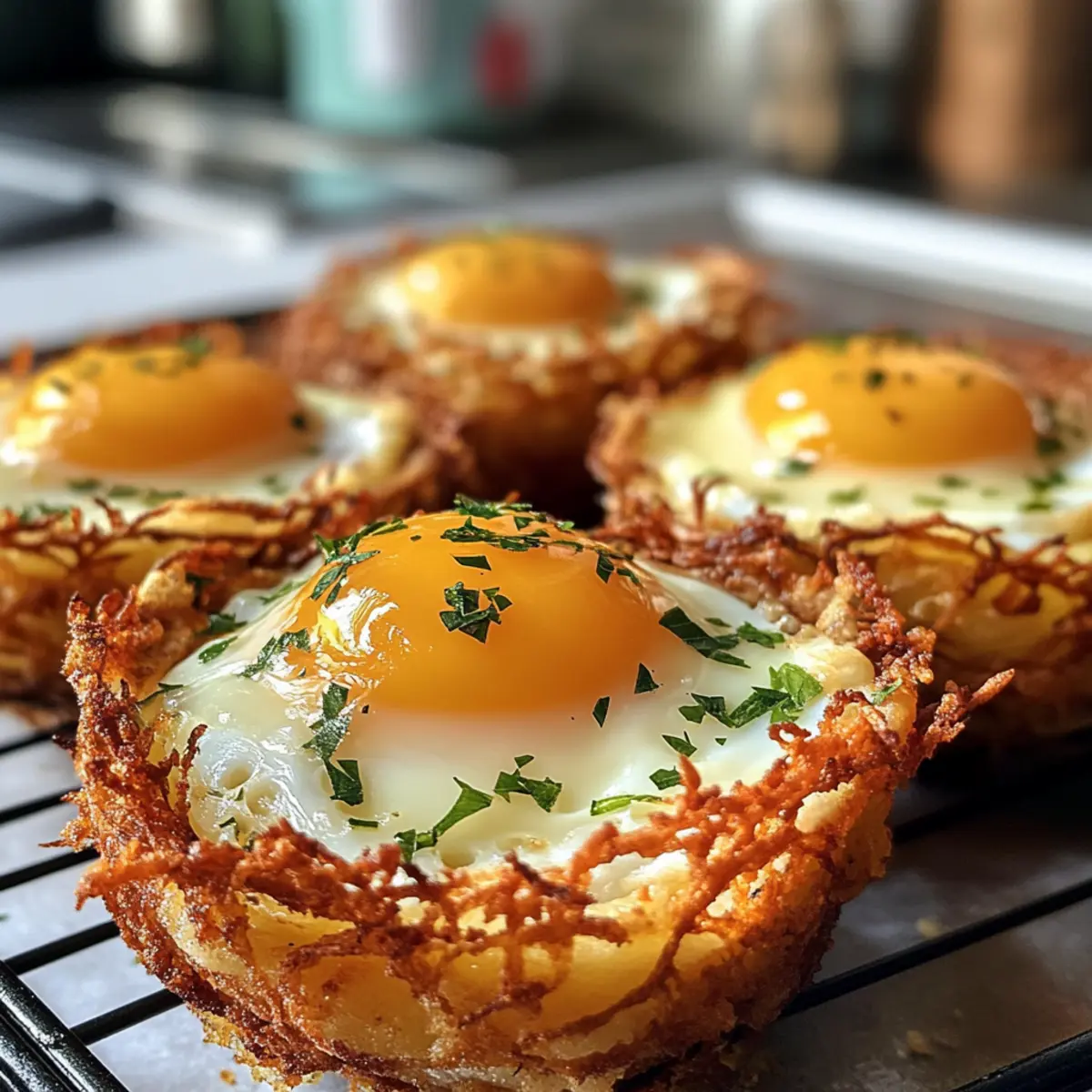 Enjoy Eggs in Crispy Hash Brown Baskets, a delightful breakfast that balances texture and flavor, perfect for any morning routine.