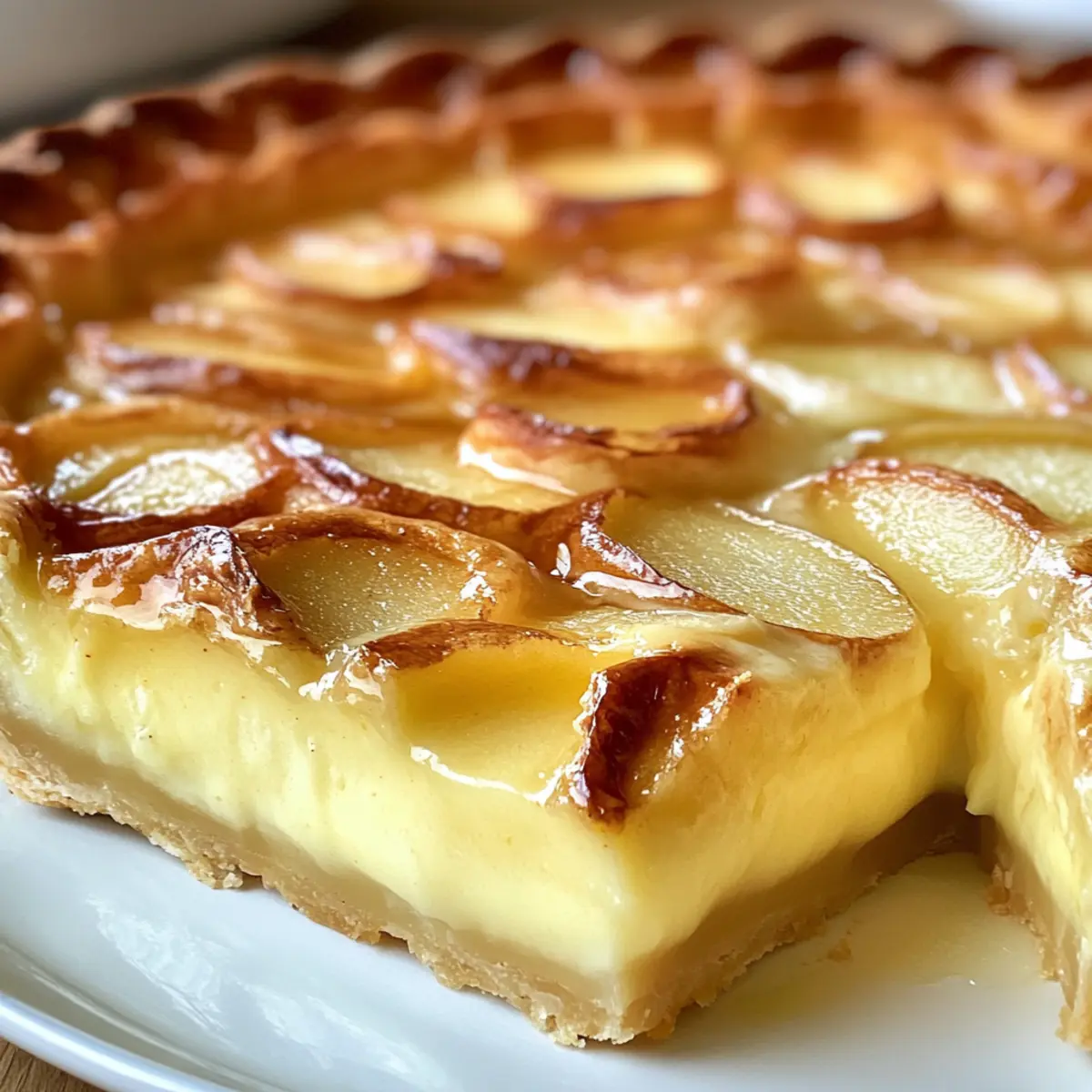 As I pulled the warm French Custard Pie with Apples from the oven, the sweet aroma of baked apples mingled with hints of vanilla and cream flooded my kitchen, instantly transporting me to a charming Parisian café. This Flan Parisien isn’t just any dessert; it’s a silken masterpiece tucked inside a flaky puff pastry, making it perfect for both special occasions and cozy evenings at home. The best part? It’s super easy to whip up, using simple ingredients you likely already have on hand. Plus, this elegant dish is a delightful crowd-pleaser that’s bound to impress family and friends alike. Ever wondered how a French dessert could bring a touch of sophistication to your dinner table? Let’s dive into the recipe to find out! Why is this French Custard Pie special? Elegance, this French Custard Pie brings a touch of sophistication to any gathering, transforming an ordinary dinner into a special occasion. Silky texture and flaky crust create a harmonious balance that melts in your mouth. Humble ingredients make it approachable; you’ll likely have everything needed in your pantry. Versatile options allow you to switch out apples with peaches or add a sprinkle of cinnamon for flair. This dessert is perfect for impressing guests yet simple enough for a cozy night in. If you’re looking to pair this exquisite treat, consider serving it with a side of whipped cream or a scoop of vanilla bean ice cream for the ultimate experience! French Custard Pie with Apples Ingredients • Get ready to create a delightfully silky dessert! For the Crust Puff Pastry – Use a store-bought puff pastry for convenience or make your own for a gourmet touch. For the Custard Whole Milk – Adds creaminess; substitute with any full-fat milk alternative for a lighter version. Heavy Cream – Ensures a rich texture; can swap with half-and-half if desired. Eggs – Bind ingredients and help set the custard; no substitutes recommended for best results. Granulated Sugar – Provides sweetness; feel free to substitute with organic sugar or honey. Cornstarch – Thickens the custard; replace with arrowroot starch for a gluten-free option. Vanilla Extract – Enhances the custard’s flavor; using pure vanilla will yield the best results. For the Apples Apples (Honeycrisp or Golden Delicious) – Adds sweetness and texture; choose firm, crisp varieties for the best result. For Dusting & Garnish Powdered Sugar – For a lovely dusting before serving; can be omitted or swapped with coconut sugar. Apricot Jam or Lemon Zest (optional) – Adds finishing flavor and a touch of visual appeal; can replace with berry preserves for a fresh twist. This French Custard Pie with Apples is sure to be a hit, combining comforting flavors with a sophisticated flair! Enjoy your baking adventure! Step‑by‑Step Instructions for French Custard Pie with Apples Step 1: Preheat and Prepare the Pan Begin by preheating your oven to 375°F (190°C). While the oven warms, grab a 9-inch tart or pie pan and generously butter the bottom and sides. The butter will help the pastry release easily after baking, ensuring a beautiful presentation of your French Custard Pie with Apples. Step 2: Roll Out the Puff Pastry Next, take your puff pastry out of the fridge and roll it out on a lightly floured surface until it’s about 12 inches in diameter. Carefully fit the rolled pastry into the prepared pan, pressing it into the corners and trimming any excess that hangs over the edges. Prick the base with a fork to prevent bubbling, then place it in the fridge to chill while you prepare the custard. Step 3: Heat the Milk and Cream In a medium saucepan, combine whole milk and heavy cream. Heat them over medium heat, stirring occasionally until the mixture is steaming but not boiling—this should take about 5-7 minutes. Keep an eye on it; as soon as you see steam rising, remove it from the heat to avoid curdling. Step 4: Mix the Eggs and Sugar In a large mixing bowl, whisk together eggs, granulated sugar, cornstarch, and vanilla extract until smooth and well combined. This mixture serves as the base for your custard. The goal is to achieve a creamy texture, so take your time ensuring there are no lumps in the egg mixture. Step 5: Combine Milk and Egg Mixture Slowly pour the warm milk and cream mixture into the egg and sugar blend while continuously whisking. This gradual process prevents the eggs from scrambling. Once fully incorporated, return the combined mixture to the saucepan over low heat and stir constantly until it thickens, which should take about 5-8 minutes. You’ll know it’s ready when it coats the back of a spoon. Step 6: Prepare the Apples While the custard thickens, slice your chosen apples into thin wedges. Choose firm varieties like Honeycrisp or Golden Delicious to add a sweet yet crisp bite to your French Custard Pie. Once sliced, set them aside to await their delicious warm custard blanket. Step 7: Assemble the Pie Take the chilled puff pastry shell from the fridge and layer the apple slices evenly over the bottom. Pour the silky custard mixture gently over the apples, ensuring they are fully submerged. It’s essential to distribute the custard evenly for balanced baking and flavor in your French Custard Pie with Apples. Step 8: Bake to Perfection Place the assembled pie in the preheated oven and bake for 40-45 minutes. You’re looking for a golden-brown top with a slightly jiggly center when you gently shake the pan. The edges should be set and firm, offering a beautiful contrast to the creamy, smooth custard. Step 9: Cool and Chill Once baked, remove the pie from the oven and let it cool at room temperature for about 30 minutes. After cooling, transfer it to the refrigerator and chill for at least 2 hours or overnight. This step allows the custard to set perfectly, enhancing the flavors and making it easier to slice. Step 10: Serve and Garnish Before serving, dust the top of your chilled French Custard Pie with Apples with powder