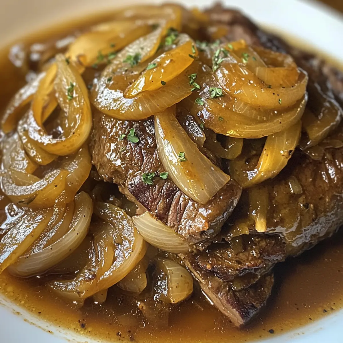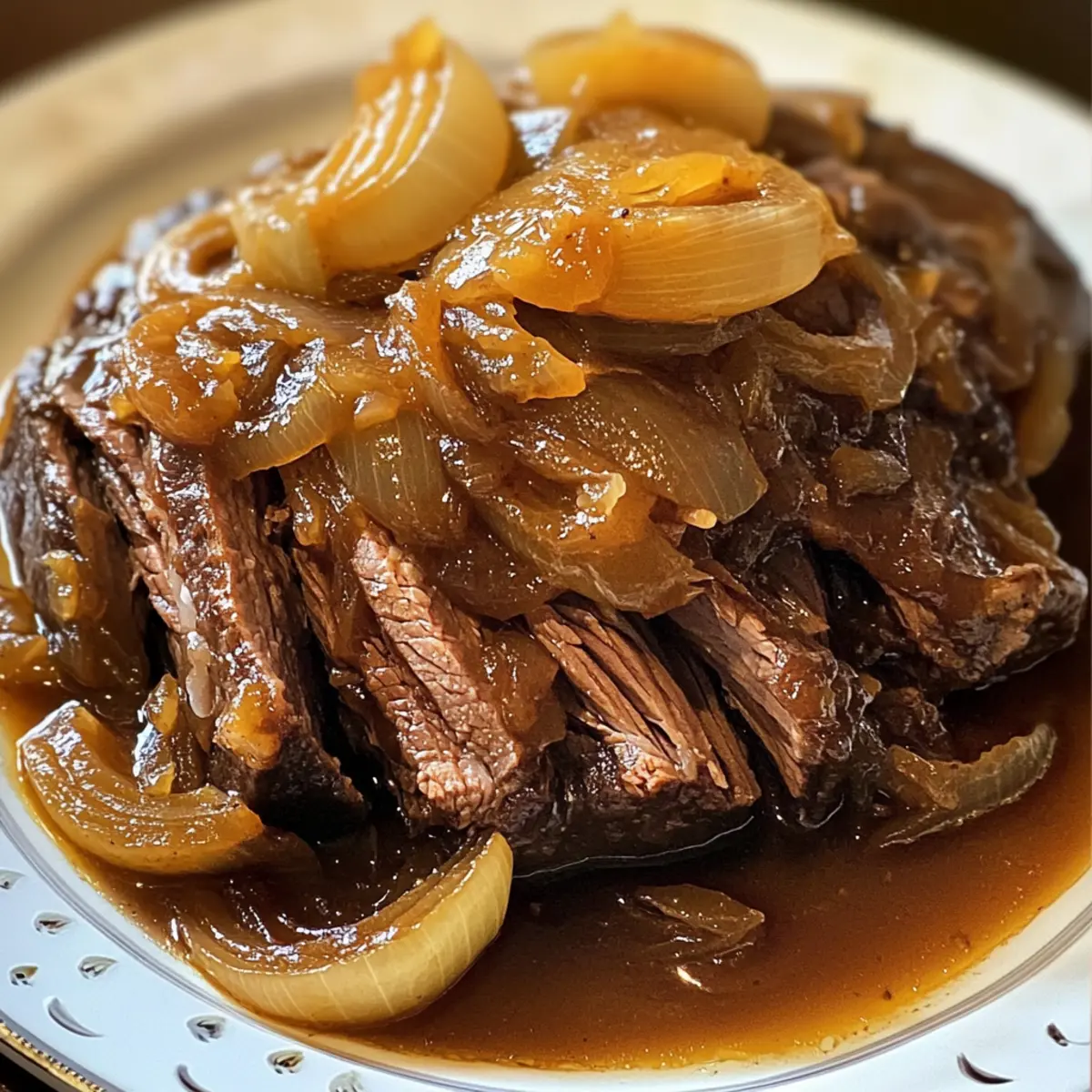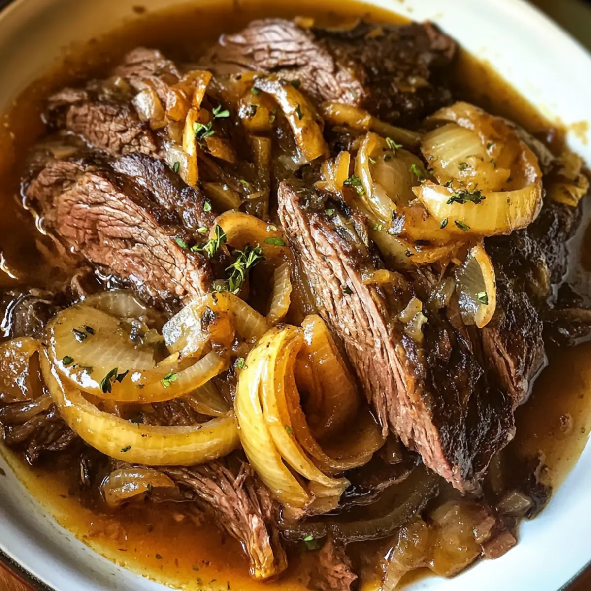 The rich aroma of caramelized onions fills the kitchen, coaxing me closer to the stove. That’s when I realize it’s the perfect evening for a Savory French Onion Pot Roast. This hearty comfort food is not just a meal; it’s a warm embrace for both family dinners and cozy gatherings with friends. Infused with the sweet, savory notes of slow-cooked onions and tender beef, it brings a delightful twist to the classic pot roast we all know and love. Plus, it’s a make-ahead wonder! You can prepare it earlier in the day and let the slow cooker do the work while you unwind. Isn’t that the dream? I can’t wait for you to experience the magic of this dish—what are your favorite sides to pair with this delicious creation? Why is this pot roast irresistible? Hearty Comfort: This Savory French Onion Pot Roast redefines comfort food with its cozy flavors, making it perfect for family gatherings or a quiet evening in. Make-Ahead Magic: Prepare it in advance! Just let the slow cooker work its magic while you focus on unwinding after a busy day. Flavor Explosion: The caramelized onions and tender beef meld together for an unforgettable taste sensation, sure to impress your dinner guests. Versatile Serving Options: Serve it with creamy mashed potatoes or crusty bread for a complete experience that keeps everyone coming back for seconds. Crowd-Pleasing Delight: Loved by both kids and adults alike, it’s a surefire hit at your next gathering—just wait for the compliments to roll in! Enhance your meal with some creative sides by checking out my recipes for Lemon Herb Roasted chicken or Shrimp Mashed Potatoes. French Onion Pot Roast Ingredients For the Pot Roast • Beef Chuck Roast – A 3 to 4-pound cut is perfect for juicy and tender results in your French Onion Pot Roast. • Yellow Onions – Use about 4 large onions, thinly sliced; they caramelize beautifully for that classic flavor. • Garlic – Four cloves, minced or finely sliced, will elevate the aroma and depth of the roast. • Beef Broth – About 2 cups needed for moisture and richness; low-sodium options keep it balanced. • Olive Oil – Three tablespoons are essential for searing the roast and caramelizing the onions. • Thyme & Bay Leaves – Fresh thyme (2 teaspoons) and 2 bay leaves enhance the savory notes beautifully. • Red Wine – About 1 cup, optional but recommended for added flavor complexity, can replace part of the broth. • Maple Syrup or Brown Sugar – One tablespoon helps caramelize the onions, adding a hint of sweetness. • All-Purpose Flour – Use about 1 tablespoon to thicken the sauce and enhance the texture. Feel free to get creative! This French Onion Pot Roast is a canvas for your culinary ingenuity. Step‑by‑Step Instructions for Savory French Onion Pot Roast Step 1: Preheat and Sear the Roast Begin by preheating a large Dutch oven over medium-high heat. Add 1 tablespoon of olive oil, letting it heat until shimmering. Season the 3 to 4-pound beef chuck roast generously with salt and pepper. Sear the roast on all sides until a rich brown crust forms, about 12 minutes in total. Once browned, remove the roast and set it aside to rest. Step 2: Caramelize the Onions In the same Dutch oven, add another tablespoon of olive oil and the sliced 4 large yellow onions. Cook them over medium heat, stirring occasionally until they become translucent, which should take about 5 minutes. Then, reduce the heat to low and allow the onions to caramelize slowly for 20 minutes, stirring every few minutes until they are a deep golden color. Step 3: Add Garlic and Sweetness Once the onions are caramelized, stir in the minced garlic and 1 tablespoon of maple syrup or brown sugar. Increase the heat slightly and cook for an additional 7-8 minutes, allowing the garlic to soften and become fragrant. This step enhances the sweetness of the onions, making them perfect for your French Onion Pot Roast. Step 4: Create the Flavorful Base Sprinkle 1 tablespoon of all-purpose flour over the onion mixture, stirring to combine and cook for 1 minute. Then, pour in about 1 cup of red wine, scraping up any browned bits from the bottom of the pot. Follow this by adding approximately 2 cups of low-sodium beef broth, stirring well until the mixture is smooth and has thickened slightly. Step 5: Combine Ingredients and Simmer Return the seared beef roast to the pot, ensuring it is partially submerged in the savory liquid. Add 2 teaspoons of fresh thyme and 2 bay leaves for depth of flavor. Bring the mixture to a gentle simmer, cover the pot with a lid, and then transfer it to an oven preheated to 300°F. Step 6: Slow Cook to Tender Perfection Allow the French Onion Pot Roast to cook in the oven for 3 to 4 hours. Check for tenderness halfway through the cooking time, turning the roast for even flavor and moisture. When done, the beef should be fork-tender and succulent, surrounded by the beautifully caramelized onions. Step 7: Rest and Serve After removing the pot roast from the oven, let it rest for about 15 minutes. Before serving, shred the beef gently with two forks and plate it with generous spoonfuls of the caramelized onion mixture over the top. This final touch enhances the rich flavors of your Savory French Onion Pot Roast, making it irresistible. What to Serve with Savory French Onion Pot Roast Enhance your family dinner with delightful side dishes that complement the rich flavors of your pot roast beautifully. Creamy Mashed Potatoes: Their buttery texture absorbs the savory juices, creating a comforting bite that pairs perfectly with the pot roast. Crusty Bread: A slice of warm, crusty bread is perfect for sopping up the mouthwatering gravy, adding a satisfying crunch to each meal. Roasted Vegetables: Colorful roasted carrots, Brussels sprouts, or seasonal veggies add depth and freshness, balancing the richness of the pot roast. Buttered Egg Noodles: These tender noodles provide a lovely base for the pot roast, soaking up all the