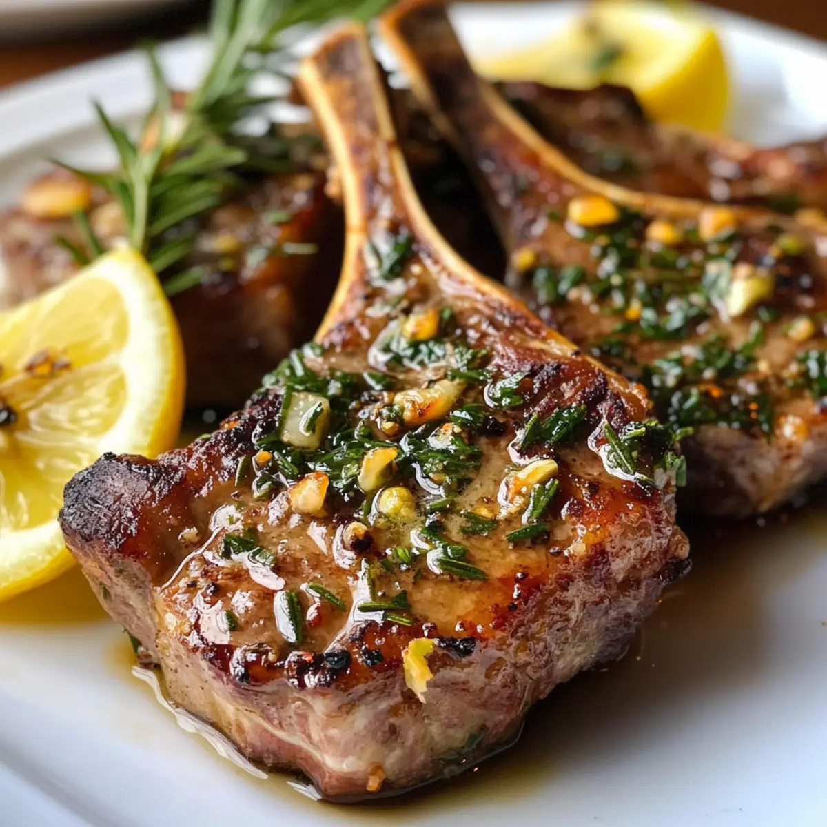 Impressive Presentation: The beautifully seared crust and glossy garlic butter glaze make these chops a feast for the eyes as well as the palate.