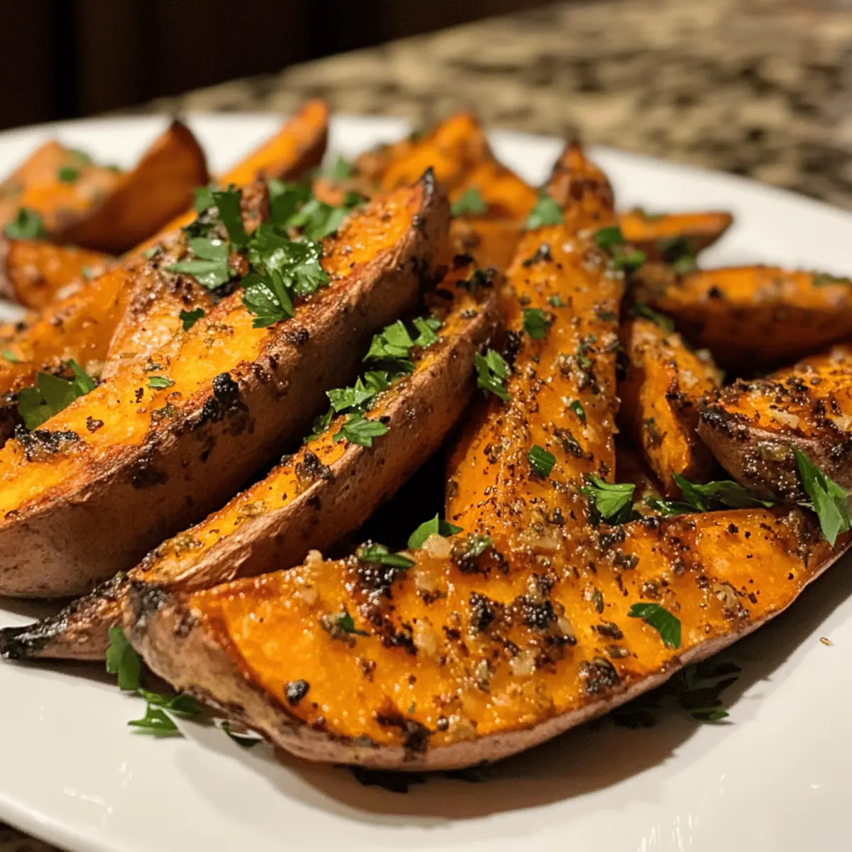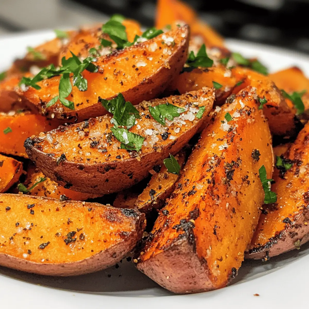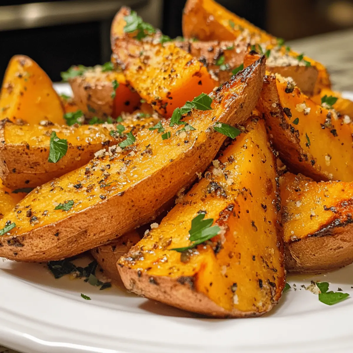 As I slid the pan into the oven, the warm, comforting aroma of garlic began to fill my kitchen, promising a delicious transformation. These Garlic Parmesan Sweet Potato Wedges are my go-to solution when I crave something crispy yet wholesome. Not only are they an excellent healthier alternative to traditional fries, but they also come together in a flash, making them the perfect snack or side dish for any meal. Plus, with the versatility of the ingredients, you can easily swap in your favorites for a personalized touch. Have you ever ventured outside the world of ordinary fries? Let’s dive into this scrumptious recipe that will elevate your snacking game! Why are These Wedges a Must-Try? Crispy Texture: These Garlic Parmesan Sweet Potato Wedges are perfectly crisp on the outside while remaining tender inside, offering that ideal fry experience without the guilt. Healthier Twist: With sweet potatoes as the star, you’re indulging in a nutritious snack that’s rich in vitamins and antioxidants, making it a smart choice for health-conscious eaters. Quick & Easy: This recipe comes together in just 30 minutes, making it an effortless addition to any weeknight dinner or spontaneous gathering. Versatile Options: Feel free to swap ingredients to suit your taste! Check out ideas for alternatives like using Cheesy Garlic Chicken or Spicy Chili Garlic for unique flavor profiles. Delicious Dip Pairing: These wedges pair beautifully with your favorite dipping sauces, turning your snack time into a delightful experience that will impress everyone at your table. Garlic Parmesan Sweet Potato Wedge Ingredients • Get ready to create a mouthwatering treat with these Garlic Parmesan Sweet Potato Wedges! For the Wedges Sweet Potatoes – Choose firm, smooth-skinned potatoes for the best flavor and texture. Olive Oil – This adds healthy fats and ensures a crispy finish; substitute with avocado oil if desired. Garlic – Freshly minced is key for maximizing aroma and flavor depth, a secret weapon in this recipe! Smoked Paprika – Adds a subtle smokiness; regular paprika can be used if you prefer a milder taste. Onion Powder – Perfect for enhancing flavor complexity without overpowering. Salt – Essential for bringing all the flavors together; adjust to your liking. Black Pepper – Adds mild heat; feel free to increase for more kick. Parmesan Cheese – Offers a rich, savory flavor; nutritional yeast serves as a great vegan alternative. For Garnish Fresh Parsley – Adds a pop of color and freshness to your dish, elevating the presentation. Optional Red Pepper Flakes – Use for an extra touch of heat if you like a spicy kick! Step‑by‑Step Instructions for Garlic Parmesan Sweet Potato Wedges Step 1: Preheat the Oven Begin by preheating your oven to 425°F (220°C). This temperature ensures that your Garlic Parmesan Sweet Potato Wedges will achieve that perfect crispy exterior. While the oven is heating, you can prepare your sweet potatoes, maximizing efficiency in your cooking process. Step 2: Prepare the Sweet Potatoes Wash the sweet potatoes thoroughly under running water to remove any dirt. Then, using a sharp knife, cut them into uniform wedges about 1 inch thick, ensuring even cooking. A consistent size will help the wedges bake evenly, resulting in irresistibly crispy edges and tender interiors. Step 3: Make the Seasoning Mixture In a medium-sized bowl, combine the olive oil, minced garlic, smoked paprika, onion powder, salt, black pepper, and optional red pepper flakes if you prefer some heat. Stir well to create a fragrant seasoning mixture. This blend will coat your wedges and elevate the flavors of your Garlic Parmesan Sweet Potato Wedges. Step 4: Toss the Wedges Transfer the sweet potato wedges to a large mixing bowl and drizzle the prepared seasoning mixture over them. Using your hands or a spatula, toss the wedges until they are evenly coated with the spices. This step ensures that every bite is bursting with flavor and that the sweet potatoes will roast beautifully. Step 5: Add the Cheese Gently fold in half of the grated Parmesan cheese with the seasoned wedges, ensuring it disperses throughout the mixture. This addition enhances the savory profile of the Garlic Parmesan Sweet Potato Wedges and contributes to their delightful crust when baked. Step 6: Arrange on Baking Sheet Line a large baking sheet with parchment paper for easy cleanup and to prevent sticking. Spread the seasoned sweet potato wedges in a single layer on the baking sheet, leaving some space between each wedge. Proper spacing is crucial to achieve that crispiness by allowing air circulation during baking. Step 7: Bake Place the baking sheet in the preheated oven and bake the wedges for 25-30 minutes. Be sure to flip them halfway through cooking for a uniform golden-brown color. The wedges are ready when they turn crispy on the outside and tender on the inside, with a beautiful, appetizing hue. Step 8: Finish with Cheese and Serve Once the wedges are done baking, take them out of the oven and immediately sprinkle the remaining Parmesan cheese over the hot wedges, allowing it to melt slightly. Garnish your Garlic Parmesan Sweet Potato Wedges with chopped fresh parsley for a burst of color and extra freshness before serving them up. Garlic Parmesan Sweet Potato Wedges Variations Looking to make these Garlic Parmesan Sweet Potato Wedges even more exciting? You can easily customize this recipe to fit your cravings! Regular Potatoes: Swap sweet potatoes for standard potatoes for a classic fry feel, while retaining a delicious taste. You’ll still enjoy that satisfyingly crispy texture with a familiar flavor. Vegan Option: Use nutritional yeast instead of Parmesan cheese to make a vegan-friendly version without losing any savory goodness. This swap keeps the umami flavor while keeping it plant-based. Herbed Oil: Try infusing your olive oil with rosemary or thyme to enhance the aroma and flavor of the wedges. Just heat 