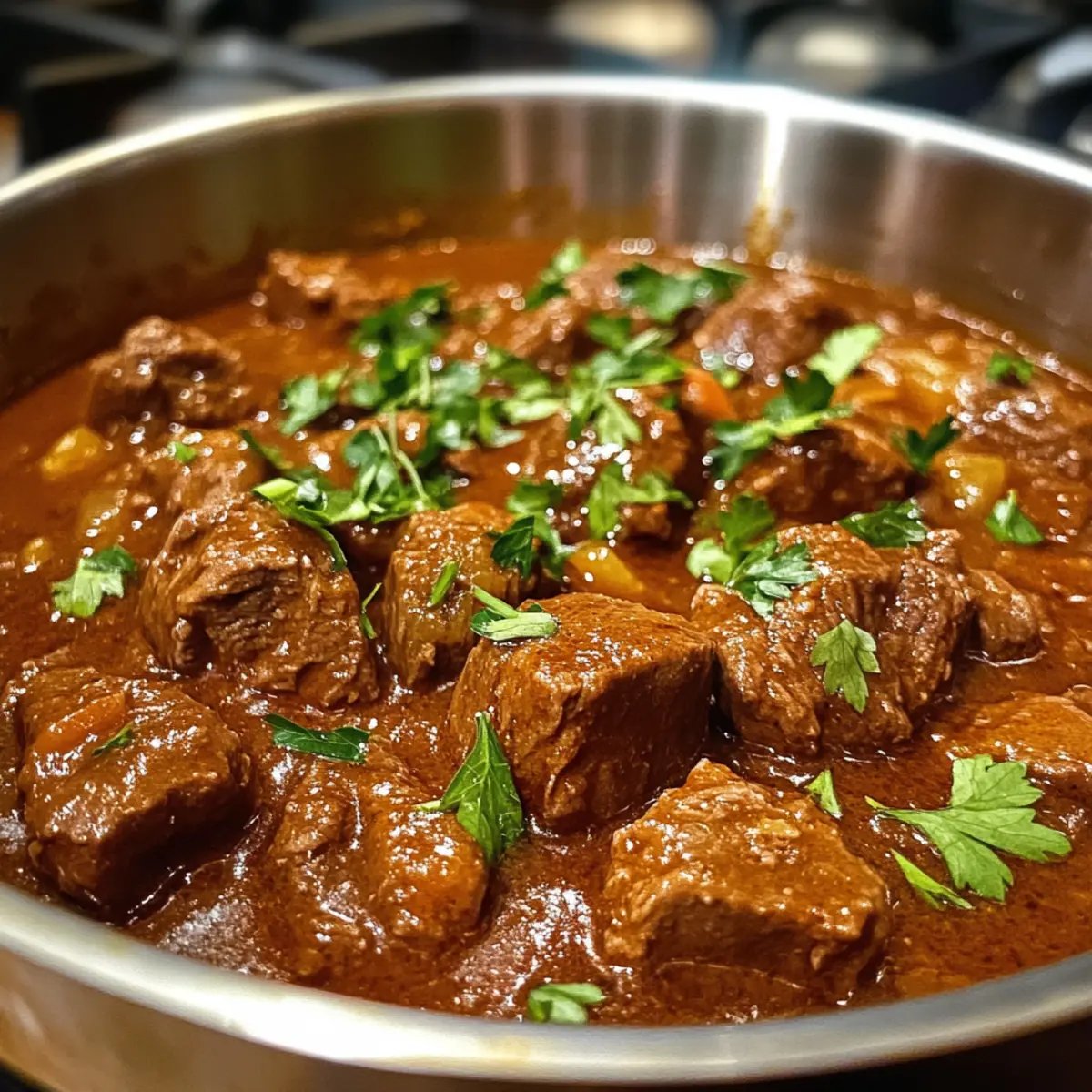 As the rich aroma of simmering spices wafts through my kitchen, I can’t help but feel transported to a bustling German market, where hearty meals warm both body and soul. Today, I’m excited to share my version of Classic German Goulash, a one-pot wonder that combines tender beef, sweet onions, and that distinct hit of smoky paprika all in under 30 minutes of hands-on time. This dish is not only perfect for cozy dinners—it’s also gluten-free and can easily cater to keto and paleo diets, making it an ideal choice for anyone looking to ditch fast food without sacrificing flavor. Whether served alongside fluffy potatoes or traditional spätzle, German Goulash is sure to become a comforting staple in your home. Curious to know how this dish can elevate your dinner table? Let’s dive in! Why is German Goulash a must-try? Warm, Hearty Delight: This German Goulash brings a perfectly balanced combination of tender beef and flavorful spices that’ll warm your soul. Simple Steps: With just 30 minutes of hands-on prep, you’ll have a satisfying dish that isn’t fussy. Dietary Friendly: It’s naturally gluten-free, and the recipe easily adapts to keto or paleo needs. Versatile Serving Options: Pair it with spätzle, crusty bread, or mashed potatoes for a customizable experience. Meal Prep Hero: Make it ahead and let flavors deepen overnight—it’s even better the next day! Elevate your weeknight dinners and experience the essence of heartwarming comfort with this timeless recipe. German Goulash Ingredients • Note: Gather these ingredients to create a delightful German Goulash that promises robust flavor and comfort. For the Stew Onions – Essential for depth and sweetness; use yellow or sweet onions for optimal flavor. Olive Oil – Helps sauté onions to caramelize; can be substituted with vegetable oil if preferred. Beef Chuck Roast – The main protein providing richness and flavor; stew beef works well in its place. Green Pepper – Adds sweetness and subtle crunch but can be omitted for a milder flavor. Garlic – Enhances the aromatic profile; fresh minced garlic is recommended for the best taste. Tomato – Provides acidity and complexity; fresh or canned diced tomatoes can be used. Kosher Salt – Enhances flavor; remember to adjust to taste, especially with canned broth. Black Pepper – Adds seasoning and a touch of heat. Sweet Hungarian Paprika – Gives color and distinct taste; essential for authentic German Goulash. Dried Marjoram – Adds an herbal note that complements the beef beautifully. Caraway Seed – Introduces warmth and a slightly sweet flavor. Tomato Paste – Thickens the stew and enriches its taste. Beef Broth or Bouillon – Serves as the liquid base; choose low-sodium options to control saltiness. Dry Red Wine – Provides depth of flavor; can be substituted with beef broth or balsamic vinegar for a non-alcoholic version. Bay Leaf – Infuses a layer of flavor during cooking. Fresh Parsley – For garnishing, adds a pop of freshness and color. With these ingredients, you’re well on your way to creating a hearty German Goulash that warms the heart and satisfies the palate. Step‑by‑Step Instructions for German Goulash Step 1: Preheat and Prepare Begin by preheating your oven to 325°F (163°C). In a large Dutch oven, heat 2 tablespoons of olive oil over medium heat. Once shimmering, add 2 chopped onions and 1 teaspoon of kosher salt. Sauté for 15-20 minutes until the onions turn golden brown and fragrant, stirring occasionally to prevent sticking. Step 2: Brown the Beef Transfer the sautéed onions to a bowl and set aside. In the same pot, add 2 pounds of cubed beef chuck roast. Brown the beef for about 5-10 minutes, allowing the cubes to sear until they’re nicely browned on all sides. This step enhances the flavor of your German Goulash, creating a rich base for the stew. Step 3: Combine Ingredients Return the cooked onions to the pot with the browned beef. Now, stir in 1 chopped green pepper, 4 minced garlic cloves, and 1 diced tomato. Sprinkle in 2 tablespoons of sweet Hungarian paprika, 1 tablespoon of dried marjoram, 1 teaspoon of caraway seeds, and 2 tablespoons of tomato paste. Mix everything well until all ingredients are coated in spices. Step 4: Add Liquids and Season To the pot, pour in 4 cups of beef broth and 1 cup of dry red wine. Season with 1 teaspoon each of black pepper and additional kosher salt to taste. Toss in 1 bay leaf, then stir everything together until well combined. You’ll notice the delicious aroma of your German Goulash starting to develop. Step 5: Bring to a Boil and Transfer Raise the heat to bring the mixture to a boil, then reduce it to a gentle simmer. Cover the pot slightly askew with a lid, and transfer it to your preheated oven. Allow the goulash to braise for 1.5 to 2 hours, until the beef is fork-tender and the flavors meld beautifully. Step 6: Final Touches and Serve Once cooked, carefully remove the pot from the oven. Discard the bay leaf and taste the stew, adjusting seasoning if necessary. Garnish your hearty German Goulash with freshly chopped parsley before serving. Enjoy it paired with spätzle, creamy mashed potatoes, or crusty bread for a complete meal that warms the heart. Expert Tips for German Goulash Choose the Right Beef: Select beef chuck roast for the richest flavor; it’s perfect for slow cooking. Stew beef works well but may not be as tender. Sauté Onions Properly: Take your time caramelizing the onions to a golden brown; this step builds essential sweetness and depth for your German Goulash. Fresh Spices Matter: Ensure your paprika and herbs are fresh for maximum flavor. Old spices can dull the dish, leading to a less vibrant taste. Monitor Salt Levels: Adjust kosher salt after adding broth, especially if using packaged options—they can be quite salty, and balance is key. Reheat Gently: If making in advance, gently reheat the goulash on the stovetop to preserve its delicate texture 