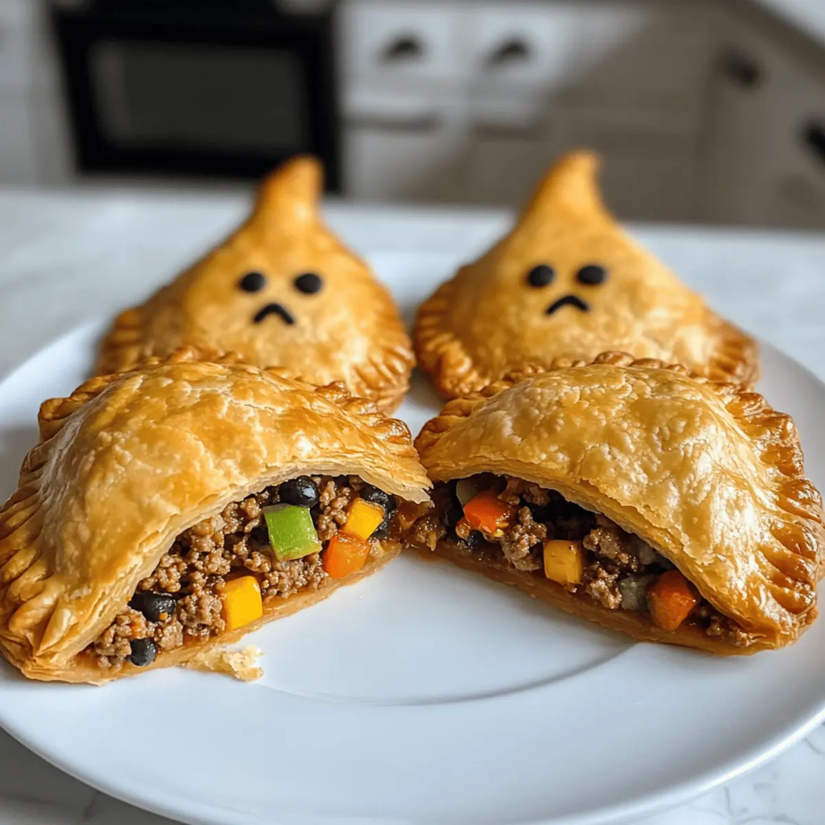 As the leaves turn and Halloween creeps in, there’s something irresistibly enchanting about transforming ordinary meals into whimsical treats. I’m thrilled to share my recipe for Ghost Taco Hand Pies! These delightful little pockets blend the classic comfort of tacos with a spooky twist, making them the perfect addition to your Halloween festivities or a cozy family gathering. With their quick prep time and versatility—choose between savory taco fillings or delightful pizza alternatives—these hand pies promise to please both kids and adults alike. Whether served with luscious salsa or creamy guacamole, you’ll want to make these again and again. Ready to make your kitchen a bit more hauntingly delicious? Let’s dive into this fun, family-friendly recipe! Why Are Ghost Taco Hand Pies So Fun? Festive Fun: These hand pies bring a playful twist to your Halloween table, transforming ordinary tacos into spooky treats that kids will love. Quick & Easy: With a simple preparation process, you can whip these up in no time—perfect for busy evenings or last-minute parties! Versatile Fillings: Choose from classic taco ingredients or switch it up with pizza-inspired fillings for a delightful alternative. Crowd-Pleaser: These savory pockets cater to all taste buds and are sure to impress guests at any Halloween gathering. Serve with salsa or guacamole for added flavor! Creative Presentation: Plus, their fun ghost shapes make them not just a meal but a festive decoration for your dinner table, inviting everyone to enjoy the whimsy. Ghost Taco Hand Pie Ingredients For the Filling • Lean Ground Beef – The main protein source; swap for ground turkey or chicken if desired. • Taco Seasoning – Infuses flavor into the meat; use homemade or store-bought varieties for convenience. • Shredded Carrot – Adds natural sweetness and nutrients; can be replaced with finely chopped bell peppers or zucchini. • Chopped Bell Pepper or Baby Spinach – Optional; enhances flavor and adds color to your filling. • Shredded Mexican Cheese – Adds creaminess and flavor; cheddar or mozzarella works well as a substitute. For the Crust • Pie Crusts – Ready-made for quick preparation; consider homemade crust for a fresher taste. • Egg – For brushing the top; gives the hand pies a golden, glossy finish. Substitute milk or water if needed. For Serving • Salsa – A perfect accompaniment that adds freshness; enjoy homemade or take a shortcut with store-bought salsas. Feel free to let your creativity shine with these Ghost Taco Hand Pies, and remember, the combinations are endless—allowing you to enjoy this festive treat throughout the Halloween season! Step‑by‑Step Instructions for Ghost Taco Hand Pies Step 1: Prepare Taco Filling In a large skillet over medium heat, brown 1 pound of lean ground beef for about 5-7 minutes until fully cooked. Stir in your favorite taco seasoning and optional shredded carrots, chopped bell peppers, or baby spinach. Continue to cook for another 2-3 minutes, allowing the flavors to meld. Once everything is evenly combined and cooked through, remove the skillet from heat and set aside. Step 2: Roll Out Pie Crusts On a lightly floured surface, take two unbaked pie crusts and roll each out gently with a rolling pin. Aim for about 1/8-inch thickness to ensure they are manageable. Using ghost-shaped cookie cutters, cut out shapes from the dough, making sure you have an equal number of tops and bottoms for your Ghost Taco Hand Pies. Gather and re-roll any dough scraps as needed. Step 3: Fill Ghost Shapes Arrange half of the ghost shapes on a baking sheet lined with parchment paper. Spoon a generous amount of the taco filling onto the center of each shape, followed by a sprinkle of shredded Mexican cheese. Be cautious not to overfill, as this can prevent proper sealing. The filling should be heaped nicely but with enough space to allow for a good seal with the tops. Step 4: Seal and Cut Eyes Place the remaining ghost cut-outs over the filled shapes to create the tops of your hand pies. Press around the edges firmly to seal them completely. Using a small circular tool or a knife, cut out tiny holes for eyes and mouths in each ghost to give them their spooky charm. This step is essential for letting steam escape while baking. Step 5: Apply Egg Wash To achieve that beautiful golden finish, whisk one egg in a small bowl to create an egg wash. Using a pastry brush, gently coat the tops of the sealed Ghost Taco Hand Pies with the egg mixture. This will lend a lovely shine and enhance the overall appearance of your festive treats. Step 6: Bake Preheat your oven to 425°F (220°C) and once ready, place the baking sheet with your prepared Ghost Taco Hand Pies into the oven. Bake for about 10-14 minutes, watching carefully for them to turn a rich golden brown. The aroma will fill your kitchen, signaling that Halloween treats are on the way! Step 7: Serve Once baked, remove your Ghost Taco Hand Pies from the oven and let them cool for a few minutes. They will be hot out of the oven! Serve them warm with a side of salsa or guacamole for dipping. The flakiness of the crust paired with the savory filling makes this spooky snack a perfect addition to any Halloween gathering. How to Store and Freeze Ghost Taco Hand Pies Fridge: Keep your Ghost Taco Hand Pies in an airtight container for up to 3 days to maintain their flavor and freshness. Freezer: For long-term storage, freeze the baked hand pies in a single layer, then transfer to an airtight container or freezer bag. They can be stored for up to 3 months. Reheating: To enjoy your frozen hand pies, reheat from frozen in the oven at 375°F for about 15-20 minutes, or until heated through and crispy. Prep Tips: If you want to make ahead, consider preparing the filling in advance and assembling the hand pies just before baking for fresh, delicious results. Expert Tips for Ghost Taco Hand Pies • Roll It Right: Ensure your pie crust is r