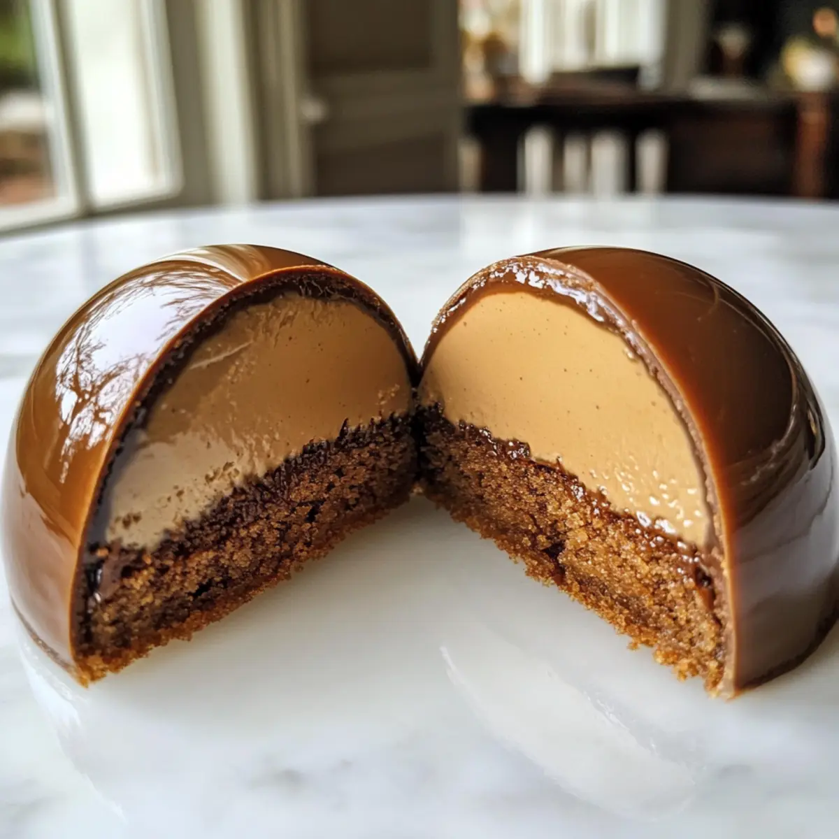 A delightful aroma fills the kitchen as I whisk together the fragrant spices that define the essence of the holidays. These Gingerbread Latte Mousse Domes are my answer to those cozy evenings spent indoors, blending warmth and elegance into a festive dessert. Each bite of this luscious mousse is a celebration of rich espresso and spiced gingerbread, wrapped in a glossy glaze that beckons you to indulge. Not only are they a show-stopping centerpiece for holiday gatherings, but they also bring a fast, crowd-pleasing solution to your seasonal sweet tooth. What better way to impress loved ones than with a dessert that captures the spirit of winter nights? Ready to take your dessert game to the next level? Let’s dive into this scrumptious adventure together! Why are these mousse domes irresistible? Decadent Flavors: The enchanting blend of gingerbread spices and rich espresso will make your taste buds dance with joy. Elegant Presentation: Each dome is elegantly finished with a shiny glaze, perfect for impressing guests at holiday parties. Easy to Make: Although they look fancy, the step-by-step instructions make this recipe accessible for home cooks of every skill level. Versatile Options: Feel free to customize the flavor or add festive touches, making these Gingerbread Pancakes Flapjacks a great addition to your dessert lineup. Crowd-Pleasing Delight: These mousse domes are sure to be a hit at family gatherings and festive celebrations, leaving everyone craving more. Gingerbread Latte Mousse Domes Ingredients • To create these delightful Gingerbread Latte Mousse Domes, you will need a combination of rich and aromatic ingredients to capture that festive essence. For the Mousse Espresso – Provides a robust coffee flavor that enhances the spiced notes; substitute with strong brewed coffee if necessary, although it may dilute the taste. Brown Sugar – Adds sweetness and depth to the mousse; can be replaced with granulated sugar, although this substitution will slightly alter the flavor. White Chocolate – Contributes creaminess and helps stabilize the mousse; substitute with dark chocolate for a deeper flavor, but be cautious of the sweetness. Cinnamon – One of the warm spices that adds an aromatic essence; adjust according to taste preference for a customized spice profile. Cloves – Imparts a warm and rich flavor; no substitutes needed, just a sprinkle will do! Nutmeg – Offers depth to the spice blend; feel free to adjust based on your personal taste. Mascarpone Cheese – Provides a rich, creamy texture; can be substituted with cream cheese for a tangy twist, but this will change the mousse’s texture. Gelatin – Essential for setting the mousse; ensure it is properly bloomed before use for the best results. Molasses – Adds a signature gingerbread flavor and sweetness; honey can substitute it, but will alter the overall taste slightly. Egg Yolk – Binds the ingredients, ensuring a tender mousse; omit for vegan options but adjust liquid ratios accordingly. For the Cookie Base All-Purpose Flour – Forms the structure of the dome; replace with gluten-free flour for a gluten-free version. Gingerbread Spices – Blend of spices to enhance the cookie base; can use pre-mixed gingerbread spice for ease. For the Glaze Mirror Glaze – A shiny finish that adds elegance; adjust temperature properly for best coverage. These Gingerbread Latte Mousse Domes capture the very essence of the season, making them a perfect festive treat to share with your loved ones! Step‑by‑Step Instructions for Gingerbread Latte Mousse Domes Step 1: Prepare Mousse Base Begin by blooming the gelatin. In a small bowl, sprinkle gelatin over 2 tablespoons of cold water and let it sit for about 5 minutes. Meanwhile, in a saucepan, heat 1/2 cup of espresso with 1/4 cup of brown sugar, 1 teaspoon of cinnamon, 1/4 teaspoon of ground cloves, and a pinch of nutmeg over low heat until the sugar dissolves, around 2–3 minutes. Once warm, stir in the bloomed gelatin until fully dissolved. Step 2: Melt White Chocolate After your espresso mixture cools to room temperature, chop 4 ounces of white chocolate and place it in a heatproof bowl. Pour the cooled espresso mixture over the chocolate and stir gently until the chocolate melts and becomes smooth. Allow this luscious mixture to cool for another 5 minutes while you whip the mascarpone. Step 3: Whip Mascarpone and Cream In a separate mixing bowl, add 1 cup of mascarpone cheese and beat it until smooth. In another bowl, whip 1 cup of heavy cream until soft peaks form. Carefully fold the cooled espresso-chocolate mixture into the mascarpone, then gently incorporate the whipped cream until just combined, preserving the lightness of the mousse. Step 4: Prepare Cookie Base To create the gingerbread cookie base, whisk together 1 1/4 cups of all-purpose flour with 1 teaspoon of ginger, 1 teaspoon of cinnamon, and 1/2 teaspoon of baking soda in a bowl. In another bowl, combine 1/4 cup of softened butter, 1/2 cup of brown sugar, and one egg yolk, mixing until well combined. Gradually add the dry mixture and knead gently until you form a cohesive dough. Roll it out, cut shapes, and bake in a preheated oven at 350°F (175°C) for about 8–10 minutes until firm. Step 5: Assemble Domes Once both components are ready, take your silicone molds and begin filling them with the gingerbread latte mousse mixture. Gently tap the mold to remove any air bubbles. Next, place the baked cookie base upside down on top of the mousse in each mold, ensuring it sits evenly. Freeze the domes for at least 4 hours or until solid to create those delightful Gingerbread Latte Mousse Domes. Step 6: Glaze Prepare a glossy mirror glaze by heating it to 90°F (32°C). Remove your frozen mousse domes from the molds and carefully place them on a wire rack positioned over a baking tray. Pour the warm glaze over the domes, allowing it to coat evenly for a beautiful shine. Allow any excess glaze to drip off be