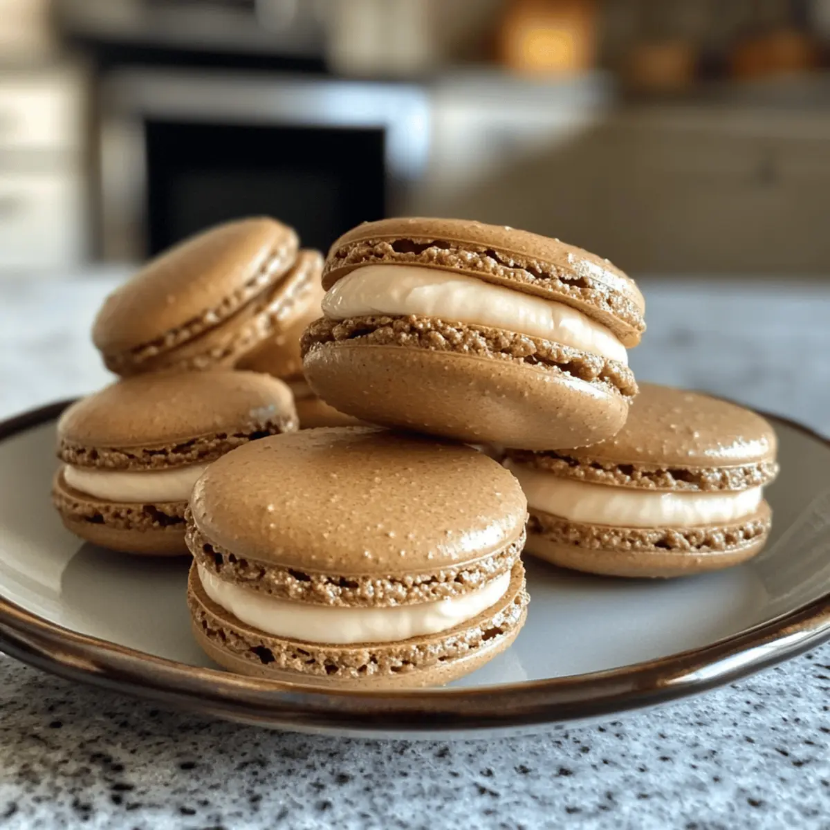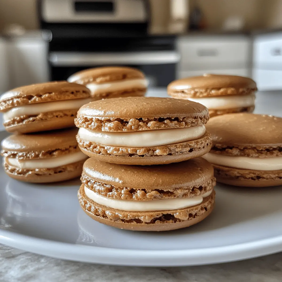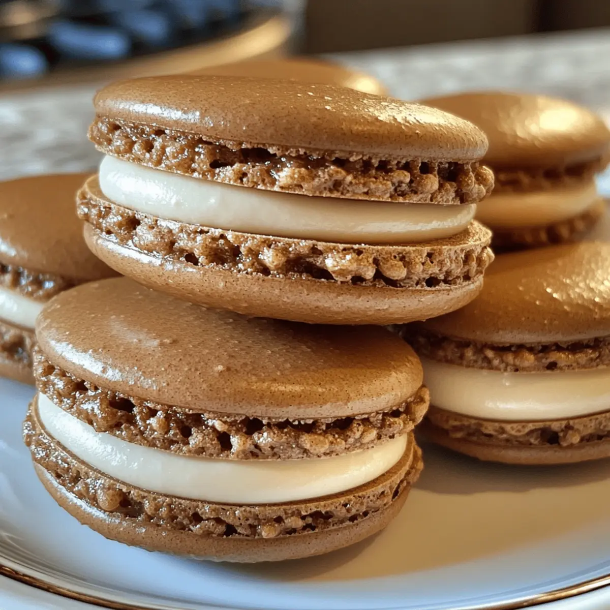 As the first hint of winter settles in, my kitchen transforms into a cozy sanctuary filled with the aromas of ginger, cinnamon, and allspice. There’s something so enchanting about the holiday season, and these Gingerbread Macarons with Creamy Buttercream Filling perfectly capture that spirit. Not only are they a delightful, gluten-free treat, but their unique spin on a classic French pastry makes them a wonderful showstopper for your Christmas dessert table. With their soft, chewy shells and rich, creamy filling, these macarons are sure to bring joy to your holiday gatherings—whether you’re sharing them with loved ones or gifting them in charming boxes. Curious how to create these festive delights? Let’s dive into the recipe together! Why are Gingerbread Macarons a Must-Make? Festive Flavor Fusion: Each macaron captures the holiday essence with warm spices like ginger and cinnamon—a delightful nod to classic gingerbread. Unique Treat: This gluten-free dessert offers a twist on traditional macarons, making it a memorable addition to your Christmas spread. Simple Steps: With clear instructions, even beginner bakers can confidently create these beautiful treats without feeling overwhelmed—perfect for weekend fun! Perfect for Gifting: Pack these macarons in decorative boxes to share your holiday spirit with friends and family, or serve at festive gatherings for a guaranteed crowd favorite. Inspired Pairing: Enjoy these gingerbread delights alongside a warm cup of hot cocoa or try them with your favorite festive drink for an unforgettable experience! Gingerbread Macarons Ingredients Get ready to create festive magic with these delightful Gingerbread Macarons! For the Macaron Shells Granulated Sugar – Essential for sweetness, helping to create those perfectly chewy meringue shells. Egg Whites – The backbone of your meringue; ensure they are at room temperature for best results. Almond Flour – Provides that characteristic chewy texture; opt for finely ground for the best outcome. Powdered Sugar – Used for smoothness in the macaron batter, ensuring a lovely finish. Ginger Powder – Key for the authentic gingerbread flavor; don’t skimp on this spice! Cinnamon Powder – Adds warmth and complements the ginger perfectly, creating a festive aroma. Ground Allspice & Ground Nutmeg – Elevate the spiced profile for a deeper flavor experience. Cocoa Powder – Optional but excellent if you wish to deepen the color of your shells. Food Coloring (Brown/Dijon) – A visual enhancement to make your macarons pop if desired. For the Buttercream Filling Unsalted Butter – The creamy base of your fluffiness; allow it to soften for easy whipping. Confectioners’ Sugar – Sweetness and thickness for a delightful creamy texture. Vanilla Extract – Adds a warm, comforting flavor that enhances the buttercream. Molasses – This ingredient brings richness and depth; vital for that gingerbread taste. Ground Ginger, Ground Cinnamon, & Nutmeg – Spice this buttercream to complement the macaron shells beautifully. Milk – A splash is helpful in achieving the perfect consistency for spreading. These Gingerbread Macarons are sure to become a favorite on your Christmas dessert table, delighting family and friends alike! Step‑by‑Step Instructions for Gingerbread Macarons Step 1: Prepare Ingredients Begin by gathering all your Gingerbread Macarons ingredients and ensuring your workspace is clean. Clean your mixing bowls and utensils with vinegar to eliminate any grease. Set up your piping bags with round tips, ready for the macaron batter, and preheat your oven to 310°F (or 290°F for smaller ovens) to ensure it’s hot when you’re ready to bake. Step 2: Make Meringue In a heatproof bowl, combine egg whites and granulated sugar over simmering water, whisking continuously until the sugar is fully dissolved, about 3-5 minutes. Remove the bowl from heat, then beat the mixture in a stand mixer on high speed until stiff peaks form, which should take about 5-7 minutes. The meringue should be glossy and hold its shape firmly. Step 3: Combine Ingredients Sift the almond flour and powdered sugar together to remove lumps, ensuring a smooth batter. Gently fold this mixture into the meringue using a spatula, taking care not to deflate the egg whites. If you’d like to add food coloring to the mixture for your Gingerbread Macarons, incorporate it during this step, mixing just until evenly blended. Step 4: Piping the Shells Transfer the macaron batter into prepared piping bags. On parchment-lined baking sheets, pipe uniform circles about 1.5 inches in diameter, spacing them at least an inch apart. To form a smooth surface, hold the piping bag vertically and apply steady pressure while pulling away quickly in a circular motion. Step 5: Resting Let the piped macaron shells rest at room temperature for 20-40 minutes, or until they form a skin that is touch-dry. The surface should be smooth, and lightly pressing a finger should not leave any indent. This step is crucial as it helps create the macaron’s signature “foot” during baking. Step 6: Bake Once rested, place the baking sheets in the preheated oven. Bake the Gingerbread Macarons for 15-20 minutes, rotating the trays halfway through to ensure even baking. The shells should rise and form a foot, with a smooth, shiny surface. They’re done when they easily lift off the parchment without sticking. Step 7: Prepare Buttercream While the macaron shells cool, make the creamy buttercream filling. In a mixing bowl, cream the softened unsalted butter until fluffy, about 2-3 minutes. Gradually add the sifted confectioners’ sugar, then blend in the vanilla extract, molasses, and spices until smooth and creamy. Adjust the consistency with milk as needed. Step 8: Assemble Pair up macaron shells of similar sizes and pipe a generous dollop of buttercream filling onto the flat side of half of them. Carefully top with the other half of the shells, gently press