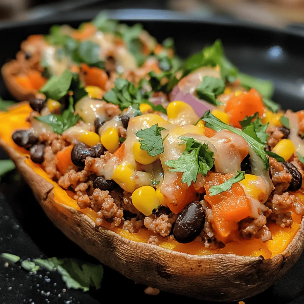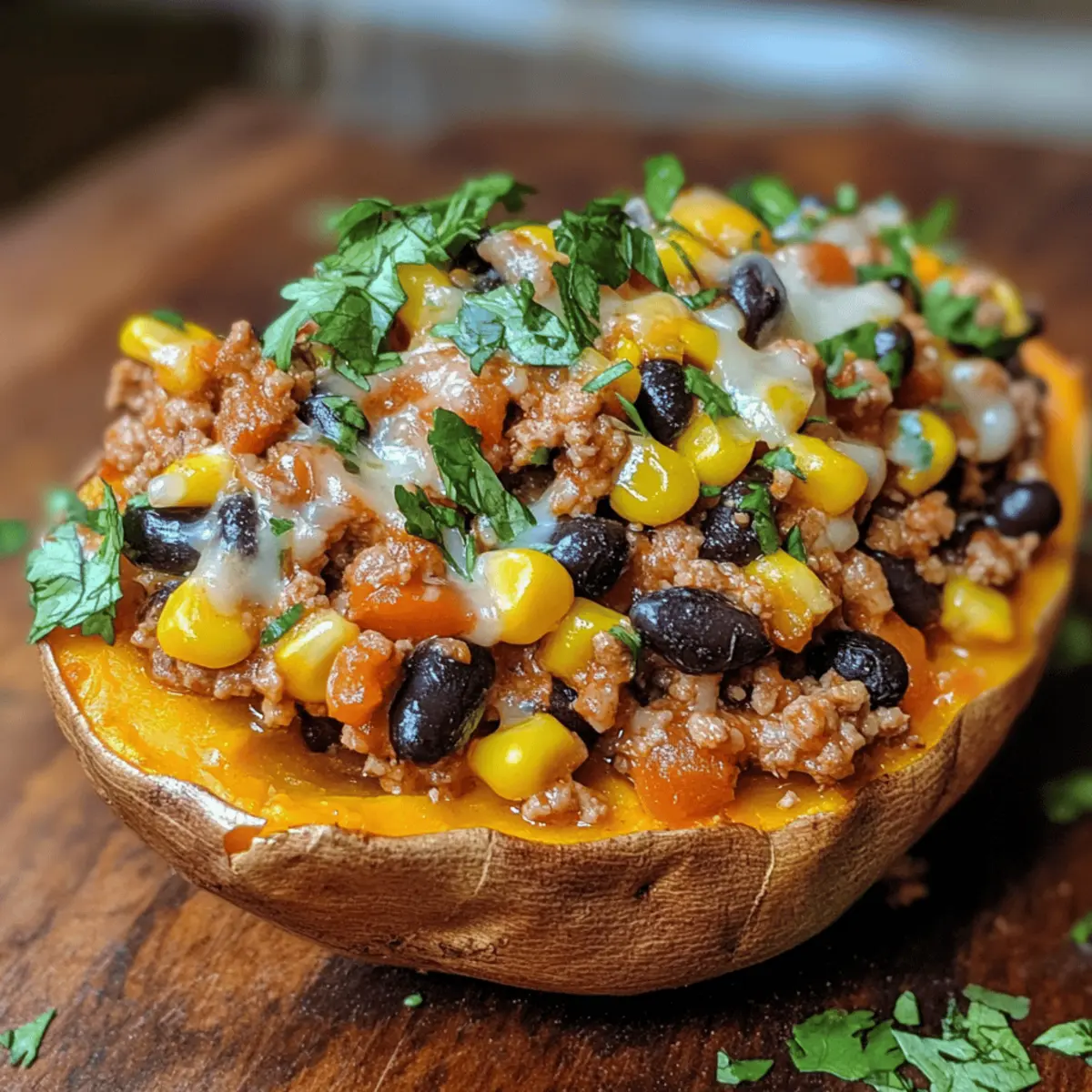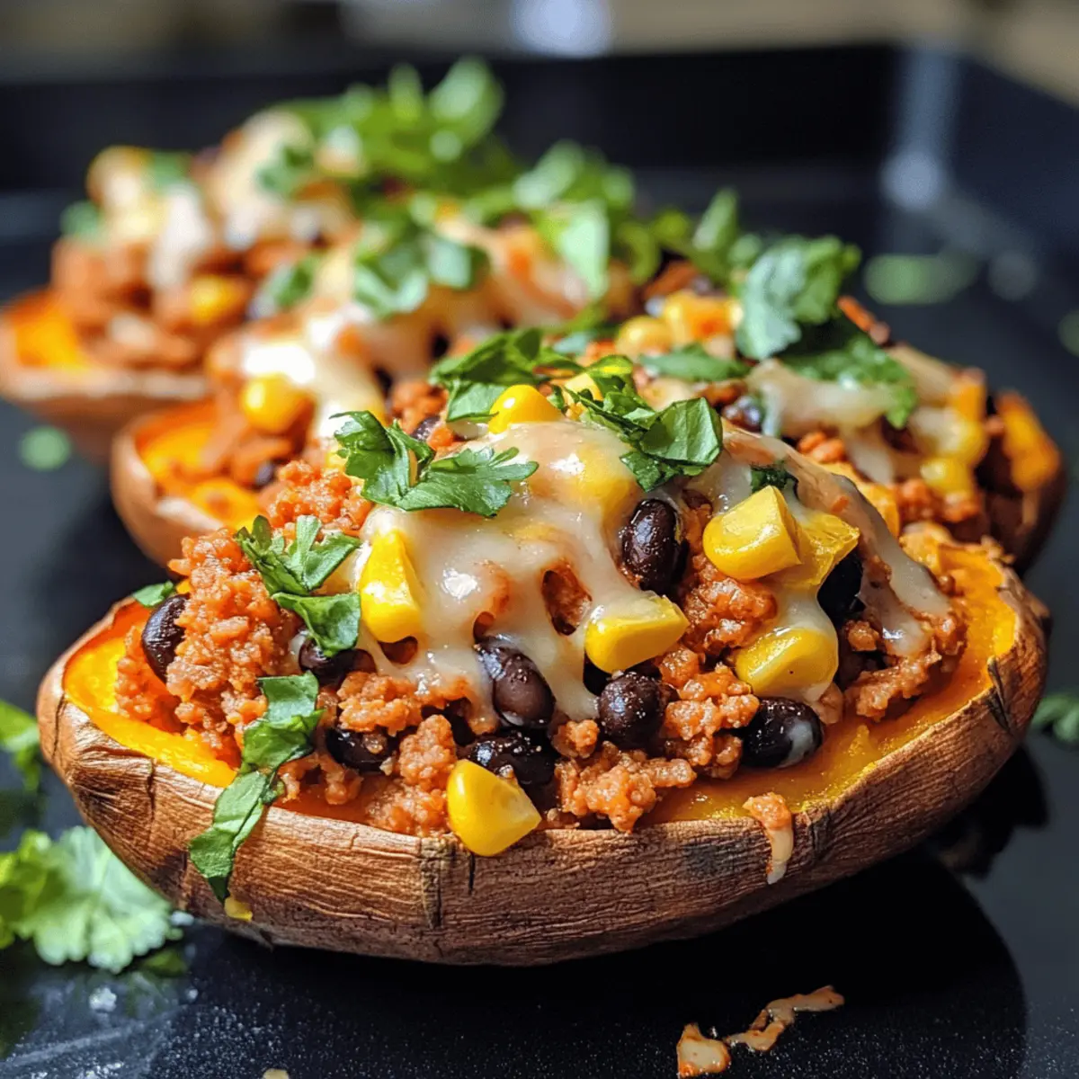 As I opened my fridge, a beautiful array of colors caught my eye—plump sweet potatoes, vibrant greens, and lean ground turkey just waiting to be transformed. This is the moment I knew I was ready to whip up my High Protein Ground Turkey Stuffed Sweet Potatoes, a dish that’s not only satisfying but also a nutritional powerhouse. This delightful meal is perfect for those busy weeknights or when you’re craving something hearty yet healthy. What I love most is how customizable it is; swap in crumbled tofu for a vegetarian twist or toss in your favorite veggies to amplify the flavor. Plus, it’s gluten-free and packed with protein, making it a guilt-free choice for any occasion! Curious to see how you can create this wholesome comfort food at home? Let’s dive in! Why choose Ground Turkey Stuffed Sweet Potatoes? Flavor Explosion: These stuffed sweet potatoes bring a delightful burst of flavor, combining savory ground turkey with aromatic spices and fresh vegetables. Protein-Packed: Each serving is a high-protein delight, making it perfect for health-conscious eaters or post-workout meals. Customizable: Whether you prefer crumbled firm tofu for a vegetarian option or want to experiment with different spices, this recipe has endless variations! Quick & Easy: With simple ingredients and straightforward instructions, you can whip this dish up in no time. Comfort Food Twist: Enjoy a heartwarming meal that’s both delicious and nutritious, ideal for cozy family dinners or meal prepping. Want to add more delightful options? Check out the Cheesecake Stuffed Red for dessert or a fresh salad! Ground Turkey Stuffed Sweet Potato Ingredients • Ready to create a delicious meal? Here’s what you’ll need! For the Sweet Potatoes • Sweet Potatoes – The base ingredient, providing a sweet and creamy texture; can swap with regular potatoes or butternut squash for variety. • Olive Oil – For cooking and flavor enhancement; feel free to use avocado oil as a substitute. For the Filling • Ground Turkey – The main protein source that absorbs flavors beautifully; consider crumbled firm tofu or TVP for a vegetarian twist. • Minced Garlic – An aromatic staple; opt for fresh garlic for the best taste. • Spices (Cumin, etc.) – Essential for flavor enhancement; adjust them to suit your personal palate. • Diced Tomatoes – Adds moisture and a hint of acidity; using canned tomatoes with juice makes it easy! • Black Beans – Boosts protein and texture; lentils or chickpeas can serve as great substitutes. • Corn Kernels – Provides sweetness and crunch; fresh corn can be delightful when in season. • Grated Zucchini – Introduces moisture and nutrition; feel free to omit or replace with your favorite grated veggies. • Spinach – An optional green for extra nutrition; kale or Swiss chard also make great substitutes. • Shredded Cheese – Topping for that creamy finish; use dairy-free cheese for a vegan option. For Topping • Green Onions – A great garnish that adds freshness; use as desired. • Salsa – Offers a zesty kick to complement the dish; adjust according to your taste preferences. • Greek Yogurt – Adds creaminess; substitute with a dairy-free version if needed. Embark on your culinary adventure with these ingredients for the sensational Ground Turkey Stuffed Sweet Potato! Step‑by‑Step Instructions for High Protein Ground Turkey Stuffed Sweet Potatoes Step 1: Cook Sweet Potatoes Begin by preheating your oven to 425°F (220°C). While it heats, carefully pierce the sweet potatoes several times with a fork to prevent bursting. Place them directly on the oven rack and bake for 45-50 minutes until soft and tender. If you’re short on time, you can microwave them for 6-8 minutes, flipping halfway through until they are easily pierced with a fork. Step 2: Prepare Filling Once the sweet potatoes are cooked, remove them from the oven and allow them to cool slightly. Carefully slice each open and scoop out the flesh into a bowl, leaving the skins intact. Mash the sweet potato flesh with a drizzle of olive oil and cumin until smooth. Meanwhile, heat a skillet over medium heat, add a touch of olive oil, then sauté minced garlic until fragrant, about 1 minute. Step 3: Cook Ground Turkey Add the ground turkey to the skillet with the garlic, breaking it apart with a spatula. Cook for 6-8 minutes, stirring occasionally, until the turkey is browned and cooked through. Sprinkle in your preferred spices, then stir in diced tomatoes, black beans, corn, grated zucchini, and spinach. Allow the mixture to heat through for about 5 minutes, ensuring the flavors meld beautifully. Step 4: Assemble the Stuffed Sweet Potatoes With the filling prepared, it’s time to assemble your High Protein Ground Turkey Stuffed Sweet Potatoes. Scoop the turkey mixture generously into each sweet potato skin. Ensure each potato is packed full, allowing the delicious filling to overflow slightly. This will create a visually appealing and flavorful presentation. Step 5: Broil for a Golden Finish To give your dish a crispy, flavorful topping, preheat your broiler. Sprinkle a generous layer of shredded cheese over the stuffed sweet potatoes. Place them under the broiler for 6-8 minutes, keeping a close eye on them, until the cheese is bubbly and golden brown. This step adds a melty, delicious crust that enhances the overall experience. Step 6: Serve with Delightful Toppings Remove the stuffed sweet potatoes from the oven and let them cool for a minute. Before serving, add your desired toppings such as sliced green onions, a dollop of salsa, or Greek yogurt for a touch of creaminess. These finishing touches will elevate your High Protein Ground Turkey Stuffed Sweet Potatoes, making them both inviting and delicious! Ground Turkey Stuffed Sweet Potato Variations Feel free to get creative and tailor this delicious recipe to your taste buds! Vegetarian Delight: Swap ground turkey for crumbled firm tofu or tex