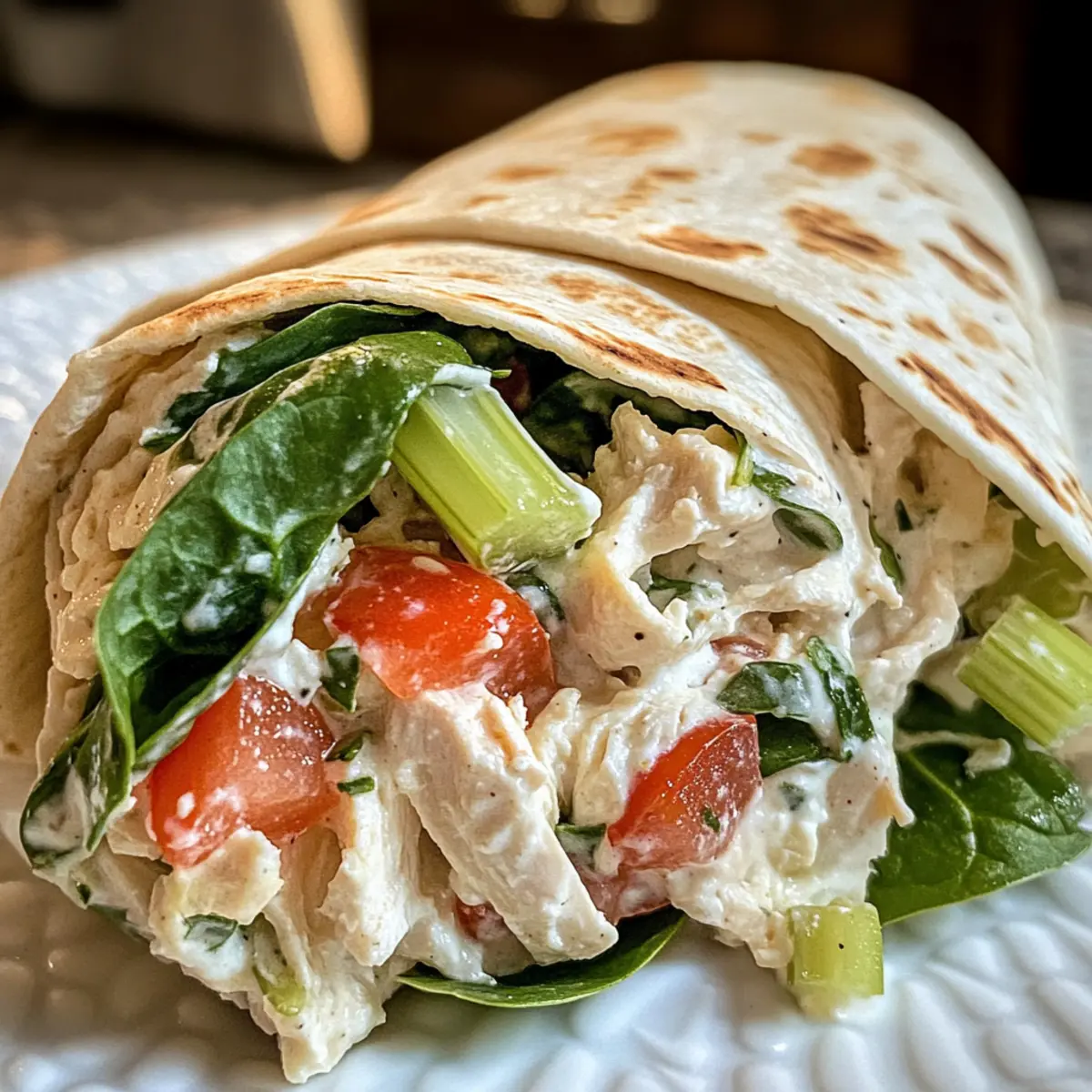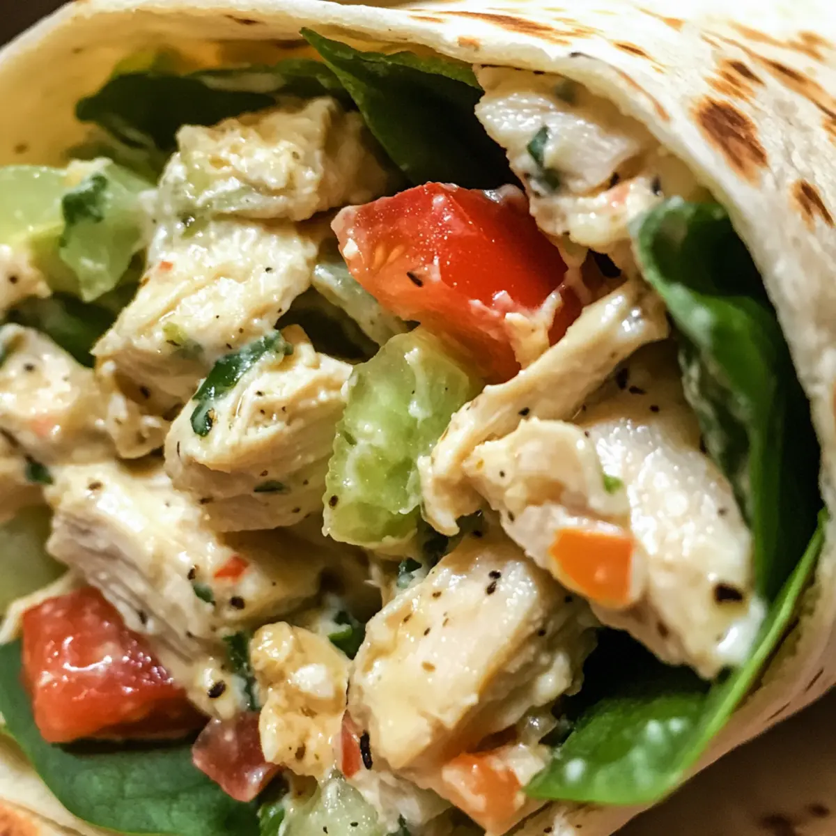 Homemade Chicken Salad Wrap: a delightful blend of creamy chicken and crunchy veggies, perfect for a fresh lunch.