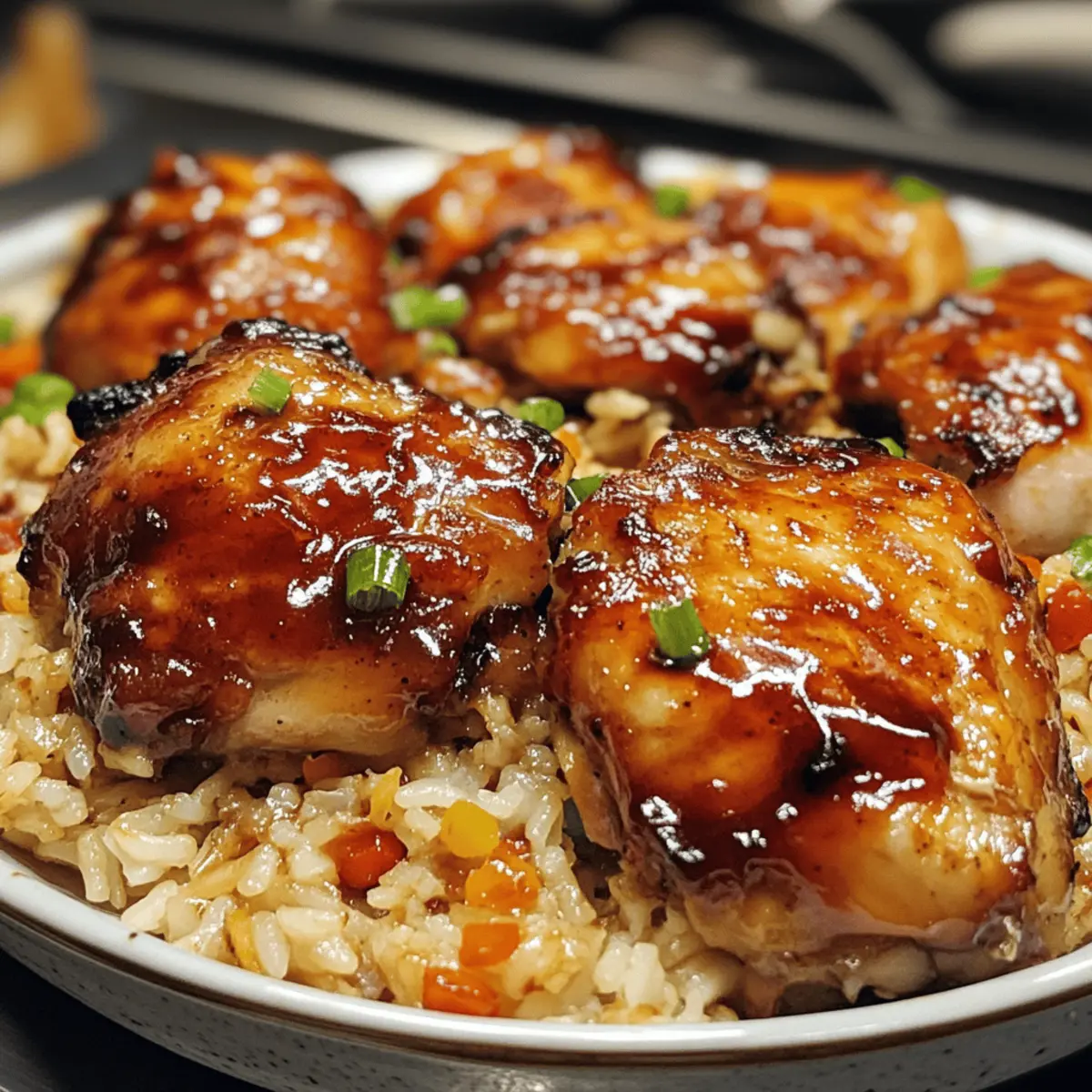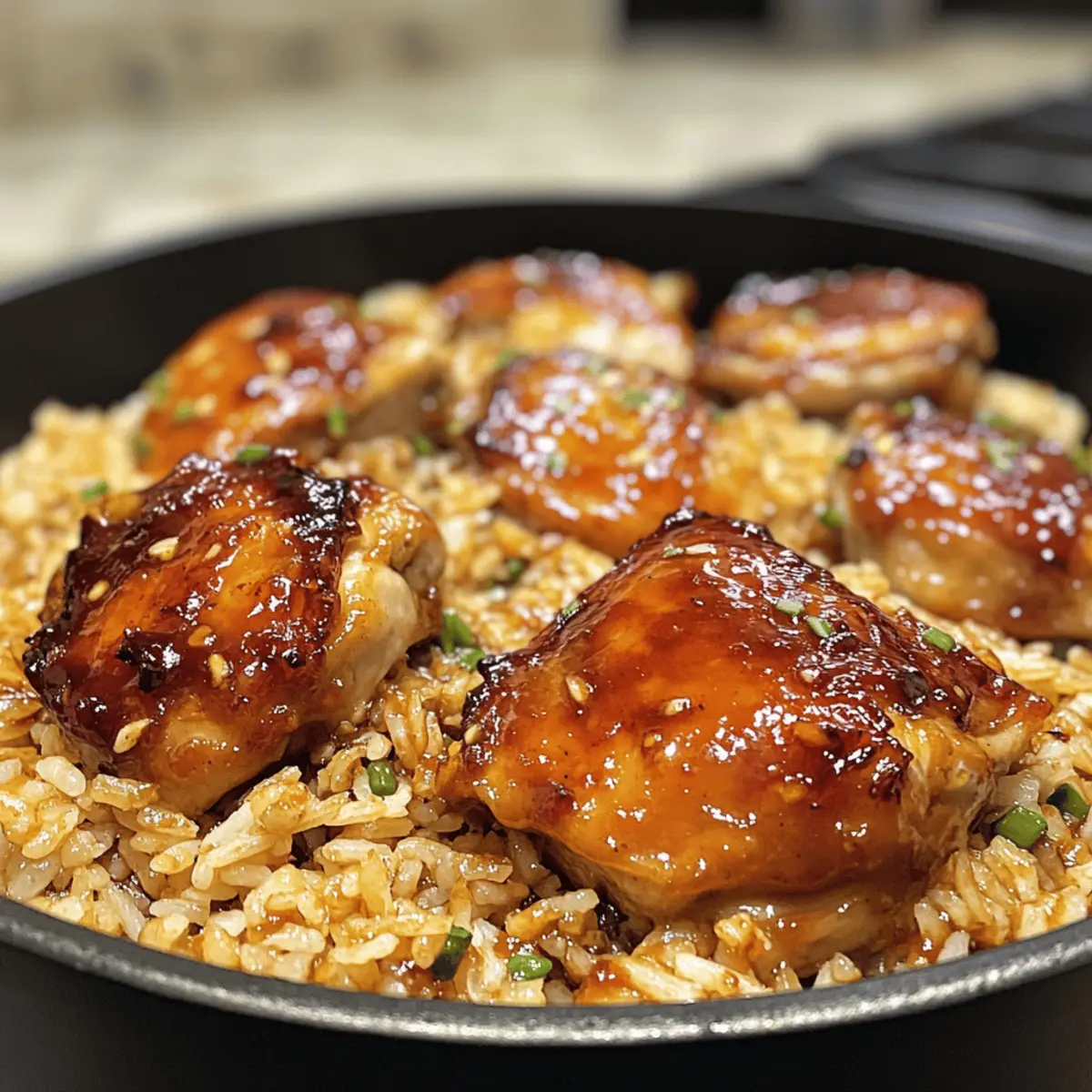 The sizzling sound of chicken meeting a hot skillet instantly takes me back to family dinners that filled our home with warmth and laughter. Today, I’m excited to share my go-to recipe for Honey BBQ Chicken Rice—a comforting one-pan meal that brings together tender, juicy chicken, sweet honey, and smoky BBQ sauce, all resting on a fluffy bed of rice. Perfect for those busy weeknights, this dish is a crowd-pleaser that not only satisfies but also makes meal prep a breeze. Plus, with options for gluten-free and vegetarian versions, everyone at the table can enjoy a hearty helping. Are you ready to create a meal that combines comfort with convenience? Let’s dive in! Why is Honey BBQ Chicken Rice a Must-Try? One-Pan Wonder: This recipe simplifies dinner preparation by combining everything in one pan, saving you time on both cooking and cleanup. Flavor Explosion: The blend of honey and BBQ sauce creates a deliciously sweet and smoky flavor that will have everyone coming back for seconds. Customizable Delight: Whether you’re gluten-free, low-carb, or craving a vegetarian twist, it’s easy to adapt this dish to suit your needs. Family Favorite: Perfectly suited for hectic weeknights, this meal brings comfort to the table and guarantees smiles all around. Meal Prep Magic: Prepare it ahead of time! The leftovers store beautifully and make for quick lunches—a win-win for every busy household. Why not pair this with a light salad for a refreshing contrast, or check out some creative spins with Buffalo Chicken Taquitos for your next gathering? Honey BBQ Chicken Rice Ingredients • Perfect for a quick and satisfying family dinner! For the Chicken Chicken Thighs – Offers juiciness and tenderness; substitute chicken breasts but keep an eye on cooking time. For the Rice Long-Grain Rice – Absorbs flavors beautifully; consider brown rice for added fiber but increase cooking time. Chicken Broth – Adds depth of flavor; use vegetable broth for a vegetarian option. For the Sauce BBQ Sauce – The star of this dish, providing a sweet and smoky glaze; select a sauce that matches your heat preference. Honey – Adds natural sweetness and helps caramelize the chicken; adjust for less sweetness if desired. For Seasoning Garlic Powder – Enhances savoriness; feel free to use fresh garlic for a bolder taste. Onion Powder – Complements the garlic; adjust as needed based on preference. Smoked Paprika – Contributes a subtle smokiness; substitute with regular paprika to tone it down. Salt & Pepper – Essential for basic seasoning to taste. For Extras Mixed Vegetables (Optional) – Amp up nutrition and color; frozen peas, carrots, and corn are fantastic choices. Chopped Green Onions (For Garnish) – Adds freshness and a pop of color to your dish. Now you have everything you need for the glorious Honey BBQ Chicken Rice, a dish that’s easy to make and absolutely delightful to eat! Step‑by‑Step Instructions for Honey BBQ Chicken Rice Step 1: Season the Chicken Begin by seasoning the chicken thighs with garlic powder, onion powder, smoked paprika, salt, and pepper. Ensure both sides of the chicken are well-coated, allowing the flavors to infuse beautifully. This blend will enhance the taste of your Honey BBQ Chicken Rice. Step 2: Sear the Chicken Heat a large skillet over medium heat, then carefully add the seasoned chicken thighs to the pan. Sear them for about 3–4 minutes on each side until golden brown. Once done, remove the chicken from the skillet and set it aside on a plate while you prepare the next step. Step 3: Prepare the BBQ Sauce Mixture In a mixing bowl, combine BBQ sauce, honey, and a splash of soy sauce. Stir in the minced garlic until smooth and well blended. This savory-sweet sauce will be the star of your Honey BBQ Chicken Rice, creating a delicious glaze as it cooks. Step 4: Toast the Rice Using the same skillet, add uncooked long-grain rice and toast it for about 1-2 minutes, stirring frequently. This step brings out the nutty flavor of the rice. Then, pour in chicken broth along with half of the prepared BBQ sauce mixture, stirring everything together to evenly coat the rice. Step 5: Combine Chicken and Sauce Return the seared chicken thighs to the skillet, placing them gently on top of the rice mixture. Pour the remaining BBQ sauce over the chicken. Cover the skillet with a tight-fitting lid to trap the steam, allowing the flavors to meld together while cooking. Step 6: Simmer to Perfection Let the Honey BBQ Chicken Rice simmer on medium-low heat for about 15 minutes. Alternatively, you can bake it in the oven at 375°F for 35-40 minutes. Keep an eye on the chicken and rice, ensuring that the rice is tender and the chicken is cooked through and juicy. Step 7: Add Vegetables (Optional) If you’re using mixed vegetables, add them to the skillet after the initial cooking time. Stir gently to incorporate and allow them to cook for an additional 5 minutes. This will enhance the nutrition and color of your Honey BBQ Chicken Rice. Step 8: Rest and Serve After cooking, take the skillet off the heat and let it sit for about 5 minutes. This resting period helps the flavors settle. Garnish with chopped green onions for a fresh pop before serving this delightful and comforting dish to your family. What to Serve with Honey BBQ Chicken Rice Bring your dining experience to life with delightful sides that perfectly elevate the comforting flavors of this dish. Fresh Green Salad: A crisp salad with mixed greens and a tangy vinaigrette offers a refreshing contrast to the rich honey BBQ glaze. The crunchiness pairs beautifully, lightening the meal while enhancing the vibrant flavors. Creamy Coleslaw: This creamy side adds a satisfying texture with its crunchy cabbage and tangy dressing. It acts as a delightful counterbalance to the sweetness of the chicken, making each bite more enjoyable. Garlic Breadsticks: Soft, buttery breadsticks deliver that necessary carb fix while complementing th