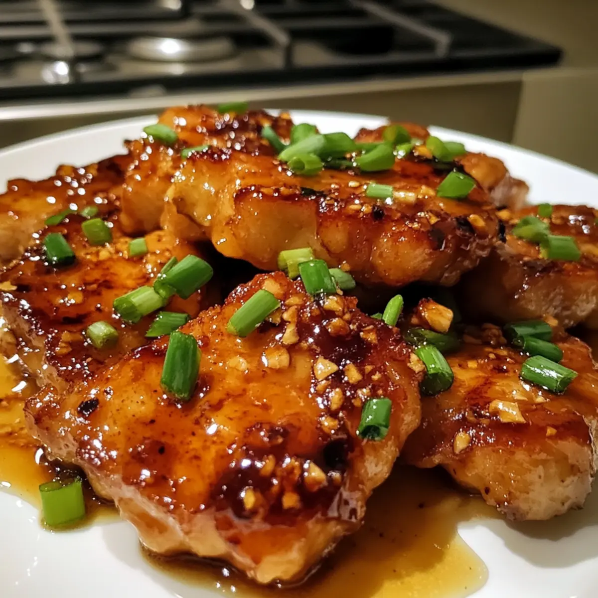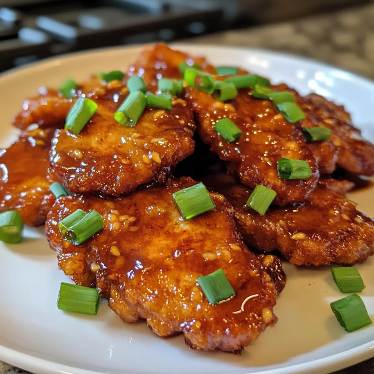 Every time I hear the sizzle of pork hitting a hot pan, a wave of excitement washes over me. This Crispy Honey Garlic Pork Chops recipe quickly became a go-to in my kitchen—not just for its mouthwatering flavor but also for its simplicity. With common pantry staples, you can whip up this gluten-free adaptable dish in no time, making it ideal for busy weeknights. The combination of a crunchy exterior and a sticky, sweet garlic sauce captures that authentic Asian flavor you crave, all without stepping foot in a restaurant. Plus, it’s bound to impress your loved ones or friends, who’ll be asking for seconds in no time. Ready to discover just how easy it is to recreate this delightful dish at home? Let’s dive in! Why Are These Pork Chops Amazing? Simplicity at its Best: You’ll love how quick and easy this recipe is, making gourmet flavors accessible even on the busiest nights. Gluten-Free Friendly: With minimal substitutions, this dish is perfect for those on a gluten-free diet. Perfect for Sharing: Impress your friends and family with a delectable meal that’s sure to become a favorite at gatherings! Incredible Taste: The sweet and savory honey garlic sauce creates a lip-smacking sensation that’s downright addictive. Versatile Options: Feeling adventurous? Try adding Sriracha for a spicy twist or swap in chicken for another delicious variation! This is the ideal recipe to satisfy your cravings for homemade Asian cuisine—all in under 30 minutes! Want even more flavor inspiration? Check out my Cheesy Garlic Butter for another delightful treat. Honey Garlic Pork Chops Ingredients For the Pork Chops • Bone-in Thin Cut Pork Chops – Select thin cuts for optimal crispiness and flavor. • Salt – Adjust the quantity based on your preference for seasoning. For the Marinade • Garlic Powder – Enhances the marinade; fresh garlic can be substituted. • Shaoxing Wine (or Dry Sherry) – Adds depth; replace with soy sauce for a non-alcoholic version. • Sesame Oil – Infuses a nutty flavor; use neutral oil if allergies exist. • Honey – Sweetens the sauce with a glossy finish; maple syrup makes a nice alternative. • Light Soy Sauce – Brings saltiness; substitute tamari for a gluten-free option. • Lemon Juice (or Rice Vinegar) – Brightens up the flavors; use what you have on hand. For the Coating • Cornstarch – Provides a crispy coating and is gluten-free. • All-Purpose Flour – Helps with browning; replace with more cornstarch for gluten-free. For Frying • Vegetable Oil – Choose a neutral oil with a high smoke point for frying. For the Sauce • Garlic (minced) – Fresh garlic adds strong aroma and flavor. For Garnishing • Green Onions / Fried Garlic – Optional garnishes that enhance flavor and presentation. Enjoy these Honey Garlic Pork Chops that are bound to impress! Step‑by‑Step Instructions for Honey Garlic Pork Chops Step 1: Prepare the Pork Begin by gently pounding the bone-in thin cut pork chops to about 1/4″ thickness, ensuring even cooking. Then, slice them into bite-sized pieces for maximum crispiness. This preparation step is essential to guarantee that your Honey Garlic Pork Chops will fry up beautifully. Step 2: Marinate the Pork In a bowl, combine garlic powder, Shaoxing wine, sesame oil, honey, light soy sauce, and lemon juice to create a flavorful marinade. Massage this mixture thoroughly into the pork pieces, ensuring they are well-coated. Let the pork marinate for at least 15-20 minutes at room temperature; this enhances flavors and helps tenderize the meat. Step 3: Heat the Oil While the pork is marinating, pour vegetable oil into a heavy skillet, filling it to a depth of about 1 inch. Preheat the oil over medium-high heat until it reaches approximately 350°F (176°C). A deep-frying thermometer can help you monitor the temperature accurately; this step is crucial for achieving perfectly crispy Honey Garlic Pork Chops. Step 4: Coat the Pork In a shallow dish, mix equal parts cornstarch and all-purpose flour. Take your marinated pork pieces from the bowl and dredge them in this mixture, ensuring each piece is evenly coated. The coating will create a deliciously crispy exterior when frying, enhancing the overall texture and flavor profile of the dish. Step 5: Fry the Pork Once the oil is hot, carefully add the coated pork pieces in batches, ensuring not to overcrowd the skillet. Fry for 1-2 minutes on each side, or until they are golden brown and crispy. Use a slotted spoon to remove the pork and place it on a paper towel-lined plate to drain excess oil. Step 6: Prepare the Sauce In the same skillet, lower the heat slightly and add minced garlic, cooking it until fragrant and just starting to brown. Stir in any remaining marinade while scraping the bits from the bottom of the skillet. Cook the sauce for a few minutes until it becomes syrupy, which will coat your Honey Garlic Pork Chops evenly. Step 7: Combine and Serve Add the fried pork back into the skillet with the sauce, tossing gently until each piece is fully coated. This final step ensures the pork chops absorb all the sweet and savory flavors of the sauce. Serve immediately, garnished with sliced green onions or fried garlic for an appealing presentation! What to Serve with Honey Garlic Pork Chops Create a beautiful meal pairing that elevates your dining experience to new heights. Steamed Jasmine Rice: This fluffy, aromatic rice complements the sweet and savory flavors of the pork, soaking up the sticky sauce beautifully. A scoop of this rice serves as the perfect canvas for your Honey Garlic Pork Chops. Blanched Broccoli: The bright green color and crunchy texture provide a fresh contrast to the rich pork. Simply blanching the broccoli keeps it vibrant and crisp, making it a nourishing addition to your plate. Sesame Noodles: Serve your pork chops with a side of tangy sesame noodles that enhance the Asian flavor profile. Their nutty taste and satisfying chew create an i