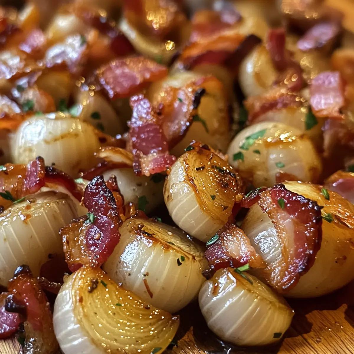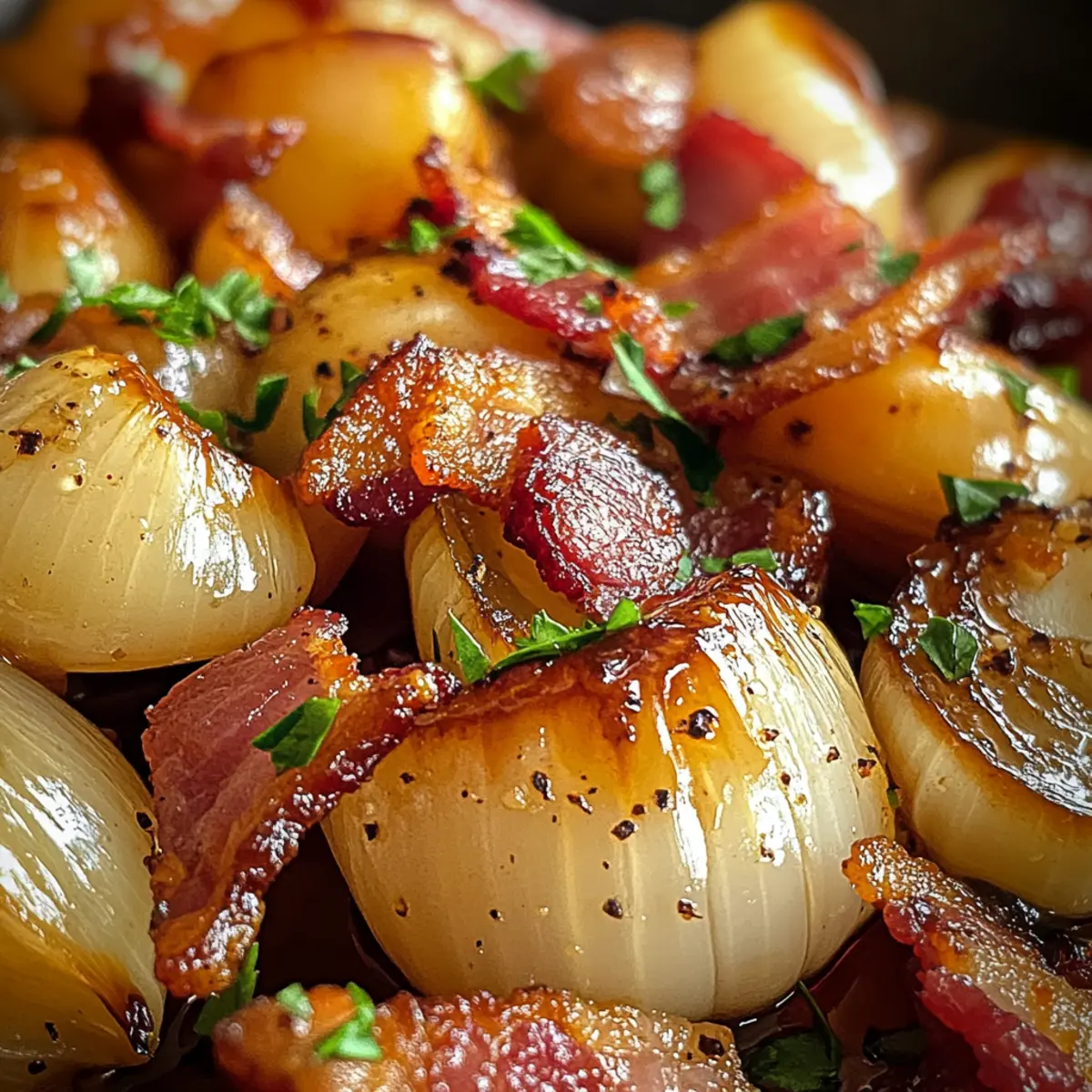 As the sweet aroma of sizzling bacon fills the air, I find myself standing at the stove, anticipation bubbling. Nothing quite compares to a comforting side dish that turns an ordinary meal into something extraordinary. Enter my Honey Glazed Shallots with Crispy Bacon—a harmonious creation that brings together tender shallots coated in a sticky honey glaze paired with the delightful crunch of smoky bacon. This easy side dish not only elevates your dinner table but also makes for a low-fuss recipe that impresses guests and family alike. Plus, with the option to swap out bacon for a vegetarian alternative or use olive oil for a dairy-free twist, it caters to everyone at your table. Ready to discover the secrets behind this delicious dish? Let’s dive in! Why Are You Going to Love This? Simplicity at Its Best: This recipe is incredibly easy, making it perfect even for novice cooks. With just a handful of ingredients, you’ll whip up a dish that looks and tastes gourmet. Versatile and Adaptable: Want a vegetarian version? Simply swap bacon for smoked coconut flakes! Looking for a vegan option? Maple syrup will do the trick. Flavor Explosion: The sweet honey glaze enveloping the caramelized shallots harmonizes beautifully with the crispy, savory bacon, creating a delightful taste experience that will have everyone coming back for seconds. Ideal for Any Occasion: Whether it’s a cozy family dinner or an elegant gathering, these Honey Glazed Shallots with Crispy Bacon are sure to impress. Pair them with roasted meats or enjoy them on their own. Prepare to Wow Your Guests: The enticing aroma and stunning presentation will have your dinner table buzzing with excitement, making this a favorite at gatherings. Honey Glazed Shallots Ingredients • Discover what makes these Honey-Glazed Shallots with Crispy Bacon irresistible! For the Shallots Shallots – These small, sweet onions create a tender texture and rich flavor in your dish. Butter (or Olive Oil) – Choose olive oil for a dairy-free alternative that maintains richness. For the Glaze Honey – This key ingredient adds sweetness to balance the savory flavors beautifully; maple syrup makes a great vegan substitute. Balsamic Vinegar – A splash of this tangy ingredient enriches the glaze with depth and complexity. Worcestershire Sauce – Use this for an umami kick; soy sauce or tamari works well as a substitute if needed. For the Bacon Bacon – Thick-cut bacon gives the perfect crunch and savory taste, making this dish comforting and satisfying. Optional Enhancements Fresh Herbs – Garnish with thyme or parsley to elevate flavors and add a lovely touch of color. Step‑by‑Step Instructions for Honey-Glazed Shallots with Crispy Bacon Step 1: Prep Ingredients Begin by peeling the shallots and trimming their ends, ensuring a neat presentation. Next, chop the thick-cut bacon into bite-sized pieces. In a small bowl, measure out the honey, balsamic vinegar, and Worcestershire sauce, setting everything within reach. This preparation sets the stage for your Honey-Glazed Shallots with Crispy Bacon, ensuring a smooth cooking process. Step 2: Cook Bacon Heat a medium pan over medium heat. Once hot, add the chopped bacon, cooking it until crispy and golden brown, typically around 5-7 minutes. Stir occasionally to promote even cooking. Once done, carefully remove the bacon pieces and set them aside on a paper towel-lined plate. Keep the flavorful drippings in the pan, as they’ll enhance the shallots’ flavor. Step 3: Cook Shallots In the same pan with the bacon drippings, add either butter or olive oil to enrich the dish. Toss in the prepared shallots, stirring gently to coat. Cook over medium-low heat for about 8-10 minutes, allowing the shallots to brown and soften without burning. Watch for a golden hue that indicates perfect caramelization for your Honey-Glazed Shallots. Step 4: Add Glaze Once the shallots are tender and golden, pour in the honey, Worcestershire sauce, and balsamic vinegar. Stir well to combine. Continue cooking on medium heat until the glaze starts to bubble and thickens slightly, about 3-5 minutes. The fragrant aroma will start to fill the kitchen, showcasing the beautiful harmony of flavors in this dish. Step 5: Combine Finally, return the crispy bacon to the pan, mixing it thoroughly with the glazed shallots. Allow everything to cook together for an additional minute, letting the bacon infuse its savory goodness into the glaze. The combination will create a tantalizing mixture, beautifully embodying the essence of Honey-Glazed Shallots with Crispy Bacon. Step 6: Season Once fully combined, remove the pan from heat and let it rest for a few minutes. Taste the dish and adjust the seasoning with salt and pepper as desired. This resting period allows the flavors to meld, ensuring that every bite of your Honey-Glazed Shallots with Crispy Bacon is perfectly balanced and ready to impress your family or guests. Storage Tips for Honey Glazed Shallots Fridge: Refrigerate your Honey Glazed Shallots in an airtight container for up to 3 days to maintain freshness and flavor. Reheating: Reheat gently on the stovetop over low heat, stirring occasionally to ensure even warming and preserve texture. Freezer: Avoid freezing; shallots can become mushy upon thawing, losing the delightful texture that makes this dish special. Serving Promptly: For the best experience, serve your Honey Glazed Shallots right after cooking to enjoy the rich flavors and perfect texture. Make Ahead Options These Honey Glazed Shallots with Crispy Bacon are a fantastic choice for meal prep! You can prepare the shallots and bacon up to 24 hours in advance by slicing the shallots and chopping the bacon, then refrigerating them separately in airtight containers. For the glaze, combine honey, balsamic vinegar, and Worcestershire sauce in a jar, storing it in the fridge as well. On the day you’re ready to serve, simply cook the bacon until crispy, sauté the shallot