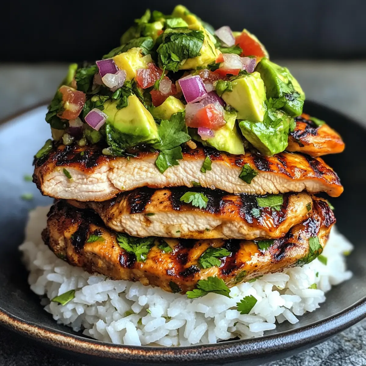 As I stood in my kitchen, the sun dipping low outside, I marinated chicken in a zesty blend of honey and lime, igniting my taste buds with anticipation. The Honey Lime Chicken & Avocado Rice Stack is a celebration of vibrant flavors and comforting textures that comes together in about an hour, perfect for those bustling weeknights. Picture tender grilled chicken resting on a fluffy bed of jasmine rice, topped with creamy avocado and a sprinkle of fresh cilantro—this dish is not just easy to prepare; it’s a crowd-pleaser that’ll make everyone rave about dinner. Plus, it’s highly customizable—whether you’re swapping rice types or choosing a vegetarian option, this recipe adapts beautifully to suit your needs. Are you ready to dive into this simple, yet delightful culinary adventure? Why is this recipe a must-try? Deliciously Easy: The Honey Lime Chicken & Avocado Rice Stack is designed for everyone, making it perfect for both beginner cooks and seasoned chefs alike. Zesty Vibrance: The bright combination of honey and lime brings a refreshing twist to your dinner table. Customizable Delight: With ingredient swaps, like using basmati rice or grilled portobello mushrooms, you can tailor this dish to your taste. Quick Prep Time: In just about an hour, you can create a meal that tastes gourmet without spending all day in the kitchen. Flavorful Layers: With tender grilled chicken, fluffy jasmine rice, and creamy avocado, every bite bursts with varied textures and flavors, ensuring your family will keep asking for seconds. For a delightful side, consider pairing it with Cheesy Garlic Chicken Wraps for a fulfilling dinner experience! Honey Lime Chicken & Avocado Rice Stack Ingredients For the Chicken Marinade Boneless, Skinless Chicken Breasts – This is your main protein source; substitute with tofu for a vegetarian alternative. Honey – Adds a natural sweetness and creates a glossy marinade; maple syrup can be used as a replacement. Lime Juice – Provides a tangy twist; freshly squeezed lime juice is recommended for the best flavor. Lime Zest – Intensifies the lime flavor; can be omitted if you don’t have any on hand. Minced Garlic – Adds savory depth and warmth; fresh garlic is ideal for the best results. Ground Cumin – Introduces a warm, earthy flavor; consider chili powder as a different spice option. Salt and Pepper – Basic seasoning; adjust according to taste for optimal flavor. For the Rice Jasmine Rice – This serves as the aromatic base of the dish; feel free to swap with basmati or brown rice, adjusting the cooking time as needed. Chicken Broth – Used to cook the rice, enhancing its flavor; vegetable broth can be used for a lighter alternative. For the Toppings Avocado (diced) – Adds creaminess; make sure it’s ripe for the best texture. Red Onion (finely chopped) – Offers a crisp bite; green onions can be used as a milder substitute. Cilantro (chopped) – Adds freshness and vibrant color; parsley can be an alternative herb. Olive Oil – Binds the avocado mixture, adding richness; substitutes like avocado oil work as well. Lime Wedges – For serving, providing additional acidity; lemon wedges can be used if preferred. Each ingredient plays a crucial role in making the Honey Lime Chicken & Avocado Rice Stack a wholesome and delightful dish. So gather your ingredients, and let’s create a meal that will impress your loved ones! Step‑by‑Step Instructions for Honey Lime Chicken & Avocado Rice Stack Step 1: Prepare the Marinade In a medium bowl, combine honey, lime juice, lime zest, minced garlic, ground cumin, salt, and pepper until well mixed. This zesty marinade will infuse your chicken with flavor. Ensure all ingredients are blended together smoothly, creating a glossy, golden mixture that glistens under the light. Step 2: Marinate the Chicken Place the boneless, skinless chicken breasts into the bowl, ensuring they are fully coated with the marinade. Cover the bowl with plastic wrap or a lid and refrigerate for at least 30 minutes, allowing the flavors to soak in. If time permits, let the chicken marinate for up to 2 hours for an even richer taste. Step 3: Cook the Jasmine Rice Rinse 1 cup of jasmine rice under cold water until the water runs clear, removing excess starch. In a medium saucepan, bring 2 cups of chicken broth to a boil, then add the rinsed rice. Reduce the heat to low, cover the pot, and let it simmer for about 15 minutes, or until the rice is tender and the liquid has been absorbed. Step 4: Preheat the Grill While the rice is cooking, preheat your grill to medium-high heat, around 400°F (200°C). This will ensure a good sear on the chicken. Once heated, remove the chicken breasts from the marinade and let any excess drip off. The marinade’s glistening surface will caramelize beautifully on the grill. Step 5: Grill the Chicken Place the marinated chicken breasts on the preheated grill. Grill the chicken for 6-7 minutes on each side, or until their internal temperature reaches 165°F (75°C). Keep an eye on them, as the honey can cause them to char; a nice, golden color is your cue that they’re ready to be removed. Step 6: Let Chicken Rest Once fully cooked, transfer the grilled chicken to a cutting board and let it rest for 5 minutes. This will allow the juices to redistribute, ensuring each slice is tender and juicy. The aroma should be enticing, hinting at the flavors that await in your Honey Lime Chicken & Avocado Rice Stack. Step 7: Prepare the Avocado Mixture While the chicken rests, dice a ripe avocado and place it in a bowl. Add finely chopped red onion, fresh cilantro, and a drizzle of olive oil. Gently mix the ingredients together until they are well-coated; the creamy avocado will beautifully complement the other flavors in the dish. Step 8: Assemble the Stack In a serving bowl, layer the fluffy jasmine rice as a base. On top of the rice, arrange the sliced chicken in a fan shape for a beautiful presentation. Spoon t
