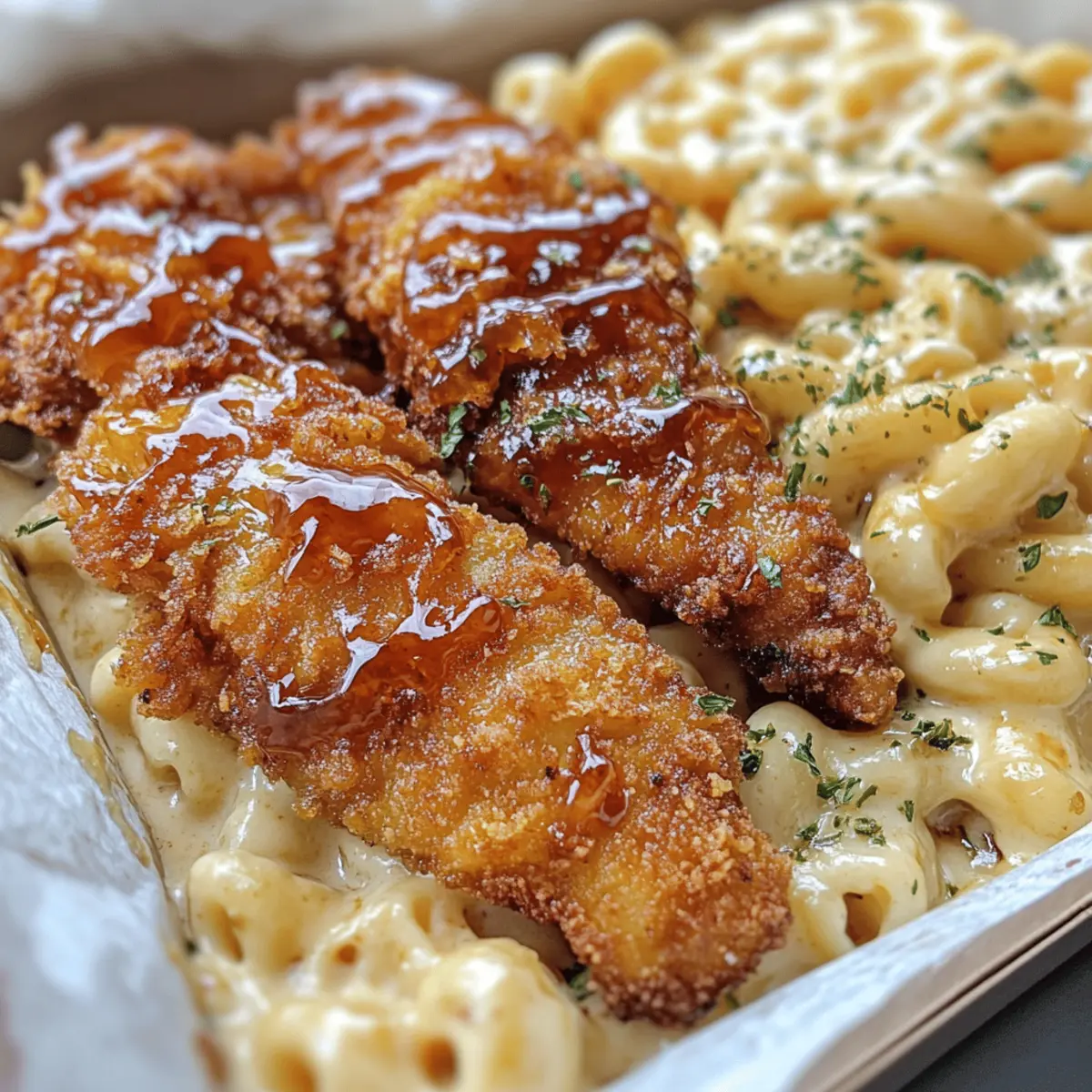 Hot Honey Chicken Tenders with Baked Mac and Cheese Bliss