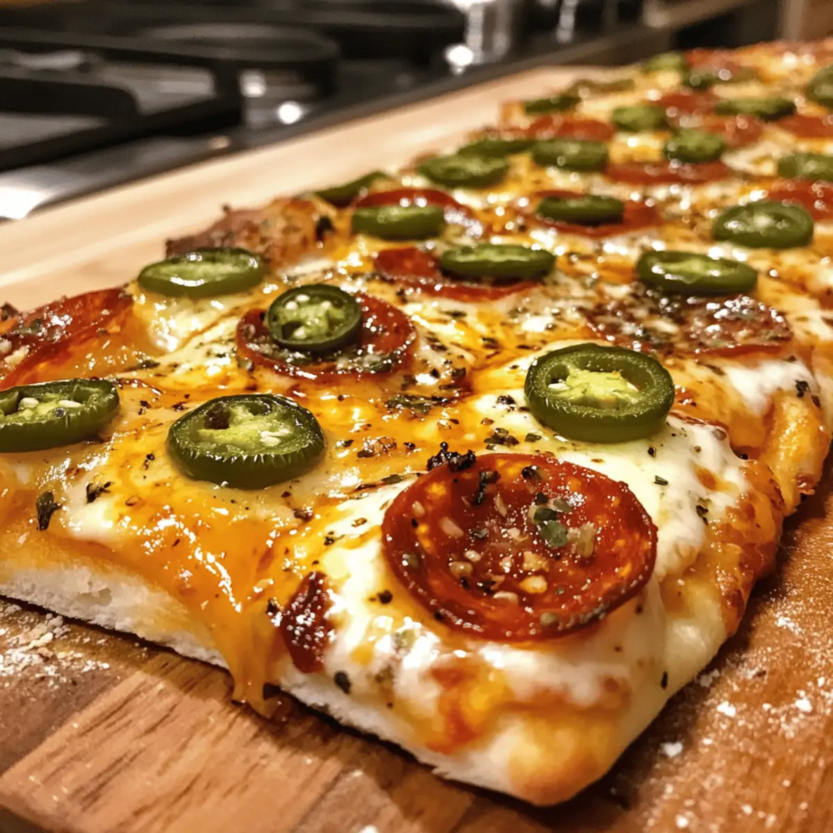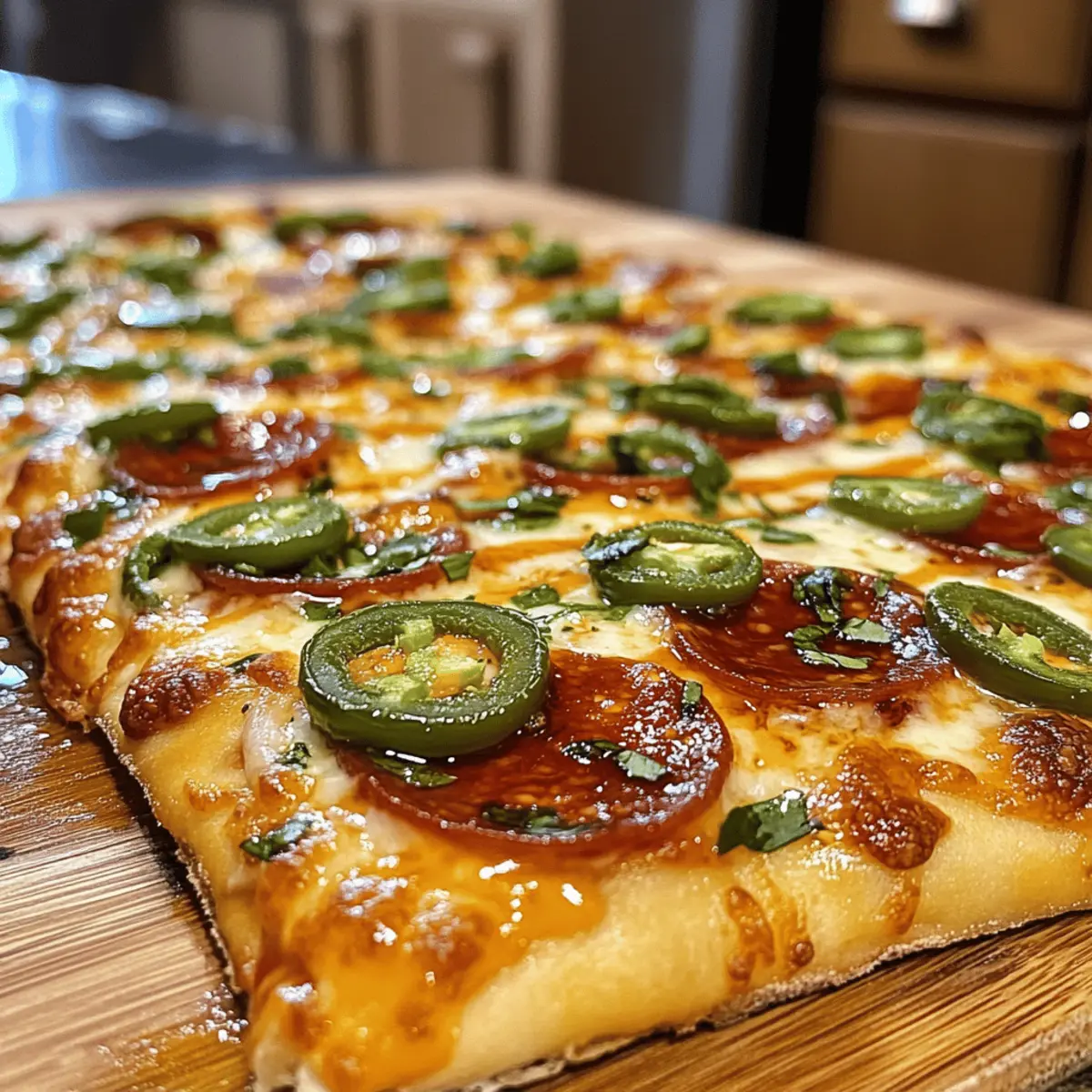As a passionate home chef, I know how swiftly weeknight dinners can turn into a mini crisis—what to whip up that’s both satisfying and exciting? Enter my Sweet and Spicy Hot Honey Flatbread Pizza! This dish is a delightful twist on the familiar, featuring a crispy base drizzled with a warm, tangy blend of hot honey that elevates the classic pizza experience. Not only is it quick to prepare, which makes it perfect for busy evenings, but it’s also fully customizable. You can mix and match toppings to suit your cravings or dietary needs, ensuring every bite is just the way you like it. Ready to spice up your dinner routine? Let’s dive in and bring some creativity back into your kitchen! Why is Hot Honey Flatbread Pizza a Must-Try? Irresistible Flavor Fusion: This pizza brilliantly combines the sweetness of honey with fiery hot sauce, creating a mouthwatering experience you won’t forget. Customizable Delights: Tailor your toppings to suit every taste, whether you prefer classic pepperoni or adventurous roasted veggies—every creation is a winner! Quick Prep: Perfect for busy weeknights, the entire dish comes together in just 20 minutes, ensuring you spend less time in the kitchen and more at the table. Crowd-Pleasing Appeal: It’s a great choice for family dinners or hosting friends, where everyone can enjoy their unique slice of deliciousness. Add a side of garlic knots for a complete meal! Gourmet at Home: With its crispy flatbread base and melted cheese, this dish gives you that gourmet pizza feel without the wait or cost. Enjoy the blend of sweet heat tonight! Hot Honey Flatbread Pizza Ingredients Get ready to create a delicious masterpiece in your kitchen! For the Base Flatbread – This is your canvas; choose store-bought for convenience or whip up a homemade version if you’re feeling adventurous. Pizza Sauce – Adds moisture and flavor; feel free to use your favorite store-bought sauce or make a quick homemade one. For the Cheese Mozzarella Cheese – Provides that gooey goodness; using fresh mozzarella will elevate your pizza to the next level. For the Toppings Pepperoni – A classic choice that adds a savory kick; or mix it up with other proteins like grilled chicken. Jalapeños – For a spicy touch; adjust the amount based on your heat tolerance. Olives – Adds a nice briny flavor; you can use black or green depending on your preference. For the Sweet Heat Hot Honey – The star that brings your Hot Honey Flatbread Pizza to life; combine honey with hot sauce and chili flakes for that sweet and spicy profile. Olive Oil – A drizzle over the flatbread helps the honey pour out smoothly without sticking. Now you’re all set to explore this wholesome, quick weeknight dinner that’s bursting with flavors! Happy cooking! Step‑by‑Step Instructions for Hot Honey Flatbread Pizza Step 1: Preheat the Oven Start by preheating your oven to 450°F (230°C) and place an oven tray inside. This will ensure that your Hot Honey Flatbread Pizza gets a wonderfully crispy base. Allow at least 10 minutes for the oven to reach the desired temperature, ensuring the tray gets nice and hot. Step 2: Prepare the Hot Honey In a small bowl, mix together your hot honey by combining honey, hot sauce, and a sprinkle of chili flakes. To enhance the flavors, warm this mixture slightly in the microwave for about 15-20 seconds or on low heat on the stove, then let it cool before using. This delightful drizzle will elevate your pizza’s flavor profile beautifully. Step 3: Assemble Your Flatbread Pizza Take your flatbread and spread a thin layer of pizza sauce over the top, covering it evenly. Next, generously sprinkle shredded mozzarella cheese across the surface, followed by your choice of toppings like pepperoni, jalapeños, or olives. Be creative; this is your personalized Hot Honey Flatbread Pizza! Step 4: Pre-Bake the Flatbread To prevent a soggy crust, place the topped flatbread on the hot oven tray and pre-bake it for 2-3 minutes. Keep an eye on it—you’re looking for the edges to just start crisping up, which will create a sturdy base for all that deliciousness to come. Step 5: Bake the Assembled Pizza Now it’s time to fully bake your Hot Honey Flatbread Pizza! Return the tray to the oven and bake for 8-10 minutes. You’ll know it’s ready when the cheese is bubbly and the edges of the flatbread are a delightful golden brown. This is where all the flavors truly come together. Step 6: Drizzle with Hot Honey Once baked, carefully remove your pizza from the oven. Immediately drizzle the prepared hot honey over the top, allowing its sweet heat to melt into the cheese and toppings. The moment you add this finishing touch, the pizza transforms into a mouthwatering masterpiece. Step 7: Cool and Slice Allow your Hot Honey Flatbread Pizza to cool for about one minute before slicing. This short wait allows the cheese to set slightly, making it easier to cut. Use a sharp knife or pizza cutter, and get ready to savor the sweet and spicy flavors tucked into each slice! Expert Tips for Hot Honey Flatbread Pizza Pre-Bake for Crispness: Ensure you pre-bake the flatbread for a couple of minutes to avoid a soggy crust; this sets a perfect foundation for your toppings. Control the Heat: Adjust the spiciness of your hot honey by varying the amount of chili flakes and hot sauce—taste as you go to find your ideal balance! Moderate Topping Layers: Avoid piling on too many toppings, as this can lead to uneven cooking and a heavy center; less is more for perfect results. Fresh Cheese is Key: For that gooey, melty texture, use fresh mozzarella rather than pre-shredded cheese; it makes a world of difference in flavor and quality. Watch the Baking Time: Keep an eye on the oven during the last few minutes of baking; a golden edge is the indicator of a perfectly baked Hot Honey Flatbread Pizza. Hot Honey Flatbread Pizza Variations Feel free to get creative and make this dish your own with these delightful sw