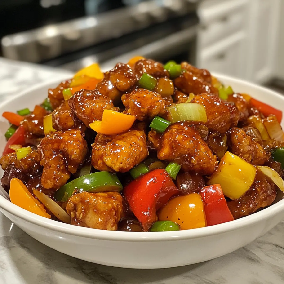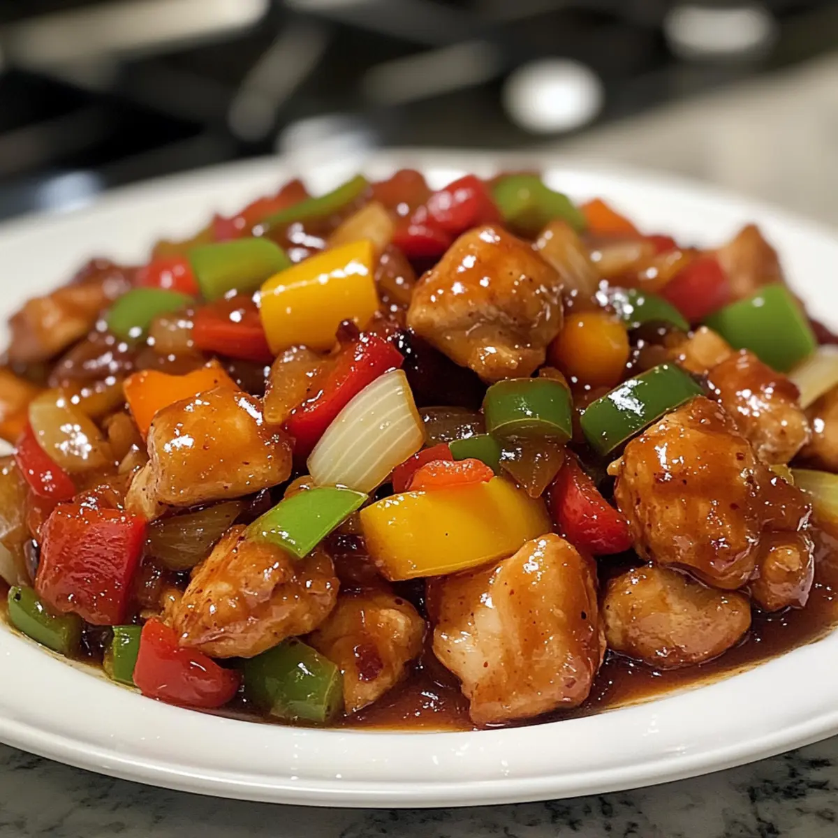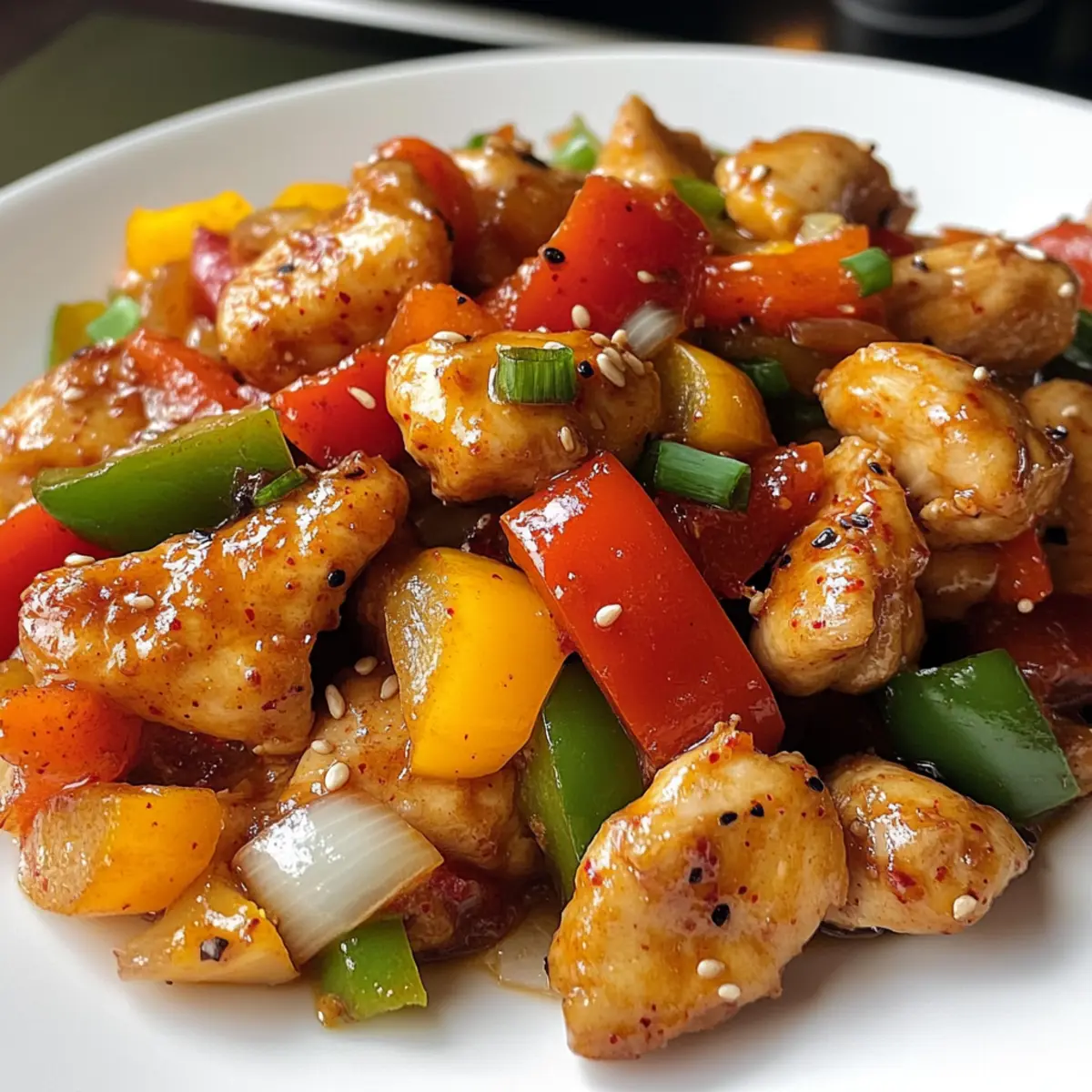 As I stood in my kitchen, the vibrant colors of fresh vegetables caught my eye, whispering promises of a delicious meal. It’s incredible how simple ingredients can transform into a feast in just 30 minutes! This Korean Spicy Chicken Stir Fry brings together tender, juicy chicken paired with an explosion of colorful veggies, all dancing in a spicy-sweet sauce that will have your taste buds singing. Not only is this dish gluten-free, making it suitable for various diets, but it’s also a quick dinner solution that saves you from another round of fast food. With a delightful kick, this stir fry is sure to become your go-to recipe for busy weeknights. Are you ready to dive into a bowl of this effortless culinary delight? Why is this stir fry a must-try? Simplicity at its Core: You’ll love how easy it is to whip up this dish in just 30 minutes, even on the busiest nights. Flavor Explosion: The combination of spicy gochujang and sweet honey creates a robust sauce that perfectly complements tender chicken and crisp vegetables. Versatile Ingredients: Feel free to customize with whatever veggies you have on hand – think broccoli or snap peas for added nutrition. Healthy Option: This gluten-free recipe is not only scrumptious but also light, clocking in at around 350 calories per serving, making it a guilt-free dinner choice. Crowd-Pleaser: Whether cooking for family or friends, this flavorful dish is sure to impress and satisfy, leaving everyone asking for seconds. If you’re loving the idea of quick meals, you might also enjoy my Chicken Taquitos Spicy or Turkey Teriyaki Stir for variety! Korean Spicy Chicken Stir Fry Ingredients For the Stir Fry Vegetable Oil – Essential for cooking; enhances flavor and prevents sticking. Possible substitution: avocado oil. Chicken Breast (1 pound) – Main protein; ensure it’s sliced for even and quick cooking. Garlic (2 cloves, minced) – Adds depth and aroma; can substitute with garlic powder (1/2 teaspoon). Ginger (1 tablespoon, minced) – Provides warmth and spiciness; can substitute with ground ginger (1 teaspoon). Bell Pepper (sliced) – Adds color and crunch; substitute with any stir-fry friendly vegetable like zucchini or snap peas. Onion (sliced) – Contributes sweetness and texture; substitute with shallots for a milder flavor. Gochujang (3 tablespoons) – Main source of spiciness; substitute with chili paste mixed with a bit of sugar if unavailable. Soy Sauce (2 tablespoons) – Adds saltiness and depth; for gluten-free, use tamari or coconut aminos. Sesame Oil (1 tablespoon) – Imparts nutty flavor; optional but recommended for authenticity. Honey (1 tablespoon) – Sweetens and balances the spice; substitute with maple syrup for a vegan option. Sesame Seeds – For garnish; adds crunch and presentation. Optional but visually appealing. Green Onions (chopped) – Fresh garnish; can substitute with chives or omit. Step‑by‑Step Instructions for Korean Spicy Chicken Stir Fry Step 1: Heat the Oil Begin by heating 2 tablespoons of vegetable oil in a large skillet or wok over medium-high heat. Wait until the oil shimmers, which should take about 1–2 minutes. This shimmering indicates that the oil is hot enough to prevent the chicken from sticking. Step 2: Cook the Chicken Add 1 pound of sliced chicken breast to the skillet. Spread the pieces out to ensure they cook evenly, allowing them to sear for 5–7 minutes. Stir occasionally until the chicken is browned and completely cooked through, with no pink remaining in the center. Step 3: Add Aromatics Once the chicken is cooked, stir in 2 minced garlic cloves and 1 tablespoon of minced ginger. Sauté these aromatics for about 1 minute, or until they become fragrant and golden, infusing the chicken with a rich, warm aroma that signals the depth of flavor to come. Step 4: Stir-Fry the Vegetables Next, toss in the sliced bell pepper and onion, stirring well to combine. Cook these vibrant vegetables for 3–4 minutes, ensuring they remain tender yet crisp. Their bright colors and freshness will add a delightful crunch to the Korean Spicy Chicken Stir Fry. Step 5: Prepare the Sauce In a small bowl, whisk together 3 tablespoons of gochujang, 2 tablespoons of soy sauce, 1 tablespoon of sesame oil, and 1 tablespoon of honey until smooth. This delicious sauce will add a perfect balance of spice and sweetness to your stir fry. Step 6: Combine & Cook the Sauce Pour the sauce mixture over the chicken and vegetables in the skillet. Stir everything together thoroughly to coat the chicken and veggies in that glossy, flavorful sauce. Cook for an additional 2–3 minutes, allowing the sauce to thicken slightly and enhance the overall flavor. Step 7: Serve with Garnish Remove the skillet from heat and garnish your Korean Spicy Chicken Stir Fry with sesame seeds and chopped green onions for an extra touch of flavor and presentation. This dish is delightful served hot over steamed rice or noodles, ready to enjoy! Tips for the Best Korean Spicy Chicken Stir Fry Prep Ingredients First: Ensure all your ingredients are prepped and ready before you start cooking. Stir-frying is fast-paced, and having everything handy will prevent burnt bits and frustration. Avoid Overcrowding: Don’t overcrowd the skillet with chicken. This can cause steaming instead of browning. Work in batches if necessary for that perfect sear when you make your Korean Spicy Chicken Stir Fry. Taste and Adjust: The balance of spice and sweetness is key. Taste your sauce mixture and adjust gochujang or honey levels based on your preference before combining with the chicken. Fresh Veggies: Use fresh, crisp vegetables to enhance the texture of your dish. Freezing can change the consistency, so opt for fresh when available for your Korean Spicy Chicken Stir Fry. Rest and Serve: Allow the dish to cool for a minute before serving to let the flavors meld. Garnishing with sesame seeds and green onions right before serving adds appeal and fresh fl