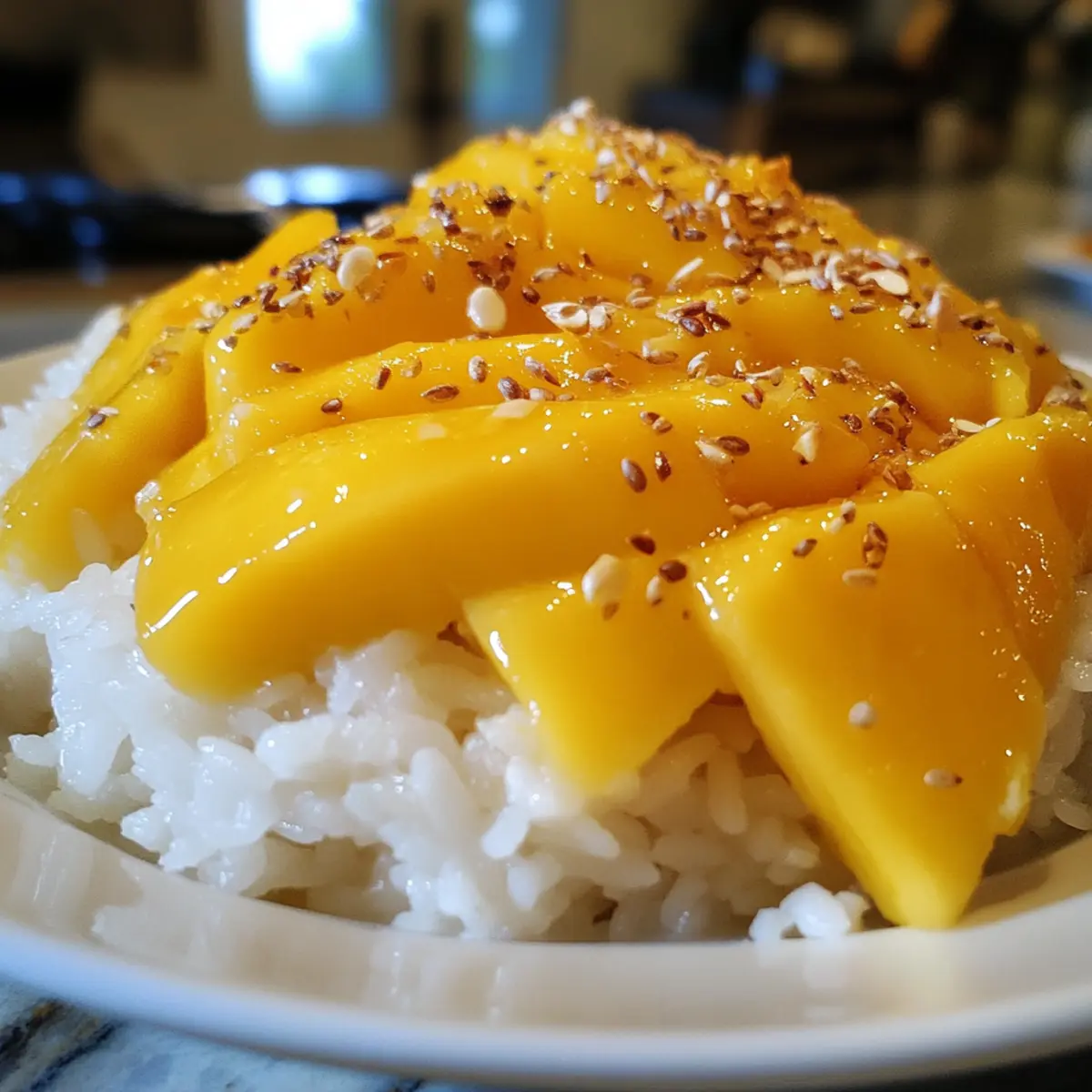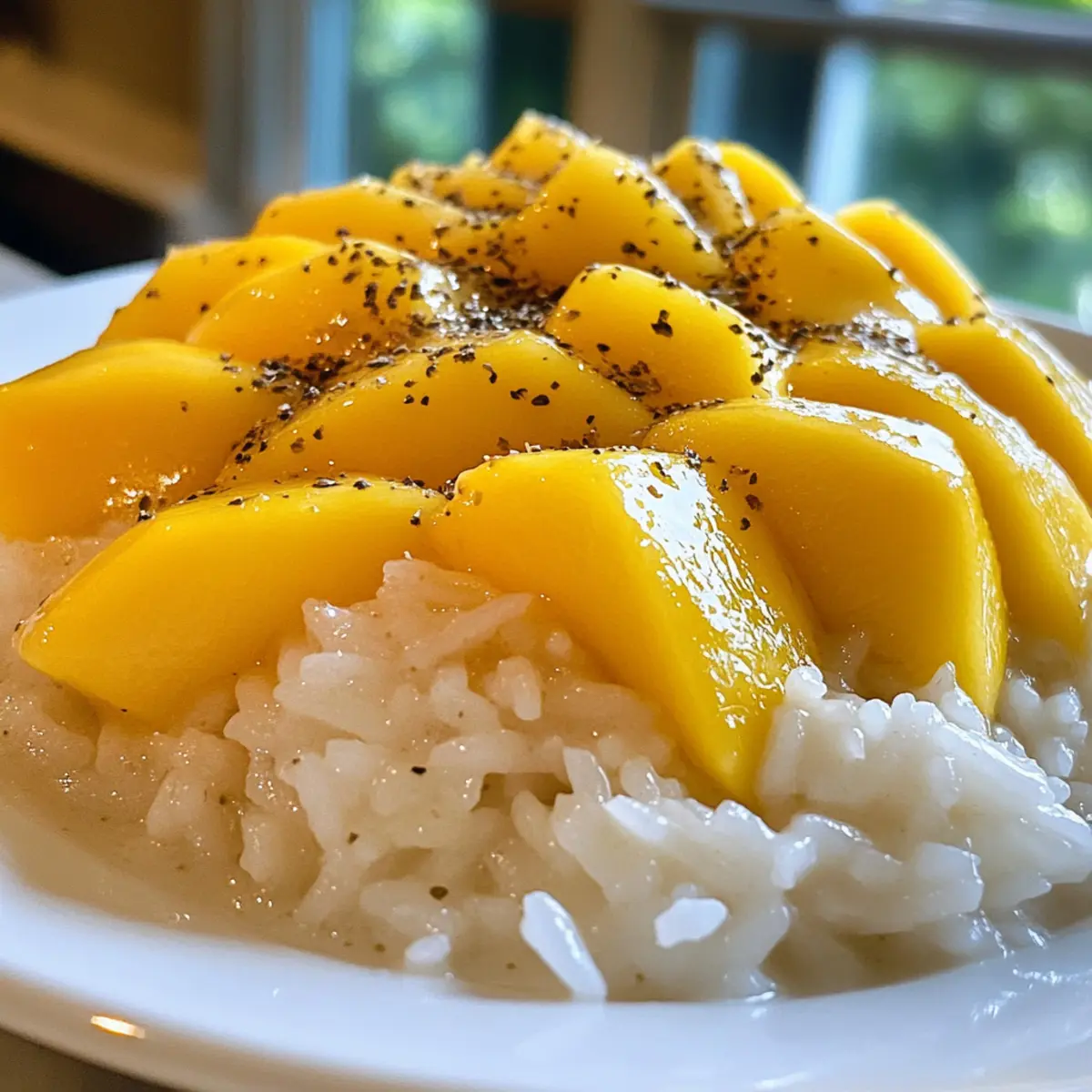 As I stood in the kitchen, a burst of sweetness filled the air when I sliced into the perfectly ripe mangoes. This moment brought back memories of warm, sunny days spent at bustling Thai markets, where the delightful aroma of freshly made Mango Sticky Rice permeated the atmosphere. This creamy dessert takes very little time to prepare and is a wonderful way to impress friends and family while keeping things gluten-free, vegan, and vegetarian-friendly. With luscious sticky rice perfectly complemented by a rich coconut sauce, it’s a dish that transforms simple ingredients into sheer joy. Whether you’re enjoying it after a spicy meal or just craving something sweet, this recipe sets the stage for a culinary adventure. Are you ready to bring a taste of Thailand to your table? Why is Mango Sticky Rice a Must-Try? Irresistible Flavor: The pairing of sweet, ripe mangoes with creamy coconut sauce enveloping soft sticky rice creates a taste sensation you’ll crave. Quick Prep: This easy recipe can be whipped up in under an hour, making it perfect for impressing guests on short notice. Diet-Friendly: It’s a guilt-free indulgence; gluten-free, vegan, and vegetarian, so everyone can enjoy! Customizable Touch: Feel free to experiment with toppings, like toasted sesame seeds or additional sweeteners, tailoring it to your liking. Impressive Presentation: The vibrant colors of mango and the glossy coconut sauce make for a stunning dessert that’s sure to wow at any gathering. When you want another crowd-pleaser, be sure to check out my recipes for Shrimp Rice Bowls or Salmon Avocado Rice for equally delightful dishes! Mango Sticky Rice Ingredients For the Sticky Rice • Sticky Rice – The star of the dessert, providing that beloved chewy texture; black glutinous rice is an exciting alternative for a twist! • Salt – A pinch helps enhance the overall flavor of the dish. For the Coconut Sauce • Coconut Milk – This adds creaminess; opt for full-fat for richness, or fresh if you can find it! • Sugar – Sweetens the sauce; white granulated sugar is recommended, but feel free to adjust based on your taste. • Cornstarch – Use this optional ingredient to thicken your coconut sauce; just a bit will do, depending on your desired consistency. For the Topping • Mangoes – Essential for that fresh and fruity topping; ripe mangoes like Ataulfo or Tommy Atkins are best to avoid any bitterness. • Toasted Sesame Seeds – An optional but delightful garnish that adds an extra layer of flavor and texture. This Mango Sticky Rice recipe brings a taste of Thailand to your home, making dessert a true delight! Step‑by‑Step Instructions for Mango Sticky Rice Step 1: Rinse and Soak the Rice Begin by rinsing 1 cup of sticky rice under cool water until the water runs clear, removing excess starch. Then, soak the rice in enough water to cover it for at least 1 hour—up to overnight for optimal texture. This soaking step is crucial for achieving that signature soft and chewy consistency in your Mango Sticky Rice. Step 2: Prepare the Steamer While the rice soaks, fill your steamer pot with water and bring it to a gentle boil. Place the soaked sticky rice in a heatproof bowl lined with cheesecloth or parchment paper. Once the water is boiling, carefully set the bowl in the steamer, allowing the steam to circulate. Cover with a lid and let it steam for 20-25 minutes until the rice appears soft and sticky, with no hard bits. Step 3: Make the Coconut Sauce In a saucepan over medium heat, combine 1 cup of coconut milk, 1/4 cup of sugar, and a pinch of salt. Stir the mixture gently until the sugar dissolves, being careful not to let it boil, as boiling can alter the flavor and texture. If you’re aiming for a thicker sauce, prepare a cornstarch slurry and add it to the mixture, cooking until it reaches your desired consistency. Step 4: Mix Rice with Sauce Once the sticky rice is fully cooked, transfer it to a large mixing bowl. Pour in about 1 cup of the prepared coconut sauce and gently stir to combine, ensuring that the rice absorbs the delicious creaminess. Allow the mixture to cool slightly, letting the flavors meld together in the delightful Mango Sticky Rice. Step 5: Serve and Garnish To serve, portion the sticky rice into bowls and elegantly arrange sliced ripe mangoes on top. Drizzle with extra coconut sauce for added richness, and finish with a sprinkle of toasted sesame seeds for a beautiful presentation. The vibrant colors and creamy textures will make your Mango Sticky Rice irresistible! Storage Tips for Mango Sticky Rice Room Temperature: Best enjoyed fresh, but if needed, it can sit at room temperature for up to 2 hours before it loses its appeal. Fridge: Store leftover mango sticky rice in an airtight container in the fridge for up to 3 days. Keep the sauce separate to maintain its creamy texture. Freezer: If you want to keep it longer, freeze the rice and sauce separately in airtight containers for up to 1 month. Thaw in the fridge overnight before reheating. Reheating: To reheat, gently steam the sticky rice until warmed through and pour the coconut sauce over it while reheating to revive its creamy consistency before serving. Make Ahead Options These delicious Mango Sticky Rice are perfect for busy schedules and meal prep! You can soak the sticky rice up to 24 hours in advance, ensuring the ideal texture when you’re ready to cook. Simply rinse the rice and let it soak in cold water until you’re set to steam it. Additionally, you can prepare the coconut sauce up to 3 days ahead; just refrigerate it in an airtight container to maintain its creamy consistency. When you’re ready to serve, steam the rice and warm the coconut sauce gently. This way, you’ll have a gorgeous, vibrant dessert that tastes just as delightful, saving you precious time in the kitchen! Mango Sticky Rice Variations & Substitutions Feel free to explore different twists and turns with this delightful dessert that 