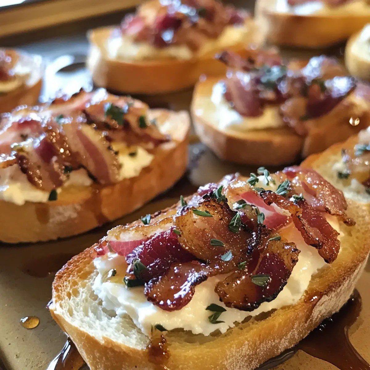 Crostini Components: For best texture, store the toasted baguette slices and bacon separately, then assemble just before serving to maintain that delightful crunch.