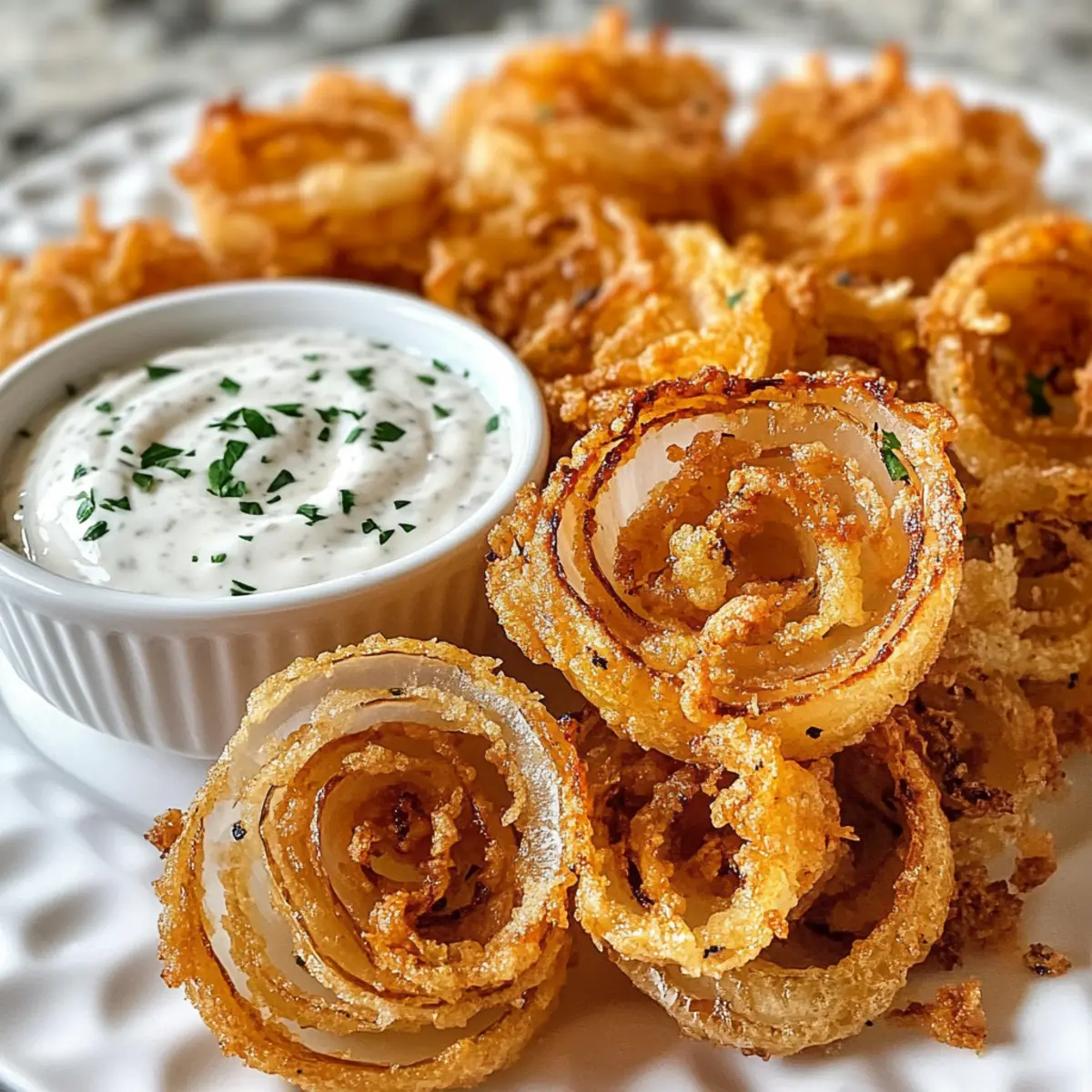 As I sliced into the sweet onions, I was struck by the anticipation of that delightful crunch. These Crispy Mini Bloomin’ Onions with Creamy Buttermilk Ranch Dip bring a twist to a beloved classic, transforming them into the perfect appetizer for your next get-together. With minimal prep and an explosion of flavor in each bite, you’ll soon discover just how easy it is to impress friends and family at your table. Not only do they make a fun party snack, but these little beauties are also gluten-free with simple adjustments, catering to various diets effortlessly. Ready to dive into the satisfying world of homemade crispy onions? Let’s get cooking! Why Make Mini Bloomin’ Onions? Unique Twist: These Crispy Mini Bloomin’ Onions are a fun and creative take on the traditional bloomin’ onion, offering a delightful petal-like shape that’s perfect for sharing. Crowd-Pleasing: Ideal for gatherings, they’re guaranteed to impress as an appetizer that everyone will love, much like our Mini Rolo Cheesecakes. Quick and Easy: With minimal prep and cooking time, you can whip these up in no time, making them a go-to choice for unexpected guests. Customizable: Adjust the spices and dipping sauces to suit your taste. Whether you prefer a classic ranch dip or something spicier, the options are endless! Gluten-Free Friendly: Easily swap ingredients to make this dish gluten-free, ensuring everyone can enjoy these tasty morsels at your table. Satisfying Crunch: Experience the incredible texture—crispy on the outside and sweet on the inside, they are every bit as good as they look! Mini Bloomin’ Onions Ingredients For the Onions • Sweet Onions (e.g., Vidalia or Walla Walla) – These onions provide a mild, tender flavor that’s essential for the best Mini Bloomin’ Onions. • Buttermilk – Acts as a soaking agent to help the coating adhere while frying; substitute with regular milk mixed with vinegar for a dairy-free option. • All-Purpose Flour – Forms the crunchy coating; swap for gluten-free flour if you’re making a gluten-free version. • Salt and Pepper – Key seasonings that enhance all the flavors of your Mini Bloomin’ Onions. For the Coating • Seasoned Breadcrumbs – Adds an extra layer of flavor and delightful texture to the crispy coating. • Paprika – Imparts a subtle smokiness; feel free to adjust the amount based on your spice preference. • Garlic Powder – Provides a savory depth; enhance or reduce to match your tastes. • Cayenne Pepper – A dash of heat to wake up your palette; modify to suit your spice tolerance. For Frying • Vegetable Oil – Needed for frying, ensuring a crispy finish; heat to 350°F (175°C) for optimal results. For the Dip • Mayonnaise – The creamy base for your ranch dip; can be adjusted for less fat by using Greek yogurt. • Dried Dill – Adds a refreshing herbal note; a must for classic ranch flavor. • Garlic Powder (for dip) – Ties the flavors together, making the dip irresistible. Get ready to create these delectable Mini Bloomin’ Onions with Creamy Buttermilk Ranch Dip that will leave everyone wanting more! Step‑by‑Step Instructions for Mini Bloomin’ Onions with Creamy Buttermilk Ranch Dip Step 1: Prep the Onions Begin by peeling the sweet onions, such as Vidalia, and slice off the top 1/4 inch to create a clean base. Next, make 8-12 downward cuts into each onion, stopping about 1/2 inch from the bottom to form petal shapes. This will give your Mini Bloomin’ Onions that delightful blooming appearance. Step 2: Soak Place the prepared onions in a large bowl and cover them with buttermilk, ensuring they are fully submerged. Let the onions soak for 10-15 minutes, which helps the coating adhere better when frying. You will notice the onions becoming slightly tender during this time, making them even more flavorful. Step 3: Prepare Coating While waiting for the onions to soak, in a separate mixing bowl, combine the all-purpose flour, seasoned breadcrumbs, paprika, garlic powder, cayenne pepper, salt, and pepper. Stir this mixture well to ensure all the spices are evenly distributed. This coating will create a crunchy exterior for your Mini Bloomin’ Onions. Step 4: Coat Onions After soaking, remove the onions from the buttermilk, allowing any excess to drip off. Carefully coat each onion in the flour mixture, pressing gently to ensure the coating sticks well. Make sure every petal is covered for that satisfying crunch when you fry the Mini Bloomin’ Onions. Step 5: Heat Oil In a deep skillet or fryer, pour vegetable oil to a depth of 2-3 inches. Heat the oil to 350°F (175°C), using a thermometer to maintain the right temperature. This ensures the coating gets crispy while keeping the onions tender inside. You can also perform a quick test by dropping in a small piece of bread; it should sizzle immediately. Step 6: Fry Once the oil is ready, gently place one coated onion at a time into the hot oil. Fry each onion for 3-4 minutes, or until they turn a beautiful golden brown. Keep an eye on them, as frying time may vary slightly based on size. Remove the Mini Bloomin’ Onions from the oil and allow them to drain on paper towels. Step 7: Make the Dip To prepare the delicious creamy buttermilk ranch dip, combine the mayonnaise, buttermilk, garlic powder, dried dill, salt, and pepper in a mixing bowl. Mix thoroughly until smooth and creamy. Adjust the seasoning according to your taste preference, ensuring the dip perfectly complements your crispy Mini Bloomin’ Onions. Step 8: Serve To present your dish, arrange the crispy Mini Bloomin’ Onions on a platter with the creamy buttermilk ranch dip served on the side. For a pop of color, consider garnishing with chopped parsley or chives. This beautiful and tasty appetizer is best served immediately while still warm for the ultimate crispy experience! How to Store and Freeze Mini Bloomin’ Onions Fridge: Store leftover crispy Mini Bloomin’ Onions in an airtig