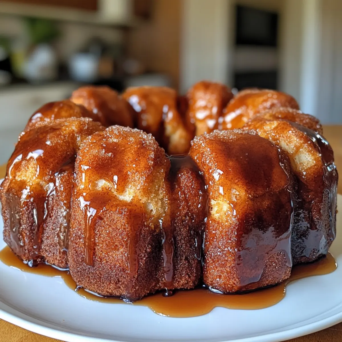 The delightful aroma of cinnamon and sugar wafting through your kitchen is truly irresistible, isn’t it? That’s exactly what you’ll experience as you create this Easy Pull-Apart Monkey Bread with Cinnamon Sugar—an utterly charming treat that’s perfect for both brunch and family gatherings. With just a few simple ingredients, like buttermilk biscuits and a luscious caramel coating, you can whip up this comforting dish in no time. It’s a glorious way to elevate your mornings and transform any occasion into a festive celebration. Plus, its shareable, pull-apart nature makes it a surefire crowd-pleaser, ensuring everyone will gather around the table with smiles. Are you ready to dive into this sweet adventure? Why is Monkey Bread So Irresistible? Aroma of cinnamon and sugar fills your kitchen, making this dish a true sensory delight. Easy to make: With just a few ingredients, you’ll have a stunning treat ready for brunch or family gatherings. Endless variations allow you to customize with seasonal spices or added chocolate chips. Shareable fun: Its pull-apart design invites everyone to dig in, creating joyful moments around the table. If you love cozy comfort food, you’ll want to check out my Gingerbread Pancakes Flapjacks for another sweet treat! Monkey Bread Ingredients • Get ready to create a cozy masterpiece with this simple ingredient list! For the Bread Buttermilk Biscuits – Use 3 cans of non-flaky buttermilk biscuits for a sturdy base or swap with cinnamon rolls for extra fluffiness. Granulated Sugar – This adds sweetness; feel free to substitute with coconut sugar for a lower glycemic option. Cinnamon – Offers that signature warm spice flavor; adjust amount according to your taste (2-3 tsp recommended). Butter – Use 1 cup (2 sticks) for richness and moisture; plant-based butter is a great dairy-free alternative. Brown Sugar – Creates the gooey caramel layer; you can choose between light or dark brown sugar based on your preference. For the Caramel Butter – Use the same butter from the bread mixture for a seamless flavor integration when melting with brown sugar. Brown Sugar – Melt this with the butter to create a luscious caramel sauce that pops your monkey bread with sweetness. Enjoy making this delectable monkey bread that is perfect for pulling apart and sharing! Step‑by‑Step Instructions for Monkey Bread Step 1: Preheat the Oven Begin by preheating your oven to 350°F (175°C). This is crucial for ensuring that your monkey bread bakes evenly and develops that perfect golden-brown color. While the oven warms up, prepare your Bundt or tube pan by greasing it generously with non-stick spray or butter, making cleanup easy later on. Step 2: Prepare the Biscuit Pieces Take the three cans of buttermilk biscuits and open them carefully, then cut each biscuit into quarters. Place these pieces in a large zip-top bag along with granulated sugar and cinnamon—this will create a delightful, sweet coating. Seal the bag and shake it vigorously until all the biscuit pieces are evenly coated in the sugary mixture, which will enhance the flavor of your monkey bread. Step 3: Assemble in the Pan Spread the coated biscuit pieces unevenly into your greased Bundt or tube pan. Make sure to distribute them so that they stack on top of each other, giving that characteristic pull-apart quality. Visualize how they will bake together; don’t worry about perfection here, as the random placements will only add to the deliciousness of your monkey bread. Step 4: Make the Caramel Sauce In a medium saucepan over medium-high heat, melt 1 cup of butter along with 1 cup of brown sugar. Stir continuously until the mixture is completely smooth and begins to bubble, about 3-5 minutes. You’ll know it’s ready when it takes on a rich caramel color. Once combined, pour this luscious caramel evenly over the biscuit pieces in the pan, ensuring every part gets some gooey goodness. Step 5: Bake the Monkey Bread Place the pan in the preheated oven and bake for 30 to 40 minutes. Keep an eye on it—you’re looking for a dark brown top that indicates the biscuits are cooked through. They should rise and fill the pan beautifully, creating that enticing pull-apart texture that makes monkey bread so irresistible. A toothpick inserted into the center should come out clean. Step 6: Cool and Serve Once baked, remove the monkey bread from the oven and let it cool in the pan for 15 to 30 minutes. This allows the caramel to set a little, making it easier to invert. When ready, carefully turn the pan upside down onto a large plate, letting the warm, gooey monkey bread tumble out. Serve it warm for the ultimate comforting treat that everyone will love! What to Serve with Easy Pull-Apart Monkey Bread? Bring warmth to your breakfast table with delightful complements that elevate your monkey bread experience. Creamy Mashed Potatoes: The buttery, creamy texture pairs wonderfully with the sweet cinnamon notes, adding a savory counterpoint to the monkey bread. Fresh Fruit Salad: A colorful medley of seasonal fruits provides a refreshing crunch that brightens your brunch spread and balances the sticky sweetness. Hot Coffee: A steaming cup of coffee not only awakens your senses but also enhances the cozy atmosphere of a leisurely morning with monkey bread. Warm Apple Cider: Infused with spices like clove and cinnamon, this drink mirrors the flavor profile of monkey bread, making every sip harmoniously delightful. Yogurt Parfait: Layered with granola and fresh berries, the tartness of yogurt cuts through the richness, creating a well-rounded breakfast experience. Chocolate-Covered Strawberries: For a treat that feels special, these sweet bites bring a playful touch to your table, perfect for sharing alongside the pull-apart monkey bread. Each pairing complements the gooey, comforting nature of monkey bread while introducing exciting textures and flavors to your meal. Enjoy creating a memorable feast! Expert 