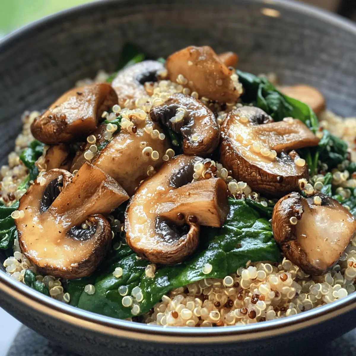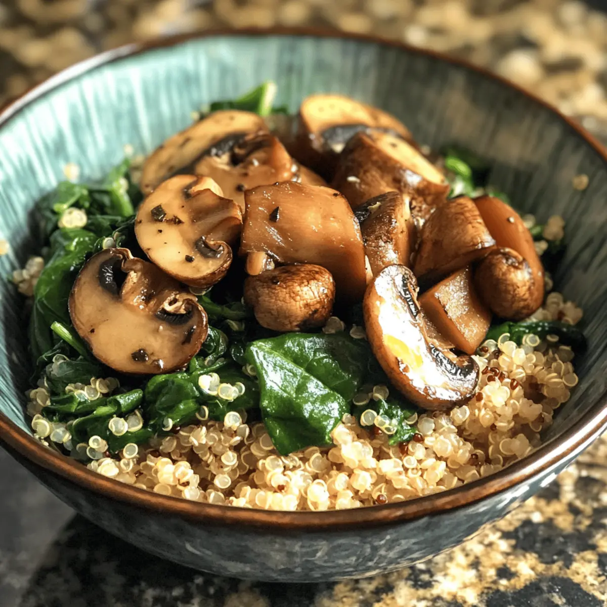 As the aroma of sautéing garlic and earthy mushrooms fills the kitchen, my cravings shift into high gear. If you’re searching for a nourishing meal that comes together in a flash, look no further than this Mushroom Spinach Quinoa bowl. Packed with protein and vibrant greens, this dish stands out as a healthy choice whether you’re meal prepping for the week or just enjoying a cozy dinner at home. In under 20 minutes, you’ll have a comforting, satisfying meal that’s perfect for both lunch and dinner. Plus, with its delightful texture and flavor, it’s sure to please even the pickiest eaters. Ready to whir up some deliciousness? Let’s dive into the recipe! Why is Mushroom Spinach Quinoa a Must-Try? Quick, Nutritious Meal: In just 20 minutes, you’ll whip up a vibrant, flavor-packed dish that’s perfect for any occasion. Healthy Ingredients: Filled with protein-rich quinoa, fresh spinach, and earthy mushrooms, this bowl offers a balanced meal that your body will thank you for. Versatile Options: Whether you choose to top it with baked tofu or pair it with grilled chicken, it adapts to your dietary needs. Meal Prep Dream: Make a big batch and enjoy comforting leftovers that taste even better the next day—perfect for busy lifestyles! Family-Friendly Appeal: This dish is sure to please diverse palates, making it a hit with both kids and adults alike. Plus, pair it with grilled chicken or fish for even more options! Mushroom Spinach Quinoa Ingredients For the Quinoa • Quinoa – A protein-packed base that makes this dish hearty and wholesome. For the Sauté • Water – Essential for cooking quinoa to fluffy perfection. • Olive Oil – Ideal for sautéing, but feel free to swap with avocado oil for a different taste. • Garlic (4 cloves, minced) – Adds aromatic depth; adjust based on your love for garlic! • Cremini Mushrooms (1 – 8oz. package, thinly sliced) – Brings umami flavor and a delightful texture; button mushrooms work well, too. • Spinach (2 cups) – Boosts nutrients and color; substitute with kale for a twist. For Seasoning • Soy Sauce (2 tablespoons) – Infuses a savory richness; tamari is a gluten-free alternative. • Garlic Powder (1/8 teaspoon) – Intensifies the garlic flavor; can be omitted if using enough fresh garlic. • Salt and Pepper – Essential for seasoning; adjust to your dietary preferences. This Mushroom Spinach Quinoa bowl isn’t just quick and easy to prepare—it’s also a healthy, flavor-packed meal that fits perfectly into busy lifestyles. Enjoy creating this dish! Step‑by‑Step Instructions for Mushroom Spinach Quinoa Step 1: Cook the Quinoa In a medium saucepan, combine 1 cup of quinoa with 2 cups of water. Bring to a gentle boil over medium-high heat, then reduce the heat to low. Cover the saucepan and let it simmer for about 15 minutes, or until all the water is absorbed and the quinoa is fluffy. Once done, remove from heat and let it sit covered for an additional 5 minutes to steam. Step 2: Heat the Oil While the quinoa is cooking, take a large sauté pan and add 1 tablespoon of olive oil. Heat the pan over medium heat until the oil shimmers, signaling it’s ready for cooking. This step is essential for achieving that lovely sautéed flavor in your Mushroom Spinach Quinoa. Step 3: Sauté the Garlic Add 4 minced garlic cloves to the hot oil and sauté them for about 1 minute. Stir constantly until the garlic becomes fragrant and lightly golden, which adds a wonderful aromatic base to your dish. Be careful not to let the garlic burn, as it can become bitter if overcooked. Step 4: Cook the Mushrooms Once the garlic is fragrant, add 8 ounces of thinly sliced cremini mushrooms to the pan. Sauté the mushrooms for 3-4 minutes, stirring occasionally, until they are tender and have released their moisture. You’ll know they’re ready when they turn a rich brown color and smell delightful. Step 5: Add the Spinach Next, stir in 2 cups of fresh spinach along with 2 tablespoons of soy sauce and 1/8 teaspoon of garlic powder. Cook for an additional 2-3 minutes, stirring frequently until the spinach wilts down. The vibrant color of the wilted spinach will beautifully contrast with the mushrooms, making your Mushroom Spinach Quinoa bowl visually appealing. Step 6: Combine Ingredients Now it’s time to bring it all together! Add the fluffy quinoa into the sauté pan with the cooked vegetables. Stir well to combine all the ingredients thoroughly, making sure the quinoa is evenly coated with the savory mix of mushrooms and spinach. This will result in a hearty and satisfying dish. Step 7: Serve and Store Once everything is well mixed, serve your Mushroom Spinach Quinoa immediately for a warm, nourishing meal. If you want to store any leftovers, allow the dish to cool completely before placing it in an airtight container. It can be refrigerated for up to 3-4 days, making it perfect for meal prep! Variations & Substitutions for Mushroom Spinach Quinoa Feel free to get creative and make this dish your own with these delightful twists and substitutions! Grain Alternatives: Swap out quinoa for farro or barley for a fun change in texture and flavor. Leafy Green Swap: Try Swiss chard or arugula instead of spinach for a different nutrient profile and taste. Nutty Crunch: Add a handful of chopped walnuts or sunflower seeds for an irresistible crunch and healthy fats. Cheesy Delight: Stir in some grated Parmesan or crumbled feta cheese right before serving for a creamy finish. Spice it Up: Add a pinch of red pepper flakes or a dash of hot sauce to give your quinoa a little kick! Mushroom Variety: Experiment with different types of mushrooms, like shiitake or portobello, to enhance the umami flavor even further. Protein Boost: Toss in some cooked chickpeas or diced rotisserie chicken for added protein that complements the dish nicely. Herb Infusion: Fresh herbs such as basil or cilantro can elevate your meal; sprinkle them on top just befo