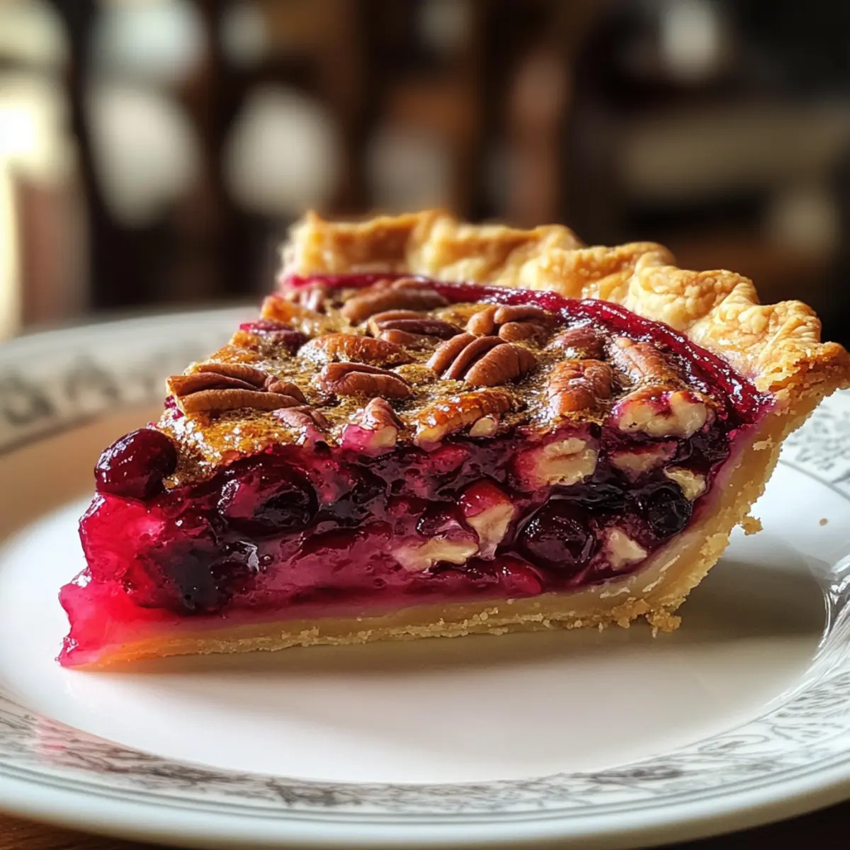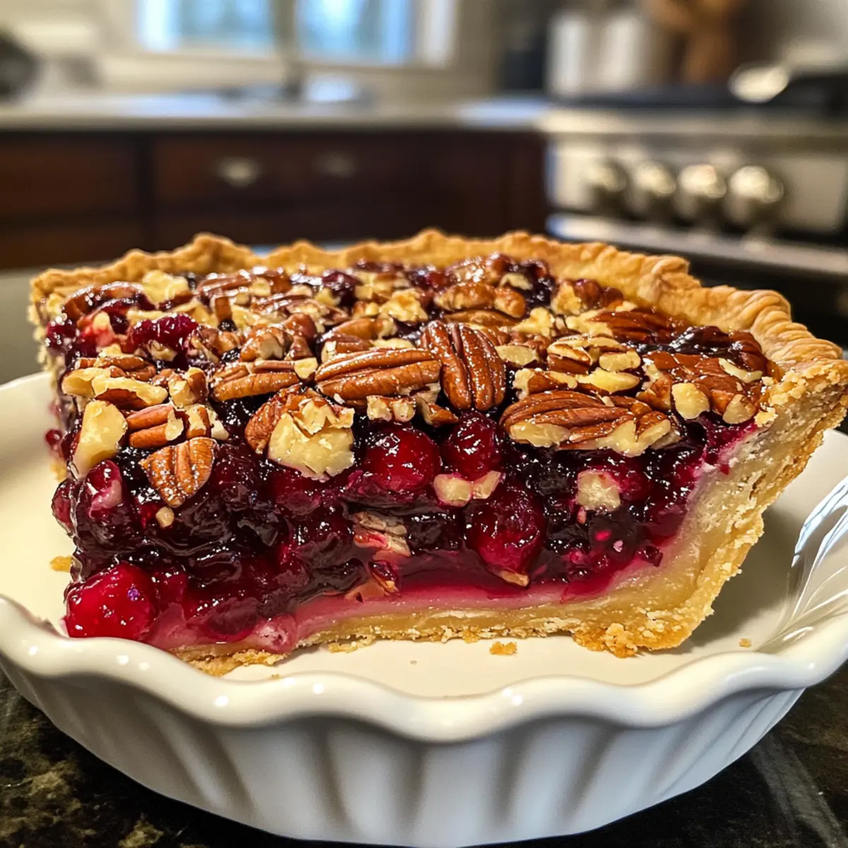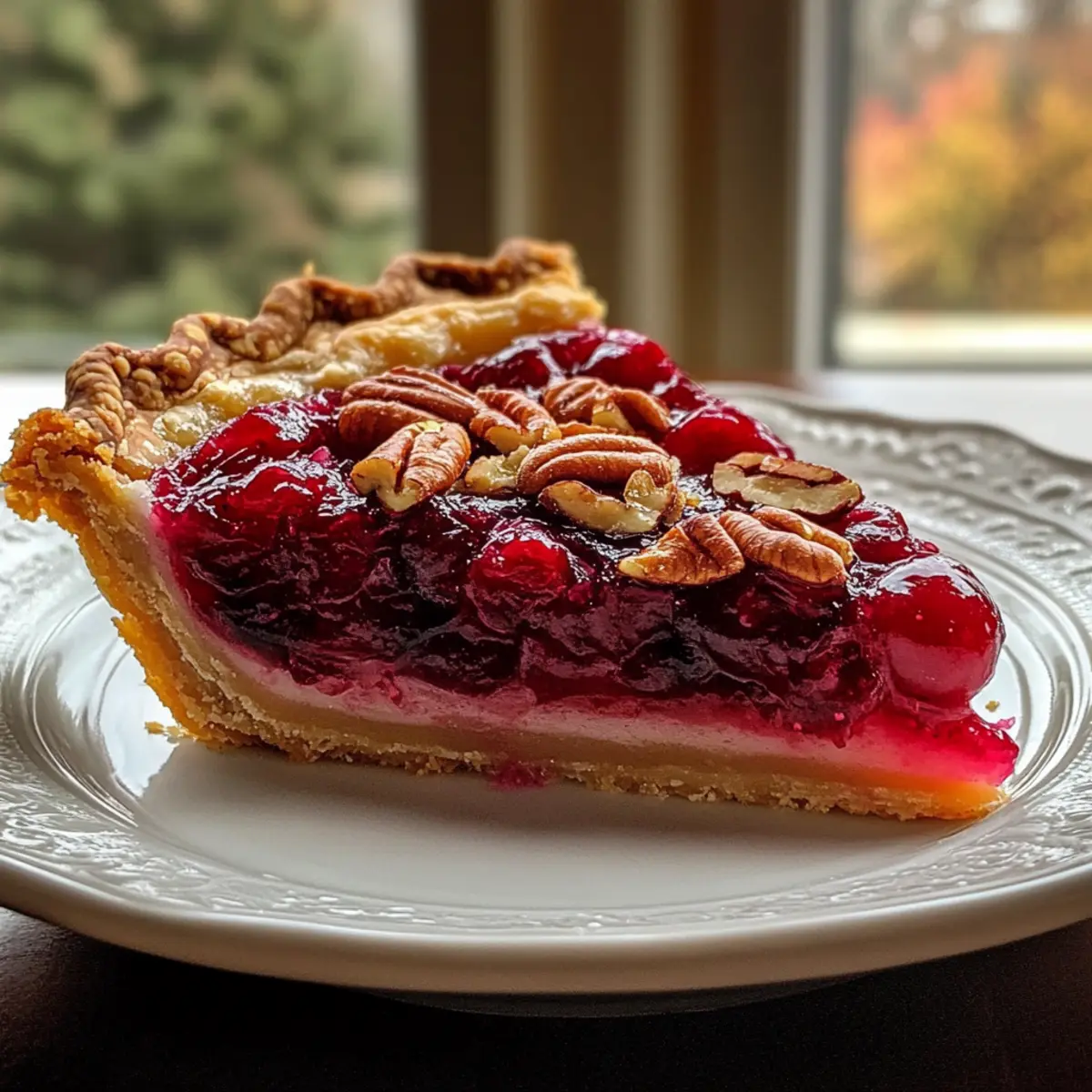 The sweet aroma of pine needles and cinnamon wafts through the air as family gathers for the holidays; now is the time to introduce a dessert that captures the spirit of the season: Nantucket Holiday Cranberry Pie. This easy-to-make Christmas dessert features a delightful combination of tart cranberries, crunchy pecans, and a perfectly tender cake layer, creating a warming treat that even those wary of cranberries can’t resist. With minimal prep time and the option to make it gluten-free, this pie is not just a dish but a shareable memory destined to become a tradition. Imagine serving it warm, adorned with a scoop of creamy vanilla ice cream—pure bliss! Ready to dive into a slice of happiness? Let’s get baking! Why is Nantucket Holiday Cranberry Pie special? Warmth and Tradition: This pie embodies the essence of holiday gatherings, as its sweet and tangy flavors bring families together for a shared experience. Easy Baking: With its simple ingredients and straightforward steps, even novice bakers can whip up this festive delight in no time. Gluten-Free Adaptable: Easily swap for a gluten-free flour blend, ensuring everyone can indulge in this treat regardless of dietary needs. Irresistible Flavor: The delightful combination of tart cranberries and crunchy pecans creates a memorable flavor experience that will have guests asking for seconds. Culinary Versatility: Whether served warm with ice cream or enjoyed cold straight from the fridge, this pie can adapt to any occasion, making it a crowd-pleaser even beyond the holidays. In need of more festive inspiration? Try making a Cranberry Orange Holiday cake or indulge in delectable Greek Honey Pie for a unique twist! Nantucket Holiday Cranberry Pie Ingredients For the Cranberry Filling • Fresh or Frozen Cranberries – Use these for a tart and juicy filling; you can use frozen without thawing for convenience. • Granulated Sugar – Sweetens the pie perfectly, adjust to your taste for the ideal balance of flavors. • Pecans or Almonds – Adds a delightful crunch and nutty essence; feel free to substitute with your favorite nuts or leave them out entirely. For the Cake Layer • Unsalted Butter – Ensures the pie is rich and moist; make sure it’s softened for easy mixing. • Eggs – Binds all components together while adding moisture; an egg replacer works well for a vegan version. • Almond or Vanilla Extract – Provides a flavor boost; almond offers a unique twist, while vanilla adds a classic touch. • All-Purpose Flour – Gives structure to the cake layer; a gluten-free flour blend can be used to keep it accessible. • Salt – Enhances the overall flavors; don’t skip this for the best taste experience. With these key ingredients, your Nantucket Holiday Cranberry Pie will surely become a festive favorite! Step‑by‑Step Instructions for Nantucket Holiday Cranberry Pie Step 1: Preheat and Prepare Begin by preheating your oven to 350°F (176°C). As the oven warms up, take a 9-inch pie plate and generously butter it to ensure easy release post-baking. Spread the fresh or frozen cranberries evenly across the bottom of the prepared plate, then sprinkle half a cup of sugar and your choice of chopped pecans or almonds over the cranberries for a delightful crunch. Step 2: Cream Butter and Sugar In a medium mixing bowl, add the softened unsalted butter along with one cup of granulated sugar. Using a hand mixer on medium speed, beat these ingredients together until the mixture is smooth and light in color, which should take about 2 to 3 minutes. This step is crucial for ensuring a tender cake layer in your Nantucket Holiday Cranberry Pie. Step 3: Incorporate Eggs and Extract Next, add in the almond or vanilla extract followed by the eggs, one at a time. Continue to beat the mixture on medium speed until it becomes fluffy and well-combined, which should take an additional 1 to 2 minutes. The eggs will help bind everything together and add richness to your batter. Step 4: Combine Dry Ingredients Lower the mixer speed to low and gradually add in the all-purpose flour and salt. Mix until just blended, ensuring you do not overwork the batter; it should remain somewhat thick and sticky. This is fundamental for achieving that delightful texture in the Nantucket Holiday Cranberry Pie. Step 5: Spread the Batter With a spatula, carefully spread the sticky batter evenly over the top of the cranberries and nut mixture in the pie plate. Aim for an even distribution to cover the cranberries completely. This will create a lovely cake-like layer as it bakes up around the tart cranberries, sealing in all those delicious flavors. Step 6: Bake the Pie Place the pie in your preheated oven and bake for 45-50 minutes. To check for doneness, insert a toothpick into the center of the pie; it should come out clean or with a few moist crumbs attached. Make sure to keep an eye on it toward the end to avoid overbaking. Step 7: Cool and Serve Once baked, remove the Nantucket Holiday Cranberry Pie from the oven and allow it to cool for at least 10-15 minutes before slicing. This brief cooling time will help the pie set up nicely. It’s best served warm, especially when accompanied by a scoop of vanilla ice cream or a dollop of whipped cream for that extra festive touch. Storage Tips for Nantucket Holiday Cranberry Pie Room Temperature: Store covered at room temperature for up to 2 days to retain its fresh taste and texture. Fridge: Keep the pie in the refrigerator for up to 5 days. Make sure it’s covered with plastic wrap or in an airtight container to prevent drying out. Freezer: For longer storage, freeze the Nantucket Holiday Cranberry Pie for up to 3 months. Wrap it tightly in foil or plastic wrap to avoid freezer burn. Reheating: Thaw the pie overnight in the fridge before serving, and reheat it in a 350°F (176°C) oven for about 15-20 minutes, until warmed through. What to Serve with Nantucket Holiday Cranberry Pie The festive spirit comes ali