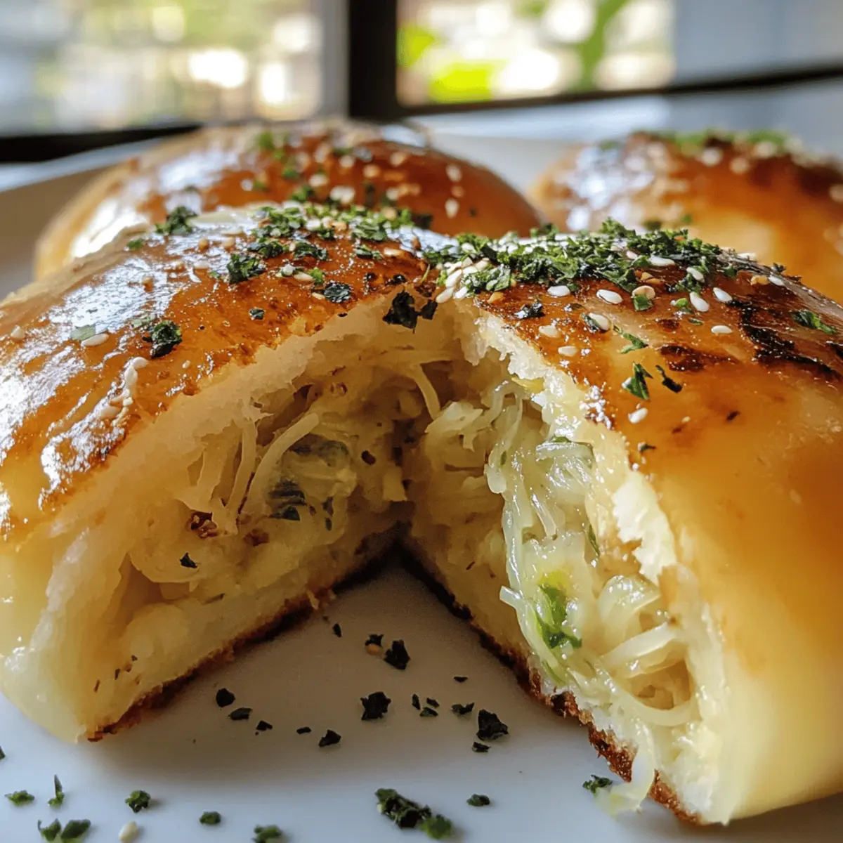 As I rummaged through my pantry one evening, the tantalizing aroma of street food wafted into my memory—those sizzling night markets buzzing with life are enough to dream about! Inspired by that lively experience, I decided to create my own version of pan-fried buns filled with cabbage and vermicelli noodles. These scrumptiously satisfying Vegan Pan-Fried Buns are not only a delightful comfort food but also a fantastic option for those eager to ditch fast food in favor of something homemade. They’re quick to prep and even freezer-friendly, allowing you to savor that street food magic anytime you crave it. Are you ready to embark on this delicious adventure with me? Why Are These Buns So Irresistible? Deliciously Unique: Experience the perfect blend of flavors with a satisfying mix of cabbage and vermicelli noodles enveloped in a soft, crispy bun. Quick and Easy: With simple instructions, you don’t need to be a pro chef to whip up these tasty treats! Versatile Filling: Feel free to customize with different veggies, making every batch a new adventure in taste. Freezer-Friendly: Prep a big batch to enjoy later; just cook from frozen for a quick meal! Crowd-Pleasing Comfort: These buns are a fantastic hit, perfect for gatherings or cozy nights in; they’ll put a smile on everyone’s face! You might also enjoy Sweet Spicy Garlic for another flavorful dish! Pan-Fried Cabbage and Noodle Buns Ingredients For the Dough All-Purpose Flour – Provides structure; substitute with a gluten-free blend for a gluten-free version. Instant Dry Yeast – Helps dough rise quickly; you can store opened packets in the freezer for future use. Sugar – Adds a touch of sweetness to the dough; try using agave syrup for a vegan alternative. Salt – Enhances flavor and strengthens gluten in the dough structure. Roasted Sesame Seeds – Adds a nutty flavor and crunch; omit if you prefer a simpler dough. Warm Soy Milk (or Non-Dairy Milk) – Hydrates the dough for softness; almond or oat milk works well as a substitute. Toasted Sesame Oil – Brings rich flavor to the dough; a neutral oil can work if sesame oil isn’t on hand. For the Filling Neutral Oil (for cooking) – Essential for sautéing the filling; olive oil can be a good substitute. Shredded Cabbage – The star ingredient for a crunchy texture; bok choy makes for a great alternative. Vermicelli Noodles – Adds a lovely chewiness; rice noodles can replace them or you can lighten the filling by omitting them. Carrot – Brings sweetness and color; zucchini is a viable substitution for a different flavor. Chopped Scallions or Chives – Adds freshness to the filling; feel free to use any fresh herbs you have on hand. Soy Sauce – Provides umami and seasoning; tamari works for a gluten-free version. Additional Salt – Adjust to taste based on personal preference. Additional Roasted Sesame Seeds – Enhances flavor and texture in the filling for a delightful finish. With these ingredients at hand, you’re just steps away from crafting your own batch of mouthwatering pan-fried cabbage and noodle buns! Step‑by‑Step Instructions for Vegan Pan-Fried Buns with Cabbage and Vermicelli Step 1: Prepare the Dough In a large mixing bowl, combine 3 cups of all-purpose flour, 2 teaspoons of instant dry yeast, 1 tablespoon of sugar, and 1 teaspoon of salt. Create a well in the center and pour in 1 cup of warm soy milk and 2 tablespoons of toasted sesame oil. Mix until a shaggy dough forms, then knead on a floured surface for about 5-7 minutes until smooth. Cover and let rise in a warm area for 2 hours or until doubled in size. Step 2: Cook the Filling While the dough rises, prepare the filling for your pan-fried cabbage and noodle buns. Soak 4 ounces of vermicelli noodles in boiling water for about 5 minutes until softened, then drain and chop them into small pieces. In a skillet over medium heat, add 2 tablespoons of neutral oil and sauté 1 cup of chopped scallions, 1 cup of shredded carrots, and 3 cups of shredded cabbage for 5-7 minutes, until tender. Mix in the chopped noodles, 2 tablespoons of soy sauce, and a pinch of salt, cooking for another 2 minutes. Allow this delicious filling to cool. Step 3: Make the Wrappers When the dough has risen, punch it down and divide it into 12-16 equal pieces. Roll each piece into a ball, then flatten it lightly. Using a rolling pin, roll each disk into a round wrapper roughly 3-5 inches in diameter. Aim for a slightly thicker edge to help hold the filling without breaking during cooking. The wrappers should be smooth and even for optimal cooking results with your pan-fried buns. Step 4: Assemble the Buns Take one wrapper and place about 2-3 tablespoons of the cooled filling in the center. Bring up the edges of the wrapper and pinch them together, creasing as you go, to form a tight seal. Twist the top for a decorative effect. Repeat this process until all the wrappers and filling are used, carefully placing each assembled bun on a parchment-lined tray to avoid sticking. Step 5: Cook the Buns In a large non-stick skillet, heat 2 tablespoons of neutral oil over medium heat. Once hot, place the buns creased-side down in the skillet, ensuring they don’t touch. Pan-fry for about 4-5 minutes until the base turns a beautiful golden brown. Add 1/2 cup of water to the pan, cover with a lid, and steam for around 8 minutes, or until the water fully evaporates and the buns are soft and cooked through. How to Store and Freeze Pan-Fried Cabbage and Noodle Buns Fridge: Store cooked buns in an airtight container in the fridge for up to 5 days. Reheat in a skillet over medium heat with a splash of water to revive their texture. Freezer: For long-term storage, place cooked buns in a single layer on a baking sheet and freeze until solid. Transfer to a freezer-safe bag, sealing tightly; they’ll keep for up to 3 months. Reheating: To reheat from frozen, simply pan-fry them directly in a hot skillet with a splash of water, covering
