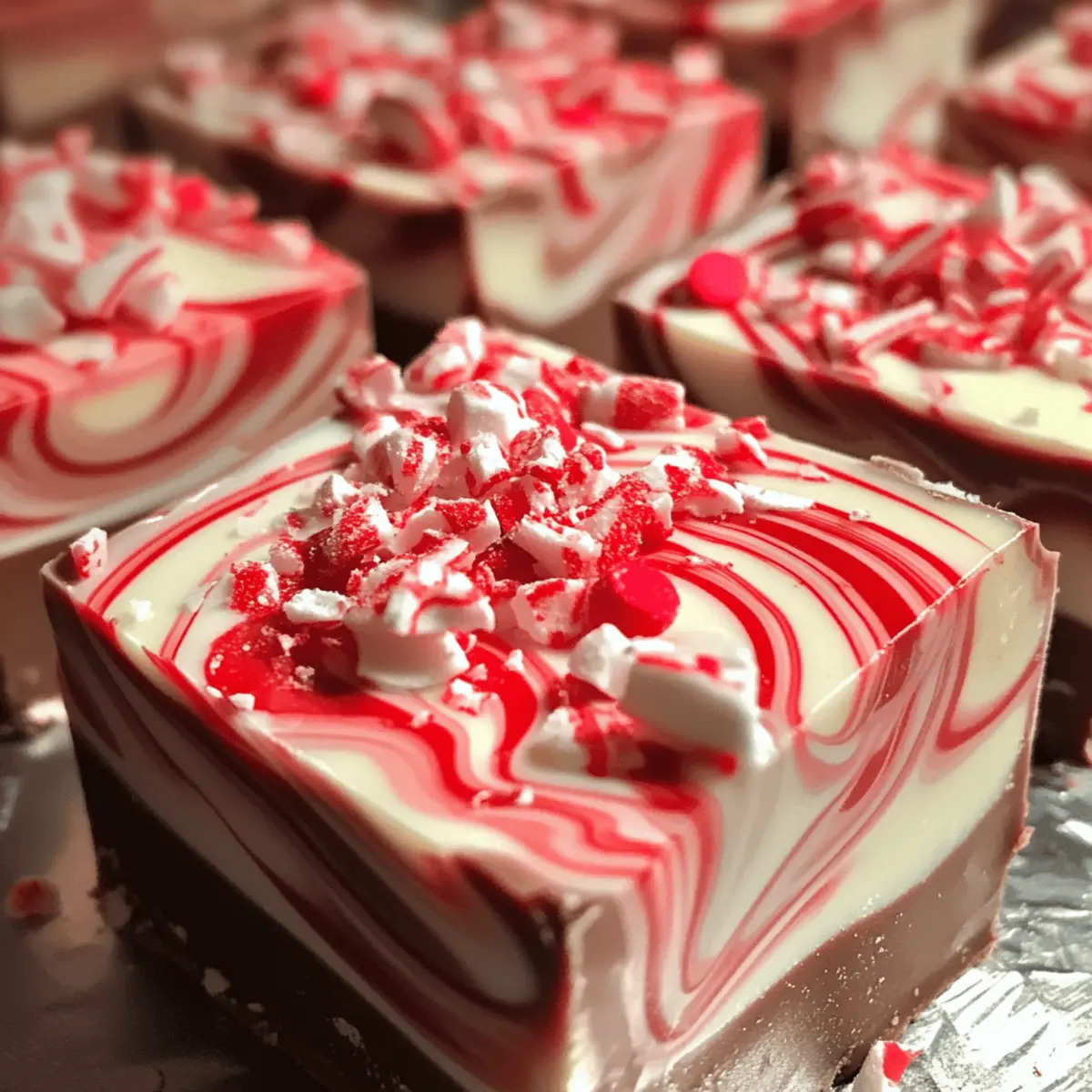 The air crackles with festive cheer as I create a batch of candy for the holiday season. It’s hard to resist the allure of homemade sweets, especially when it comes to my Peppermint Swirl Fudge. This no-bake marvel marries rich chocolate with the invigorating taste of peppermint, making it an unforgettable holiday dessert that’s as delightful to look at as it is to eat. With just a few simple ingredients, you can create a visually striking treat that brings joy to any gathering while being gluten-free! Not only is this fudge a crowd-pleaser, but it also makes for a perfect homemade gift. Are you ready to add this deliciously festive fudge to your holiday repertoire? Why is This Fudge a Must-Try? Irresistible Festivity: This Peppermint Swirl Fudge brings holiday spirit to your table with its vibrant swirls and cheerful colors. No-Bake Delight: Enjoy the simplicity of a no-bake recipe, making it easy to whip up even in the busiest of seasons. Flavor Explosion: The combination of rich chocolate and refreshing peppermint makes every bite a delightful treat that will impress your guests. Perfect for Gifting: This fudge not only tastes great, but its stunning presentation makes it ideal for sharing with friends and family, or gifting in festive jars. Kid-Friendly Fun: Invite your little ones to help with the swirling—it’s a fun activity that transforms baking into a treasured family moment. Add this dreamy fudge to your holiday dessert lineup and explore other sweet treats like Chocolate Swirl Cheesecake or Berry Swirl Cheesecake for more festive joy! Peppermint Swirl Fudge Ingredients For the Fudge Base Sweetened Condensed Milk – Provides the creaminess and makes the fudge easy to slice; can be substituted with evaporated milk and sugar for a similar effect. White Chocolate Chips – Creates a sweet, creamy base; feel free to swap with dark chocolate chips if you prefer a richer taste. Semi-Sweet Chocolate Chips – Offers a balanced chocolate flavor; using milk chocolate will lead to a sweeter fudge, while dark chocolate makes it more decadent. Peppermint Extract – Adds a refreshing minty kick; if you want a stronger flavor, consider using peppermint oil sparingly. For the Toppings Crushed Peppermint Candies – Adds a crunchy texture and festive flair; you may substitute with crushed candy canes for an extra holiday punch. Red Food Coloring (optional) – Enhances the visual appeal with vibrant swirls; this step can be skipped if you prefer a more natural look. Indulge in crafting your Peppermint Swirl Fudge for a delightful addition to your holiday celebration! Step‑by‑Step Instructions for Peppermint Swirl Fudge Step 1: Prepare the Pan Begin by lining an 8×8 inch baking dish with parchment paper, allowing some overhang for easy removal later. This step is essential for ensuring your Peppermint Swirl Fudge comes out smoothly without sticking. Smooth out the paper to eliminate any air pockets and set the dish aside while you prepare the fudge. Step 2: Melt the Mixture In a medium saucepan over low heat, combine the sweetened condensed milk, white chocolate chips, and peppermint extract. Stir continuously with a spatula until the mixture is fully melted and smooth, which should take about 5-7 minutes. Be sure to keep the heat low to prevent any burning; you’ll know it’s ready when the chocolate is glossy and flows easily. Step 3: Incorporate Color and Flavors Once your chocolate mixture is ready, carefully divide it into two bowls. Stir semi-sweet chocolate chips into one bowl until fully melted and incorporated. In the other bowl, add a few drops of red food coloring if desired and mix until the color is evenly distributed. The vibrant contrast will create beautiful swirls in your Peppermint Swirl Fudge. Step 4: Layering Pour the chocolate mixture from the first bowl into the prepared baking dish, smoothing it out evenly over the bottom. Next, take spoonfuls of the peppermint mixture and dollop them over the chocolate layer. Using a toothpick or a knife, swirl gently through the layers to create a delightful marbled effect, aiming for a uniform distribution of colors. Step 5: Add Toppings Sprinkle the crushed peppermint candies generously over the swirled fudge while it’s still warm to help them adhere. This adds not only a crunchy texture but also enhances the festive appearance of your Peppermint Swirl Fudge. It’s the finishing touch that makes this dessert even more special for the holiday season. Step 6: Set the Fudge Place your dish in the refrigerator and allow the fudge to set for at least 2-3 hours. It’s essential that the fudge becomes firm enough to cut into squares. After chilling, gently lift the fudge out of the pan using the parchment paper overhang, which will make serving much easier. Step 7: Serve With a sharp knife, cut the chilled Peppermint Swirl Fudge into small squares, ensuring clean edges for a beautiful presentation. You can serve these delightful treats immediately, or package them in festive jars for gifts. The vibrant swirls and crunch from the peppermint create a delicious experience that is sure to impress! Storage Tips for Peppermint Swirl Fudge Room Temperature: Store your fudge in an airtight container at room temperature for up to one week. This keeps it soft and chewy without the need for refrigeration. Fridge: If you want to extend freshness, refrigerate your fudge for up to three weeks. Just make sure it’s in an airtight container to prevent it from absorbing any odors. Freezer: For longer storage, wrap the fudge tightly in plastic wrap and place it in an airtight freezer bag. It can be frozen for up to three months. When ready to enjoy, thaw it in the fridge overnight. Reheating: There’s no need to reheat the fudge; enjoy it cold or at room temperature for the best texture. Just slice and savor the creamy, peppermint-laced deliciousness of your Peppermint Swirl Fudge! Make Ahead Options These Peppermint Swirl Fudge squares