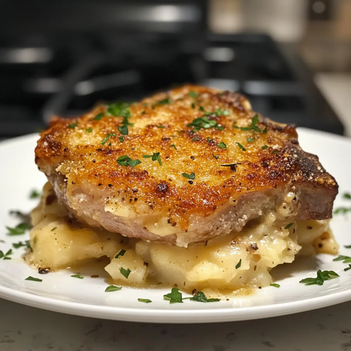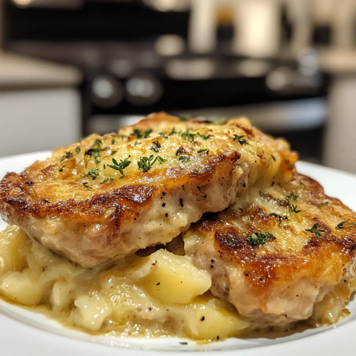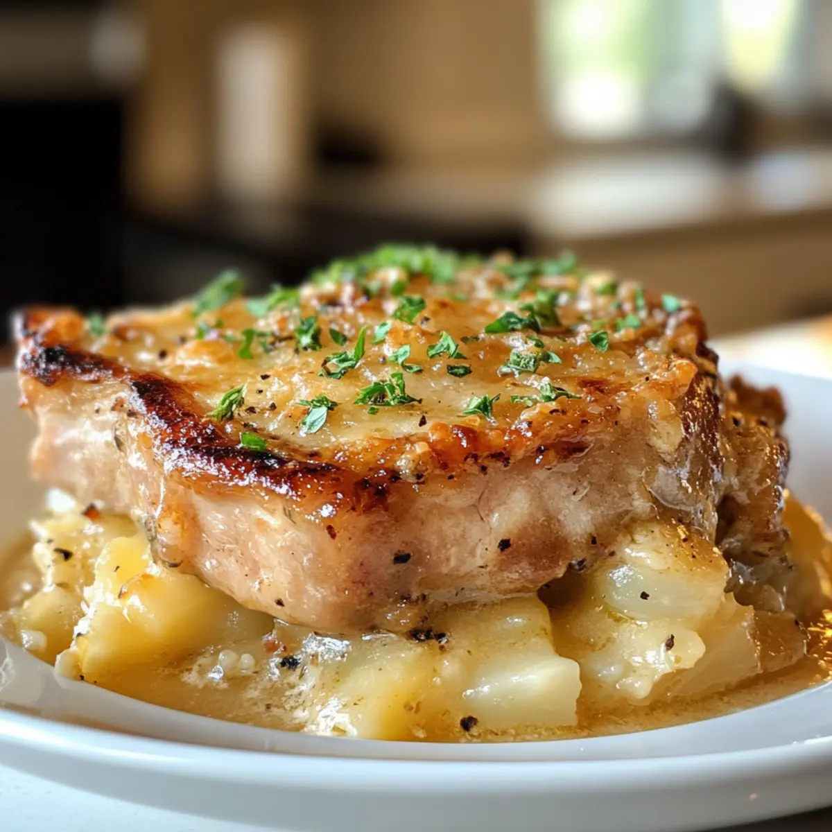 Flavor Explosion: Juicy pork chops mingle with creamy potatoes, creating a hearty dish that’s downright irresistible.