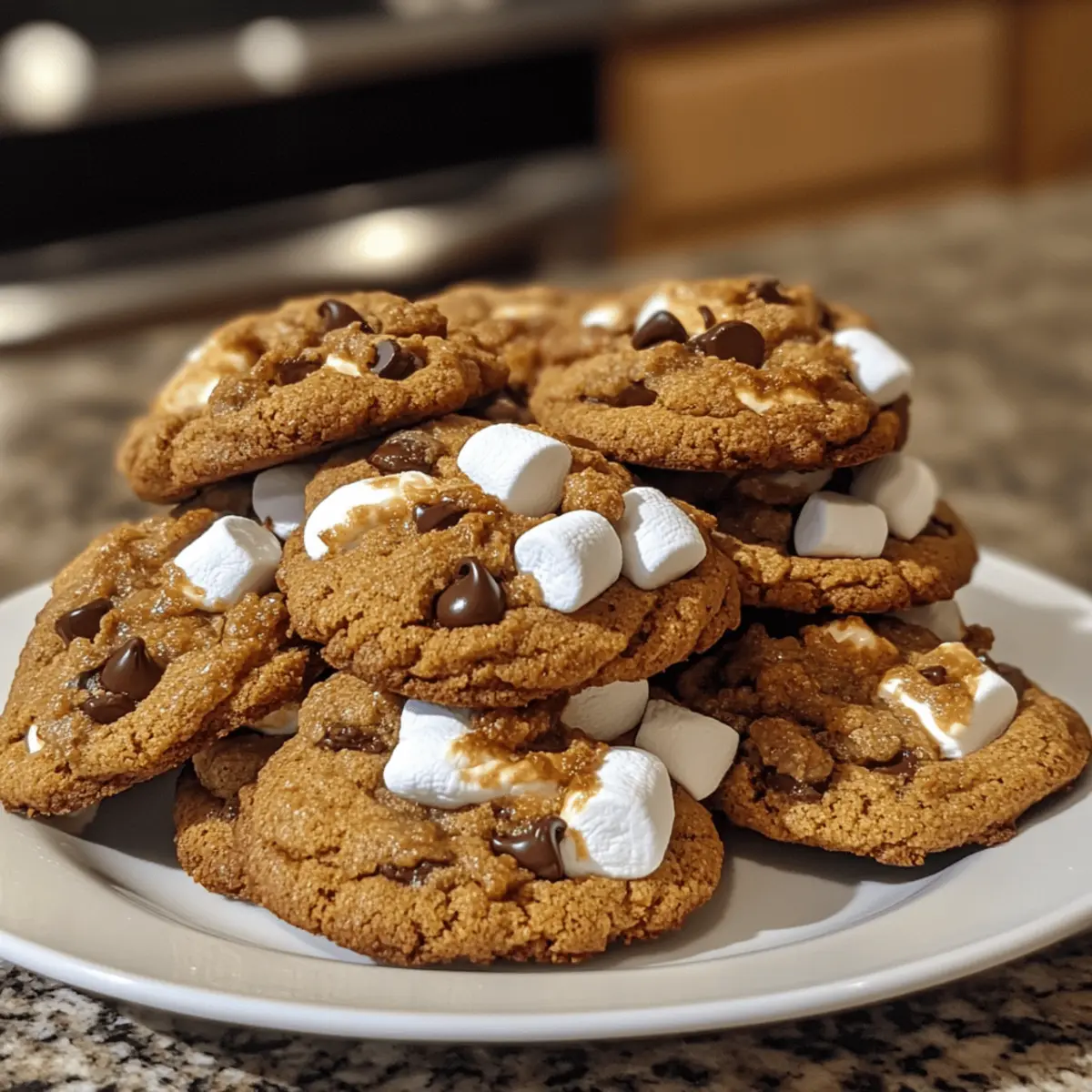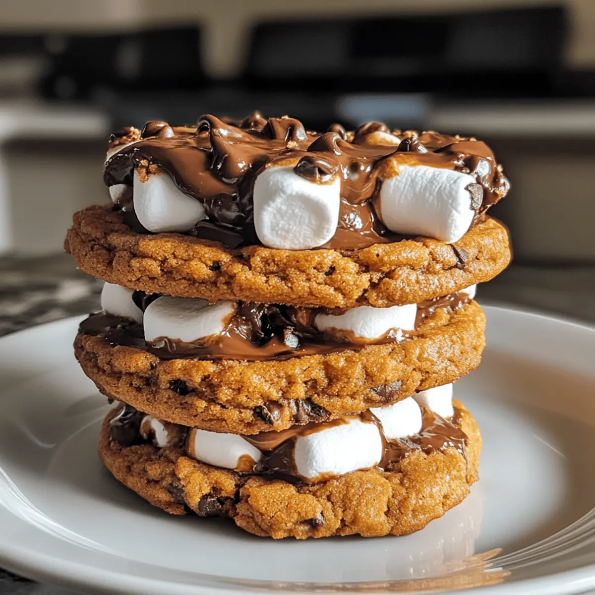 As I placed the final cookie on the cooling rack, the enchanting aroma of pumpkin and warm spices enveloped my kitchen, instantly transporting me into the heart of fall. These Pumpkin S’mores Cookies are more than just a festive treat; they’re a delightful blend of nostalgia and seasonal flavor, perfect for Halloween gatherings or cozy family nights. With their chewy texture mingling gooey marshmallows and rich chocolate, they not only satisfy sweet cravings but are also a cinch to whip up, making them an ideal weekend baking project. Plus, if you’re sticking to gluten-free, you’ll be pleased to know they can easily adapt to meet your needs. Curious how to create these seasonal delights? Let’s dive into the recipe! Why are Pumpkin S’mores Cookies irresistible? Warm, Cozy Flavor: The blend of pumpkin and spices creates a nostalgic taste, perfect for fall festivities. Oh-So-Gooey: With mini marshmallows and chocolate chips, each bite is a delightful taste explosion! Easy to Make: Simple steps make these cookies a perfect choice for both novice and experienced bakers. Gluten-Free Friendly: Easily adaptable for gluten-free diets, everyone can join in on the deliciousness! Crowd-Pleaser: These cookies are guaranteed to be a hit at parties, potlucks, or family gatherings, much like my Bakery Style Cookies. Versatile Variations: Feel free to swap out toppings or mix-ins, making each batch uniquely yours! Pumpkin S’mores Cookies Ingredients • Get ready to bake these delightful treats! For the Cookie Base Butter – Adds richness and moisture; ensure it’s softened for easy creaming. Brown Sugar – Provides sweetness and a hint of molasses flavor; can substitute with coconut sugar for a lower glycemic index. White Sugar – Balances sweetness and helps with the cookies’ texture; granulated sugar works as a replacement. Pumpkin Puree – The star ingredient that adds moisture and captures that fall essence; use either canned or homemade puree. Egg – Binds ingredients and adds moisture; opt for a flax egg for a vegan alternative. Vanilla Extract – Enhances the flavor; substitute with almond extract for a different aromatic twist. All-Purpose Flour – Provides structure to the cookies; swap with a gluten-free flour blend for a gluten-free adaptation. Baking Soda – Aids in leavening for a soft cookie texture. Salt – Enhances sweetness and balances flavors. Cinnamon, Ginger, Nutmeg – A blend of spices that brings the classic fall flavor; adjust to your taste, or use a pre-mixed pumpkin spice blend. For the S’mores Twist Graham Cracker Crumbs – Adds a delightful crunch and s’mores character; for gluten-free, look for gluten-free graham cracker crumbs. Mini Marshmallows – Provides gooeyness; chopped regular marshmallows can be used if minis are hard to find. Chocolate Chips – Adds sweetness and richness; feel free to use dark or milk chocolate chips based on preference. These Pumpkin S’mores Cookies not only embody the sweet essence of the season but also invite countless variations for you to explore and enjoy! Step‑by‑Step Instructions for Pumpkin S’mores Cookies Step 1: Preheat and Prepare Baking Sheets Start by preheating your oven to 350°F (175°C). While your oven warms up, grab two baking sheets and line them with parchment paper to prevent sticking. This step ensures that your Pumpkin S’mores Cookies bake evenly and don’t cling to the sheets! Step 2: Cream the Butter and Sugars In a large mixing bowl, combine softened butter, brown sugar, and white sugar. Use a hand mixer to cream them together for about 3 minutes, mixing until the mixture is light, fluffy, and well blended. This step is crucial as it creates the base for your cookies’ delightful texture. Step 3: Incorporate Pumpkin and Egg Next, add in the pumpkin puree, egg, and vanilla extract to your creamed mixture. Mix everything until smooth and well combined, ensuring that the pumpkin is fully integrated. This brings all those fall flavors together in your Pumpkin S’mores Cookies that everyone will adore. Step 4: Whisk Dry Ingredients In a separate bowl, whisk together the all-purpose flour, baking soda, salt, cinnamon, ginger, and nutmeg. This helps to evenly distribute the leavening agent and spices throughout your cookie dough. The aromatic spices are key to capturing that warm autumn essence in every bite. Step 5: Combine Wet and Dry Ingredients Gradually mix the dry ingredients into the wet mixture until just combined. Be cautious to avoid overmixing, as it can make your cookies tough instead of soft and chewy. You’re creating the dough that will become your sensational Pumpkin S’mores Cookies, so gentle mixing is the way to go! Step 6: Fold in the Goodies Now it’s time to gently fold in the graham cracker crumbs, mini marshmallows, and chocolate chips into the dough. Use a spatula to ensure everything is evenly incorporated. These delicious add-ins are what give these cookies their signature s’mores twist and delightful gooeyness. Step 7: Shape the Cookie Dough Using a tablespoon, scoop portions of the dough and roll them into balls. Place them on the prepared baking sheets, spacing them about 2 inches apart. This gives the cookies room to spread out while baking, achieving that perfect chewy texture. Step 8: Flatten and Bake Gently flatten each dough ball with your hand before placing them in the oven. Bake for 10-12 minutes, until the edges are golden brown and the centers are soft but set. The tempting aroma of your Pumpkin S’mores Cookies will fill the kitchen, enticing everyone around! Step 9: Cool Before Serving Once baked, allow the cookies to cool on the baking sheet for 5 minutes before transferring them to a wire rack. This brief cooling period ensures that the marshmallows don’t melt out completely. After they’ve cooled, it’s time to enjoy these delightful fall treats! Pumpkin S’mores Cookies Variations & Substitutions Feel free to explore these 