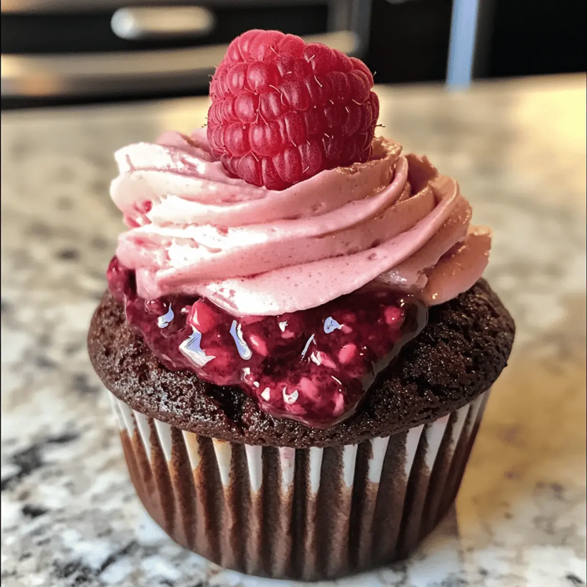 Delicious Raspberry Chocolate Lava Cupcakes with a rich, gooey center, perfect for any occasion.