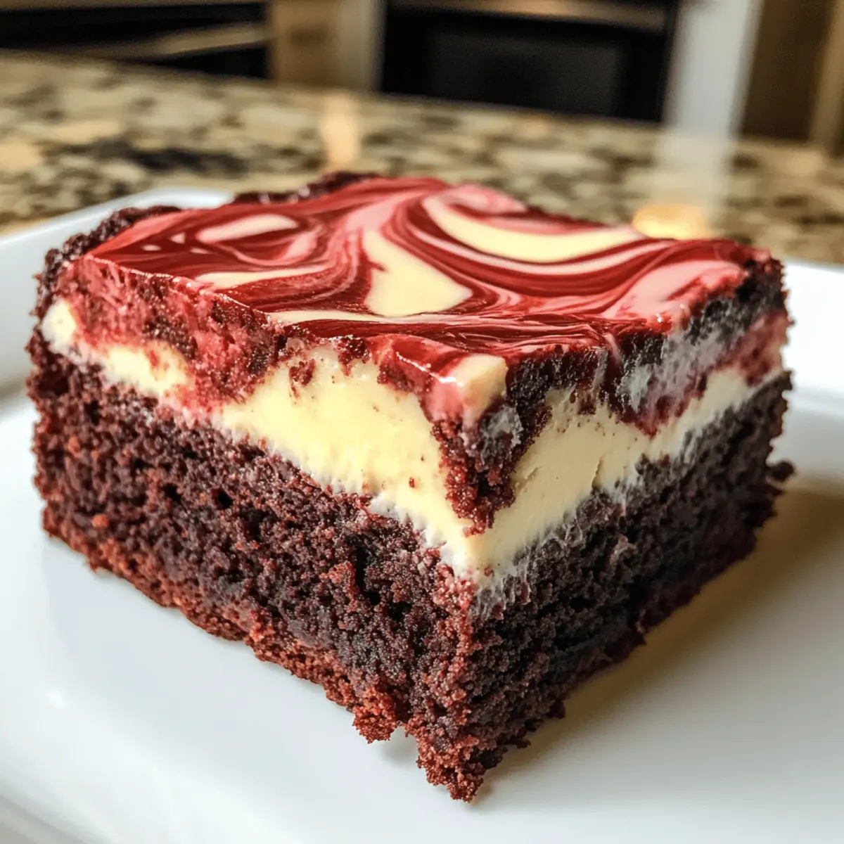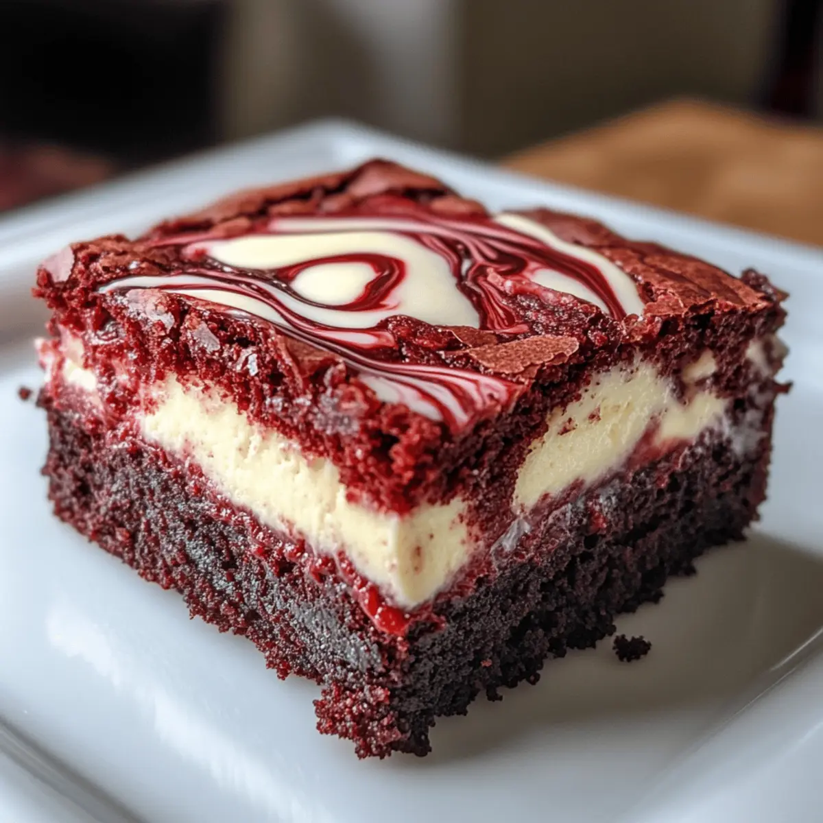 As I turned the oven dial to 350°F, a wave of excitement rushed over me. Today, I was about to create something truly special: Red Velvet Cheesecake Brownies. This dessert is the dream combination of rich, fudgy brownies and a creamy cheesecake swirl that turns any ordinary occasion into a celebration. Not only are they visually striking with their vibrant red and creamy white layers, but they also pack an unforgettable flavor punch. Perfect for birthdays, holidays, or simply to enjoy at home, these brownies are an impressive crowd-pleaser that even the busiest among us can whip up with ease. Who can resist the lure of a dessert that effortlessly combines elegance with a comforting touch? Ready to indulge in this delightful creation? Let’s dive into the recipe! Why Will You Love These Brownies? Decadent Indulgence: These Red Velvet Cheesecake Brownies merge rich cocoa flavors with a creamy cheesecake swirl, creating an irresistible dessert that’ll tantalize your taste buds. Visually Stunning: Their vibrant red and white layers make them not just delicious, but also a showstopper on any dessert table. Perfect for Any Occasion: Whether it’s a birthday celebration or a cozy holiday gathering, these brownies are the perfect treat to impress guests or savor at home. Quick to Make: With simple steps and minimal ingredients, you can whip them up when cravings hit without stress. Versatile Add-Ins: Feel free to personalize this recipe by adding in white chocolate chips or crunchy nuts for an extra flavor boost! If you enjoy more red velvet treats, check out Red Velvet Oreo Cheesecake or Red Velvet Cupcakes for more creative ideas. Red Velvet Cheesecake Brownies Ingredients For the Brownie Batter Unsalted Butter – Provides moisture and richness; can substitute margarine for a dairy-free version. Granulated Sugar – The sweetness base that makes the brownies delightfully sweet. Eggs – Act as a binder, adding necessary moisture and structure. Vanilla Extract – Enhances the overall flavor profile of the brownies. Red Food Coloring – Gives the signature red hue to these beautiful brownies; can be reduced or omitted for a subtler color. All-Purpose Flour – Provides structure and stability to the brownies. Cocoa Powder – Infuses the brownies with rich chocolate flavor. Salt – Balances out the sweetness for a harmonious taste. For the Cheesecake Layer Cream Cheese – The star ingredient providing creaminess and a delicious tang. Powdered Sugar – Sweetens the cheesecake layer to perfection. Additional Egg – Ensures the cheesecake layer is set and creamy. Vanilla Extract – Adds depth to the cheesecake’s flavor. Optional Add-ins White Chocolate Chips – Introduce a sweet, creamy flavor to complement the brownies. Dark Chocolate Chunks – For a richer chocolate experience, add these for indulgent bites. Now that you have all the ingredients needed for these Red Velvet Cheesecake Brownies, it’s time to bring this delightful recipe to life! Step‑by‑Step Instructions for Red Velvet Cheesecake Brownies Step 1: Preheat and Prepare Begin by preheating your oven to 350°F (175°C). While the oven warms up, take an 8×8-inch baking pan and line it with parchment paper for easy removal later. This will create a perfectly clean edge when slicing your luscious Red Velvet Cheesecake Brownies. Step 2: Melt and Mix In a medium saucepan over low heat, melt the unsalted butter until it’s completely liquid. Remove from the heat and whisk in granulated sugar until fully combined. Then, add the eggs one at a time, mixing well after each addition. Stir in vanilla extract and red food coloring, creating a rich and vibrant mixture. Step 3: Combine Dry Ingredients In a separate bowl, sift together all-purpose flour, cocoa powder, and salt to remove any lumps. Gradually fold the dry ingredients into the wet mixture using a spatula until just combined. Be careful not to overmix; this ensures your brownies remain fudgy and delicious. Step 4: Whip Up the Cheesecake Layer In another bowl, beat the softened cream cheese with powdered sugar using a hand mixer until smooth and creamy. Mix in the additional egg and a splash of vanilla extract until the batter is well combined and just creamy, ready to swirl into your decadent brownies. Step 5: Layer the Batter Pour approximately three-quarters of the red velvet brownie batter into the prepared baking pan, spreading it evenly to cover the bottom. Carefully dollop the cheesecake mixture over the brownie layer, ensuring it’s distributed well without mixing too much. Step 6: Create Delicious Swirls Drop spoonfuls of the remaining brownie batter on top of the cheesecake layer. Use a knife to gently swirl the two batters together, creating a marbled effect without over-mixing. This will give your Red Velvet Cheesecake Brownies a beautiful and enticing appearance. Step 7: Bake to Perfection Place the pan in your preheated oven and bake for 30-35 minutes. Keep an eye out for visual cues: the edges should be set while the center may appear slightly undercooked. A toothpick inserted should come out with a few moist crumbs—perfect for fudgy brownies! Step 8: Cool and Chill Once baked, remove the pan from the oven and let your brownies cool in the pan for about 15 minutes. For cleaner slices, transfer the brownies to the refrigerator for at least 30 minutes before cutting into squares. This extra chilling time makes a world of difference! What to Serve with Red Velvet Cheesecake Brownies Elevate your dessert experience with delightful accompaniments that enhance the richness of these heavenly brownies. Whipped Cream: Light and airy, a dollop of freshly whipped cream adds a delightful contrast to the dense and fudgy texture of the brownies. Vanilla Ice Cream: The creamy, cold vanilla ice cream melts beautifully into the warm brownies, creating a luscious, decadent bite. Fresh Berries: A handful of juicy strawberries or raspberries brightens the palette, bri