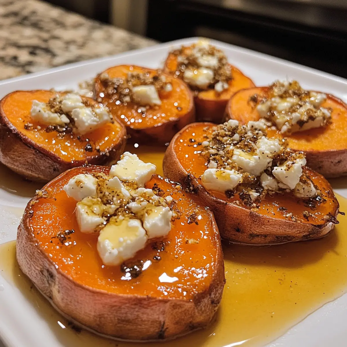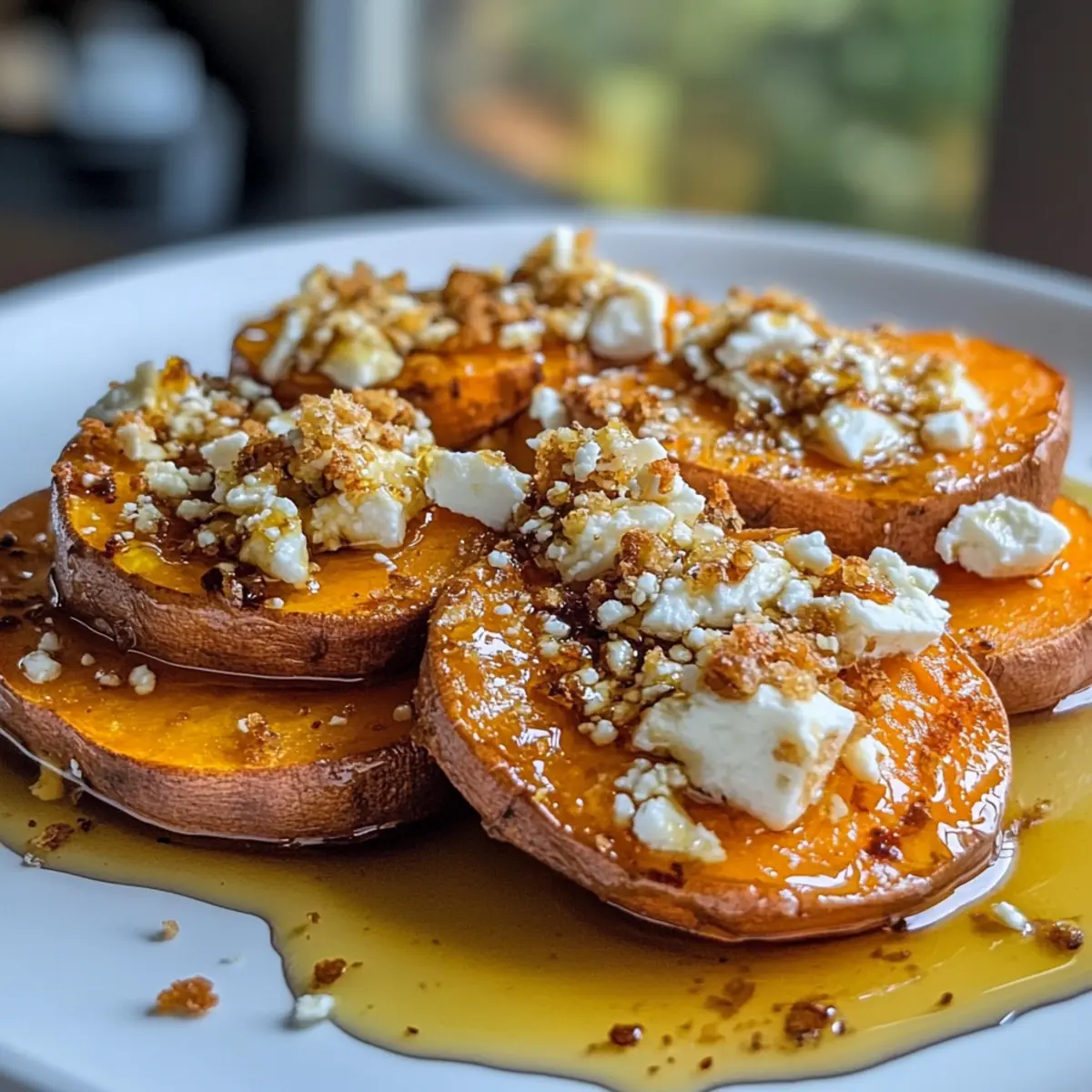 In a bustling kitchen filled with laughter and the comforting aroma of roasting vegetables, I often find myself experimenting with everyday ingredients to create something special. Today, let’s elevate the humble sweet potato into a star attraction with Roasted Sweet Potato Rounds with Honey & Feta. These delightful bites capture the essence of cozy gatherings, combining the earthiness of sweet potatoes with the tangy feta and a drizzle of honey for a hint of sweetness. With just 15 minutes of prep and only 30 minutes in the oven, this beginner-friendly recipe transforms a simple vegetable into an irresistible appetizer or side dish. Imagine serving these at your next dinner party or enjoying them as a healthy snack anytime. Are you ready to turn your kitchen into a flavor haven? Why are these sweet potato rounds irresistible? Simplicity at Its Best: With just 15 minutes of prep, this beginner-friendly recipe turns sweet potatoes into a sophisticated dish. Flavor Explosion: The combination of creamy sweet potatoes, tangy feta, and a drizzle of honey creates a dazzling contrast that’s hard to resist. Perfect for Any Occasion: Whether as an appetizer at gatherings or paired with grilled meats, these roasted rounds are perfect for every dining moment. Healthy Indulgence: Enjoy a guilt-free treat while savoring the warm, comforting flavors, each serving around 250 calories. Crowd-Pleasing: Everyone loves them! Their vibrant colors and unique taste make them a hit at dinner parties—imagine the compliments! Elevate your dining experience further by pairing these delicious bites with a side of Sweet Honey Glazed carrots or enjoying them alongside Lemon Herb Roasted chicken for a complete meal! Roasted Sweet Potato Rounds with Honey & Feta Ingredients For the Sweet Potato Rounds Sweet Potatoes – the star ingredient; choose firm ones for the best texture. Olive Oil – helps in achieving that flavorful, crispy exterior; feel free to substitute with avocado oil. Salt – enhances sweetness and is essential for maximizing flavor. Black Pepper – adds a subtle heat that balances the dish; always best when freshly ground. Smoked Paprika – infuses a warm, smoky depth; regular paprika serves well if you prefer a milder taste. For the Topping Feta Cheese – offers a creamy, tangy contrast, crumbled generously on top of the warm rounds. You can replace it with goat cheese for a different flavor! Honey – lends sticky sweetness and a mouthwatering glaze; consider agave syrup for a vegan alternative. Fresh Parsley – freshens up the presentation and adds a splash of color; chives or cilantro can be excellent substitutes. This delightful array of ingredients comes together to create the perfect Roasted Sweet Potato Rounds with Honey & Feta—simply irresistible! Step‑by‑Step Instructions for Roasted Sweet Potato Rounds with Honey & Feta Step 1: Preheat the Oven Begin by preheating your oven to 425°F (220°C). While the oven warms up, grab a baking sheet and line it with parchment paper. This preparation is essential for ensuring that your roasted sweet potato rounds achieve that beautiful golden crisp without sticking. Step 2: Slice the Sweet Potatoes Next, wash and scrub the sweet potatoes thoroughly to remove any dirt. Slice them into ½-inch thick rounds to ensure uniform cooking. The consistent size will help the sweet potatoes roast evenly, resulting in tender centers and perfectly crispy edges, ready for roasting. Step 3: Toss the Rounds In a large mixing bowl, combine the sweet potato rounds with olive oil, salt, black pepper, and smoked paprika. Toss them gently until every piece is evenly coated. This coating not only enhances flavor but also contributes to the lovely caramelization during roasting, setting the stage for those delightful roasted sweet potato rounds. Step 4: Arrange on the Baking Sheet Spread the seasoned sweet potato slices in a single layer on your prepared baking sheet. Be careful not to overcrowd the pan, as this could lead to steaming rather than roasting. A single layer ensures that each round has direct heat and space to brown beautifully, creating those crunchy edges. Step 5: Roast the Sweet Potatoes Place the baking sheet in the preheated oven and roast the sweet potato rounds for 25 to 30 minutes. Halfway through, flip the slices using a spatula to promote even browning. Look for the edges to be golden and crisp, while the centers remain tender—this is when they’ll be at their best! Step 6: Cool Slightly Once roasted, remove the baking sheet from the oven and let the sweet potato rounds cool for about 5 minutes. This resting period allows the rounds to firm up slightly, making them easier to handle and enhancing the overall texture for your final dish. Step 7: Prepare to Serve Carefully transfer the cooled sweet potato rounds to a serving platter, ensuring they are stacked attractively. Their vibrant color and shape set the perfect stage for the toppings to come, creating an inviting presentation for your Roasted Sweet Potato Rounds with Honey & Feta. Step 8: Add the Toppings Sprinkle crumbled feta cheese generously over the warm sweet potato rounds. The creamy texture of the feta combined with the sweetness of the potatoes creates an irresistible flavor profile, inviting all your guests to dig in. Step 9: Drizzle with Honey For the finishing touch, drizzle honey generously over the feta-topped sweet potato rounds. This adds a glossy sweetness that beautifully complements the salty feta and enhances the overall flavor of this delectable dish. Step 10: Garnish and Serve Finally, garnish with a sprinkle of fresh parsley for a pop of color and freshness. Serve your Roasted Sweet Potato Rounds with Honey & Feta warm or at room temperature, charming everyone with their delightful combination of flavors and textures. Make Ahead Options These Roasted Sweet Potato Rounds with Honey & Feta are perfect for meal prep enthusiasts! You can slice and season the sw