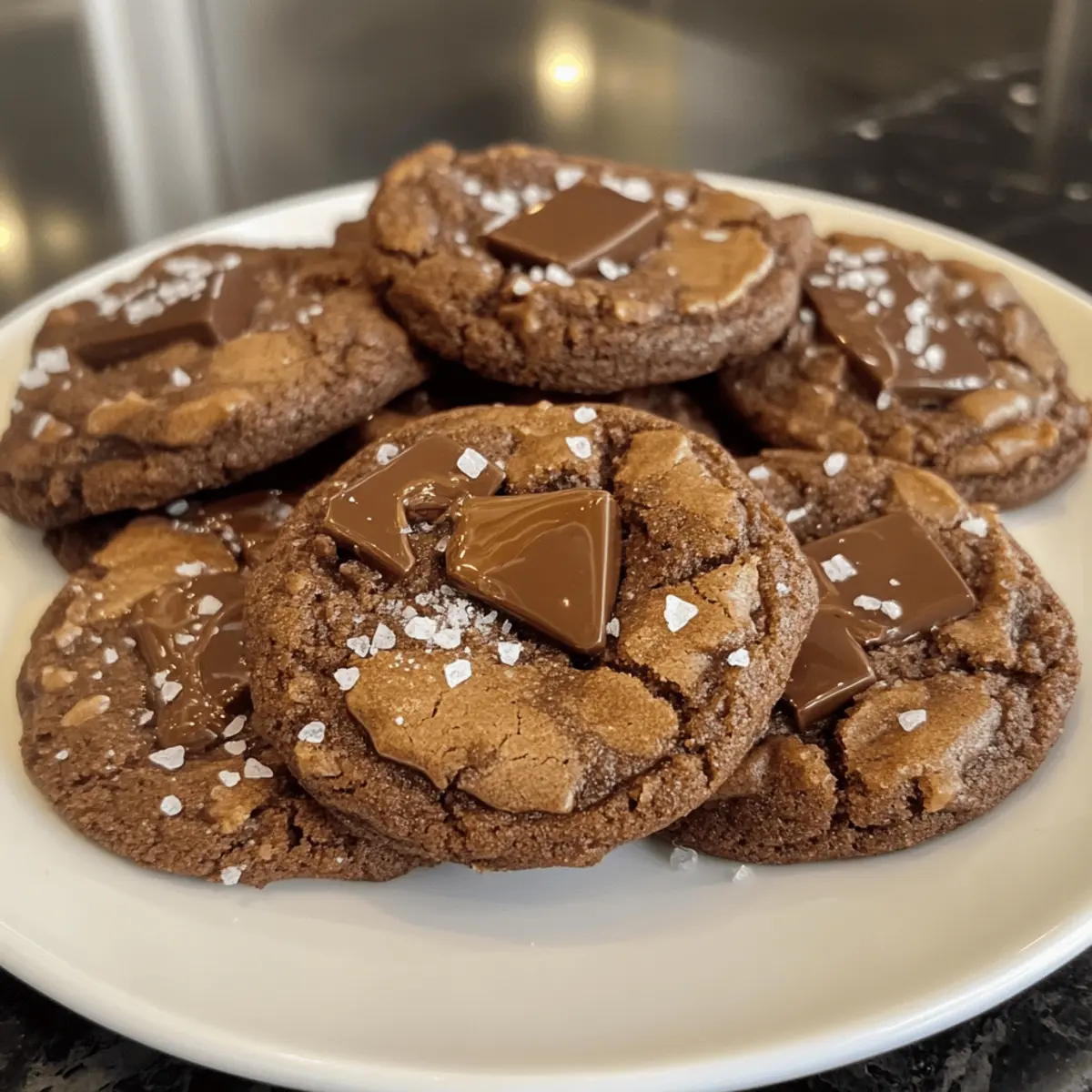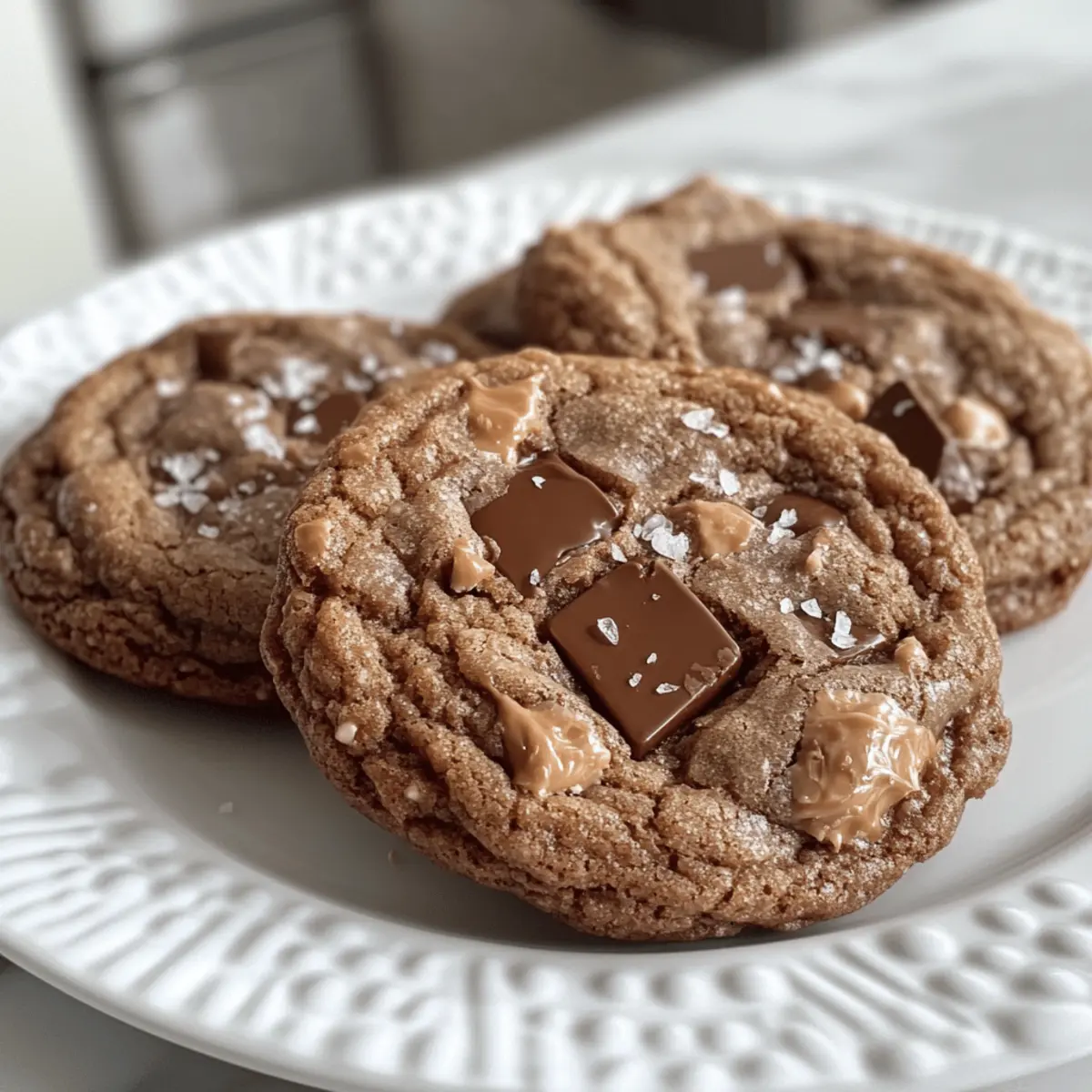As I watched the chocolate melt into glossy ribbons, I knew these Salted Caramel Chocolate Cookies would be a game-changer. Just imagining the rich, velvety chocolate combined with pockets of gooey caramel and a sprinkle of sea salt made my heart skip a beat. This recipe is designed for bakers of all levels and offers the delightful warmth of comfort food while also impressing with its gourmet flair. Not only are these cookies a quick treat to whip up, but their rich indulgence has the power to convert anyone tired of fast food into a baking enthusiast. So, are you ready to elevate your dessert game and impress your friends with homemade magic? Let’s dive in! Why are These Cookies a Must-Try? Irresistible Flavor: The combination of rich chocolate and gooey caramel creates an explosion of taste, making every bite unforgettable. Easy to Make: Whether you’re a seasoned baker or just starting out, this recipe is straightforward and requires minimal ingredients. Customizable Options: Want a different flavor? Switch to dark chocolate or use your favorite caramel candies. Feel free to make it your own! Perfect for Sharing: Bake a batch for gatherings or gift them—who wouldn’t love a homemade treat? They’re sure to be a crowd-pleaser! Quick Preparation: With only a short chilling time and minimal bake, you’ll have warm cookies in no time. Perfect for those spontaneous cravings! Comforting and Luxurious: These cookies balance everyday comfort with an upscale twist, offering a delightful dessert for any occasion. Why not try these deliciously indulgent Chocolate Hazelnut Crunch Cookies next? They’re another tasty way to elevate your baking skills! Salted Caramel Chocolate Cookies Ingredients For the Cookie Base Unsalted Butter – Provides rich flavor and moisture; chill if too soft to handle easily. Brown Sugar – Adds moisture and a slight caramel flavor; can substitute with coconut sugar for a unique twist. Granulated Sugar – Ensures sweetness and structure; no direct substitution recommended. Large Eggs – Binds the ingredients together and adds moisture; make sure they’re at room temperature for the best mixing. Vanilla Extract – Essential for enhancing flavor; always opt for pure vanilla for a richer taste. All-Purpose Flour – Forms the base of the cookie; for gluten-free options, use a gluten-free flour blend. Unsweetened Cocoa Powder – Provides the chocolate flavor; Dutch-processed cocoa will yield a deeper taste. For the Leavening Agents Baking Soda – Acts as a leavening agent to help cookies rise; ensure it’s fresh for optimal results. Salt – Balances sweetness and elevates the overall flavor; kosher salt works best for texture. For the Indulgence Chocolate Chips – Adds chunks of chocolate; feel free to mix dark and milk chocolate for extra flavor complexity. Salted Caramel Sauce – Introduces gooey richness; extra for drizzling on top can make it even more decadent! Sea Salt Flakes – Sprinkled on top for a delightful sweet and savory balance; optional for a rustic presentation. These Salted Caramel Chocolate Cookies are not just a treat; they’re a journey into blissful indulgence that will renew your love for baking! Step‑by‑Step Instructions for Salted Caramel Chocolate Cookies Step 1: Preheat the Oven Begin by preheating your oven to 350°F (175°C). This ensures a perfectly baked cookie with a slightly crispy edge and chewy center. While the oven warms up, prepare your cookie sheets by lining them with parchment paper to prevent sticking and make cleanup a breeze. Step 2: Cream the Butters and Sugars In a large mixing bowl, combine softened unsalted butter, brown sugar, and granulated sugar. Using a handheld or stand mixer, cream these ingredients together on medium speed until the mixture becomes light and fluffy, approximately 2-3 minutes. This step is crucial for achieving airy and tender Salted Caramel Chocolate Cookies. Step 3: Incorporate the Eggs and Vanilla Add the large eggs to the butter-sugar blend, one at a time, mixing well after each addition. Next, pour in the vanilla extract, continuing to mix until fully incorporated. This step will enrich the dough with moisture and flavor, enhancing the overall taste of your cookies. Step 4: Mix the Dry Ingredients In a separate bowl, whisk together the all-purpose flour, unsweetened cocoa powder, baking soda, and salt. Ensure there are no lumps in the dry ingredients as they will help provide structure and prevent the cookies from spreading too much. This mixture will be the base of your indulgent cookie dough. Step 5: Combine Wet and Dry Mixtures Gradually add the dry ingredient mixture to the wet ingredients, stirring gently with a wooden spoon or spatula until just combined. Be careful not to overmix, as this can result in tougher cookies. You want your Salted Caramel Chocolate Cookies to remain soft and chewy with rich flavor. Step 6: Fold in Chocolate and Caramel Gently fold in the chocolate chips and salted caramel sauce, making sure they are evenly distributed throughout the dough. The caramel will add gooey pockets of sweetness, while the chocolate gives that rich, melty texture every cookie lover craves. You’ll start to see the promise of indulgence in each scoop! Step 7: Chill the Dough To make the dough easier to handle, cover the bowl and refrigerate for about 30 minutes. Chilling the dough helps the flavors meld and strengthens the dough, making it less sticky when you start to scoop out cookie portions. This step will take your Salted Caramel Chocolate Cookies to the next level! Step 8: Scoop and Shape Once chilled, use a cookie scoop or tablespoon to portion out the dough onto your prepared baking sheets, spacing them about 2 inches apart. If you like, make a small indent in the center of each portion and add a teaspoon of extra salted caramel for a delightful surprise. Step 9: Bake to Perfection Bake the cookies in your preheated oven for 10-12 minutes. Keep an eye on th