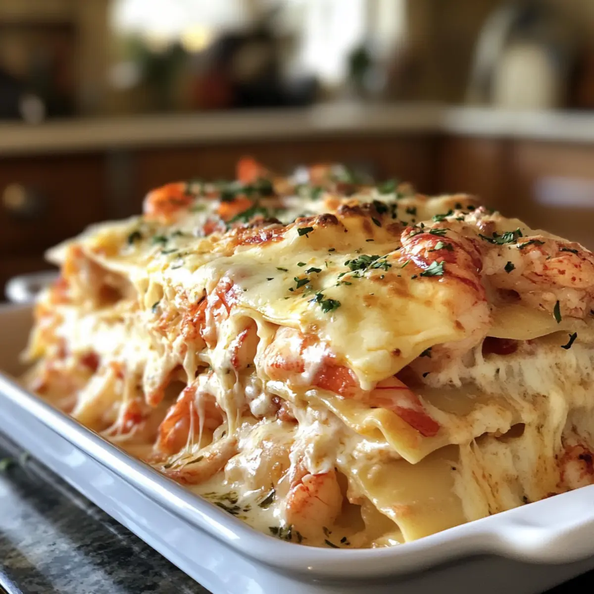 If anyone in your household has seafood allergies, it’s best to avoid this dish altogether due to the lobster and shrimp. For a similar experience without seafood, consider a vegetable lasagna with roasted veggies or a hearty cheese lasagna, keeping the texture and comfort but staying safe for those with allergies.