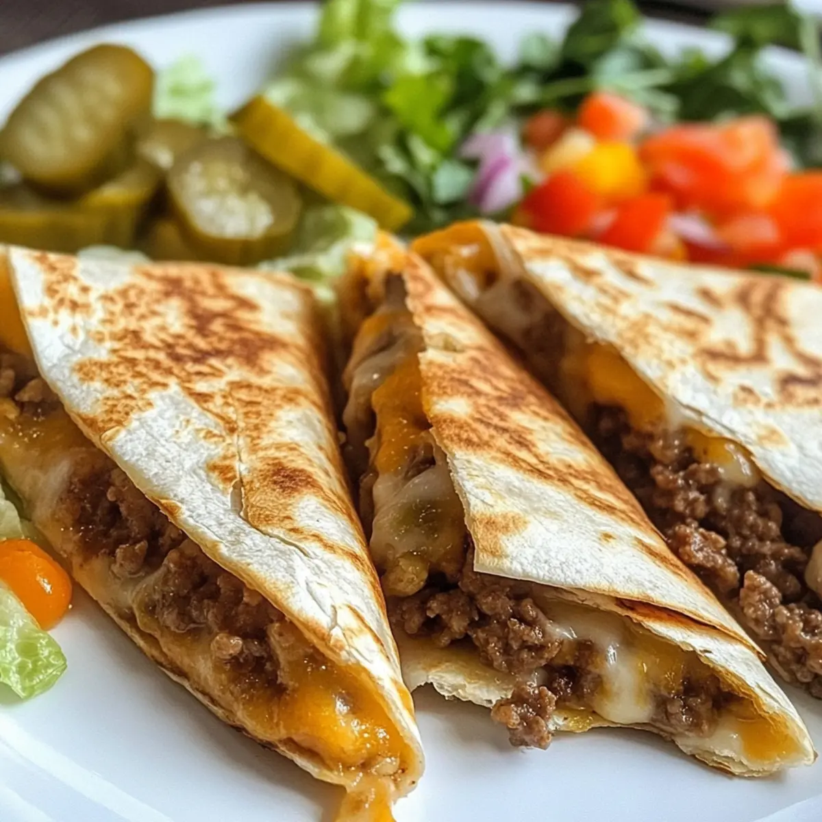 As I flipped through old family cookbooks, a memory sparked—those lazy summer nights when we’d crowd around the grill, savoring juicy burgers fresh off the flames. Enter Smashburger Quesadillas, where that nostalgic flavor meets the convenience of a quick dinner! In just 20 minutes, these irresistible quesadillas meld savory beef with gooey cheese, offering a customizable delight for everyone at the table. Whether you’re hosting a gathering or simply looking to whip up a nourishing meal after a long day, you’ll appreciate how easily these can fit into your routine. And with options for gluten-free tortillas and a vegetarian twist, they even accommodate various dietary preferences. Ready to elevate your dinner game with a delicious fusion of comfort food? Let’s dive in! Why Are Smashburger Quesadillas Irresistible? Crispy Comfort: These Smashburger Quesadillas boast a perfectly crispy exterior that contrasts beautifully with a gooey, cheesy center, making every bite delightful. Quick and Easy: Ready in just 20 minutes, they transform busy weeknight dinners into stress-free culinary experiences. Customizable Goodness: From spicy chorizo to breakfast options, feel free to explore unique variations that cater to your cravings. Diet-Friendly: With tips for gluten-free and vegetarian substitutions, everyone can indulge in this comfort food classic. Crowd-Pleasing Taste: The combination of juicy beef and melting cheese ensures these quesadillas are a hit at any gathering. Dive into the recipe and discover how to serve them with various toppings like sriracha mayo or ranch for an added flavor kick! Smashburger Quesadillas Ingredients • Get ready to create this delicious meal! For the Quesadillas Ground Beef (1 lb, 80/20 fat ratio) – Adds rich flavor and juiciness; swap for Impossible Meat or seasoned black beans for a vegetarian option. Flour Tortillas (4 large, burrito-sized) – Provides structure and a soft base; use almond flour tortillas for a gluten-free alternative. Shredded Cheese (1 cup, half sharp cheddar, half American) – Ensures excellent melt and flavor; try dairy-free shreds for a non-dairy version. Seasoning (salt, pepper, garlic powder) – Enhances flavor; consider adding 1 tsp smoked paprika and ½ tsp onion powder for a classic burger taste. For the Toppings Pickles – Adds a tangy crunch; dill or bread-and-butter varieties work well. Diced Onions – Offers a sharp and refreshing bite; sweet or red onions are great choices. Lettuce – Provides a crisp texture and freshness; use shredded iceberg or romaine. Sauces – Customize with your favorites like ranch, sriracha mayo, or nacho cheese for an unforgettable flavor experience. Get ready to serve these Smashburger Quesadillas with your choice of toppings and take your weeknight dinner to a whole new level of deliciousness! Step‑by‑Step Instructions for Smashburger Quesadillas Step 1: Preheat the Skillet Begin by preheating your cast-iron skillet or griddle over medium-high heat for about 5 minutes. To check if it’s hot enough, flick a few water droplets onto the surface; they should sizzle and evaporate quickly. This sets the stage for achieving that perfect crispy texture in your Smashburger Quesadillas. Step 2: Prepare the Tortillas Take one of your large flour tortillas and spread a generous quarter of the ground beef on one half. Season the meat well with salt, pepper, garlic powder, and any additional spices you desire. This flavorful base is crucial for a lush, juicy bite in your quesadilla. Step 3: Cook the Quesadillas Carefully place the tortilla, beef-side-down, onto the hot skillet. Cook for 2–3 minutes until the edges begin to crisp and turn golden brown. The sizzling sound indicates that the beef is browning perfectly, and this is your cue to flip the tortilla with a spatula. Step 4: Add Cheese and Fold Once flipped, immediately sprinkle a generous portion of shredded cheese over the cooked side of the tortilla. Fold the tortilla in half over the cheese, and gently press down with a spatula to help the cheese melt evenly. This folding creates an irresistible cheesy layer within your Smashburger Quesadillas. Step 5: Grill to Perfection Continue grilling the folded quesadilla for an additional 1–2 minutes on each side. Look for a lovely golden brown color and listen for that satisfying crunch when pressed down slightly. The cheese should be perfectly gooey and melted by this point, ensuring a flavorful interior. Step 6: Rest and Slice After cooking, let the Smashburger Quesadillas rest on a cutting board for about 1 minute. This crucial step allows the cheese to set slightly, making slicing easier and preventing it from oozing out. Use a sharp knife to slice the quesadilla into triangles for a beautiful presentation. Step 7: Serve with Toppings Serve your Smashburger Quesadillas warm, alongside an array of toppings and sauces. Consider offering pickles, diced onions, lettuce, and various sauces like ranch or sriracha mayo for dipping. This customization not only elevates flavor but also adds a fun, interactive element to your meal. Expert Tips for Smashburger Quesadillas Crispy Necessity: Brush tortillas with mayo instead of oil before grilling for an even crispier finish that adds flavor. Freshly Shredded: Always shred your own cheese; pre-shredded options often contain anti-caking agents that prevent optimal melting. Resting Time: Let quesadillas rest for a minute after cooking to help the cheese set. This makes slicing easier and prevents the filling from spilling out. Double the Recipe: Consider making a double batch; these Smashburger Quesadillas tend to go quickly, especially during gatherings! Spice It Up: Experiment with your seasonings! Adding spices like smoked paprika or onion powder not only enhances flavor but also aligns with personal taste preferences. How to Store and Freeze Smashburger Quesadillas Fridge: Store cooked quesadillas in an airtight container for up to 3 days.