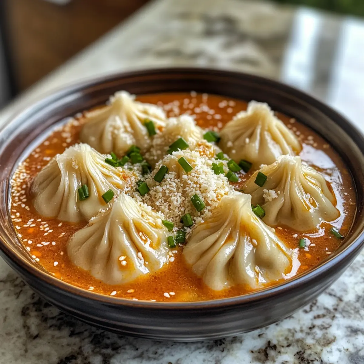 The aroma of garlic sizzling in butter instantly whisked me back to a bustling street market where savory treats beckon from every corner. Today, I’m excited to share my take on Soup Dumplings in Creamy Gochujang Sauce—a delightful fusion of Chinese and Korean flavors that brings a comforting twist to your dinner table. This quick recipe combines tender dumplings with a rich, spicy sauce that’ll have you forgetting about takeout. With its creamy texture and just the right amount of kick, it’s not just a meal; it’s a cozy hug on a plate. Plus, you can whip it up in under 30 minutes, making it a perfect weeknight dinner. Ready to elevate your homemade cooking with this satisfying dish? Let’s dive in! Why are these dumplings irresistible? Fusion Flavors: This recipe celebrates a unique blend of savory Chinese and spicy Korean elements, making every bite an explosion of taste. Quick and Easy: Perfect for busy nights, you can whip this dish up in just 30 minutes, saving time without sacrificing flavor. Creamy Delight: The heavy cream and Gochujang sauce create a luscious texture that coats the dumplings beautifully, offering a comforting experience. Customizable: Explore different taste profiles by substituting the dumplings or trying bulgogi chicken dumplings for a delicious twist. Crowd-Pleasing Appeal: Whether it’s a family dinner or a cozy gathering, this dish is sure to impress guests—forget about takeout and opt for this homemade gem! Soup Dumplings in Creamy Gochujang Sauce Ingredients For the Sauce • Butter – Adds richness and helps in sautéing garlic for a delicious base. • Garlic (minced) – Provides savory aroma and depth of flavor; can substitute with garlic powder for a quick fix. • Heavy Cream – Creates the creamy consistency of the sauce; coconut cream is a great non-dairy alternative. • Water – Helps achieve the desired sauce consistency. • Gochujang – This unique Korean chili paste contributes spice and sweetness; no direct substitute, but sriracha can be a milder option. For the Dumplings • Frozen Soup Dumplings – The heart of this dish, these pre-made dumplings are filled with meat or broth; consider homemade versions for freshness. For the Topping • Parmesan Cheese (freshly grated) – Enhances the creamy sauce with a cheesy depth; nutritional yeast works as a vegan substitute. • Sage or Chives – Fresh herbs for garnish that add brightness and a pop of color. Step‑by‑Step Instructions for Soup Dumplings in Creamy Gochujang Sauce Step 1: Sauté the Garlic Begin by melting 1 tablespoon of butter in a large pot over medium-high heat. Once the butter is bubbling, add the minced garlic, sautéing for 1-2 minutes until it turns fragrant and lightly golden. Keep an eye on it to prevent burning; this step creates the flavorful base for your Soup Dumplings in Creamy Gochujang Sauce. Step 2: Make the Creamy Sauce Next, add 1 cup of heavy cream and ½ cup of water to the pot, stirring well to combine. Then, introduce 3 tablespoons of gochujang into the mixture, ensuring it incorporates smoothly into the cream. Continue cooking on medium heat, bringing the sauce to a light simmer. You’ll know it’s ready when steam rises, and the mixture is creamy with a hint of spice. Step 3: Add the Dumplings Carefully add your frozen soup dumplings to the simmering sauce, ensuring there’s space between them to prevent sticking. Cover the pot with a lid and reduce the heat slightly. Allow the dumplings to cook for approximately 12 minutes, or until they are fully cooked and tender. Watch for the dumplings to puff up, indicating they’re ready to enjoy in the luscious sauce. Step 4: Final Touches Once the dumplings are cooked, remove the lid and turn off the heat. Sprinkle freshly grated Parmesan cheese generously over the top, letting it melt slightly into the warm sauce. For a bright finish, garnish with chopped sage or chives, adding a pop of color and flavor. Your Soup Dumplings in Creamy Gochujang Sauce are now ready to serve—delightful and comforting in every bite! What to Serve with Soup Dumplings in Creamy Gochujang Sauce Elevate your meal experience by pairing these flavorful dumplings with delicious sides that complement their spicy and creamy essence. Steamed Jasmine Rice: The fluffy and subtly fragrant rice offers a neutral base that soaks up the rich sauce beautifully, balancing the spiciness of the dish. Fresh Cucumber Salad: Crisp cucumbers tossed in a tangy rice vinegar dressing provide crunch and acidity, refreshing your palate between bites of creamy dumplings. Garlic Bok Choy: Sautéed in garlic and soy sauce, this tender greens dish adds vibrant color and a slight umami kick, enhancing the overall flavor experience. Kimchi: Spicy, tangy kimchi adds a delightful zing to your meal, creating a perfect contrast to the creamy texture of the dumplings while amplifying the Korean influence. Miso Soup: A warm bowl of miso soup offers comforting broth and umami flavor, making it an excellent starter that pairs well with the rich dumpling dish. Lemonade Iced Tea: A refreshing beverage like this combines sweet and tart notes, complementing the spiciness and creaminess while keeping you cool during your meal. Sesame Green Beans: Tossed with sesame oil and seeds, these tender green beans add a delightful crunch and nutty flavor that wonderfully accompany the dumplings. Chocolate Mousse: To end on a sweet note, a light and airy chocolate mousse offers a luscious dessert experience that harmonizes indulgently with the meal’s complex flavors. Expert Tips for Soup Dumplings in Creamy Gochujang Sauce Butter Basics: Use unsalted butter to control the seasoning. This helps maintain the sauce’s natural flavors without overwhelming it. Garlic Gold: Keep a close watch while sautéing garlic to avoid burning. Overcooked garlic can turn your sauce bitter, diminishing the delightful taste of your Soup Dumplings in Creamy Gochujang Sauce. Perfect