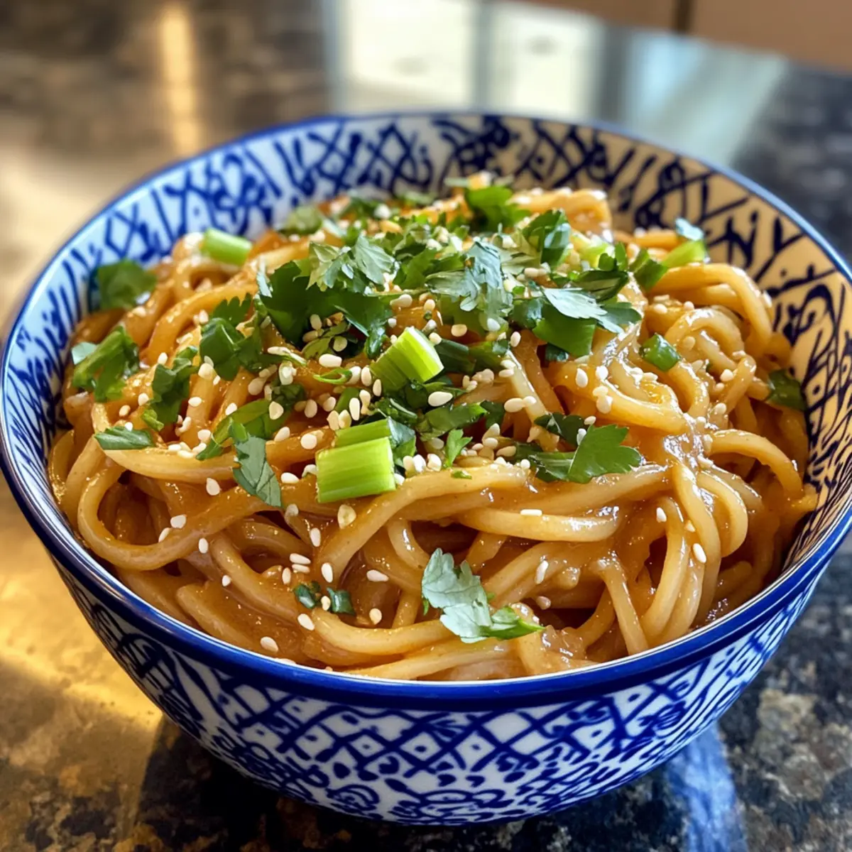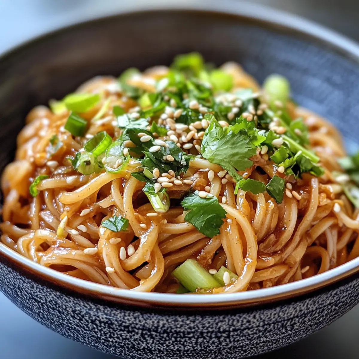 “Did you catch that?” I overheard someone exclaim as the irresistible aroma of my latest culinary creation wafted through the kitchen. Those Spicy Peanut Noodles are more than just dinner; they’re a celebration of flavor and simplicity that comes together in just 15 minutes. Imagine indulging in a dish that beautifully blends creamy peanut butter with a touch of spicy heat, all while keeping it vegan and easy for busy weeknights. What I love most about this recipe is its versatility—feel free to customize it with your favorite noodles and toppings! Plus, it makes an impressive yet low-effort meal that’s sure to impress anyone at your table. Are you ready to elevate your pasta game with these delightful noodles? Let’s dive into the tasty adventure together! Why are these noodles so special? Quick preparation: Whip these Spicy Peanut Noodles up in just 15 minutes! Perfect for a busy weeknight meal. Flavor explosion: The blend of creamy peanut butter and garlic chili oil guarantees a taste sensation that will leave your taste buds dancing. Customizable: Enjoy endless variations by switching up noodles, adding veggies, or even trying different proteins like tofu or chicken. Vegan-friendly: Everyone can indulge in this dish, as it’s entirely plant-based, making it a great option for all types of eaters. Crowd-pleaser: Impress your family and friends with a dish that’s both quick and full of flavor—everyone will be asking for seconds! You might also love these Thai Peanut Noodles for another delicious twist! Spicy Peanut Noodles Ingredients • A flavorful base for your culinary masterpiece. For the Sauce Peanut Butter – Adds a creamy richness; smooth or chunky varieties work well! Soy Sauce – Provides umami and saltiness; adjust according to taste preferences. Dark Mushroom Soy Sauce – Optional for enhanced color and depth of flavor. Garlic Chili Oil – Infuses heat; substitute with regular chili oil if desired. Gochugaru – Adds spice and a smoky touch; swap with other chili powders if needed. Rice Vinegar – Brings acidity to the sauce; can be replaced with Chinese black vinegar. Sugar – Optional for extra sweetness; skip if using sweetened peanut butter. For the Noodles Dry Wheat Noodles – The base of the dish; knife cut noodles bring great texture, while rice noodles offer a gluten-free option. For Garnish Chopped Spring Onions/Green Onions – Adds freshness and a pop of color on top. Chopped Coriander – Lends a fresh herbaceous note to every bite. Sesame Seeds – Offers crunch and visual appeal; sprinkle generously. Sesame Oil – Optional drizzle for an added layer of flavor. These Spicy Peanut Noodles are your new go-to for a quick, satisfying meal that’s as versatile as it is delicious! Step‑by‑Step Instructions for Spicy Peanut Butter Noodles Step 1: Prepare the Sauce In a large mixing bowl, combine 1/2 cup of creamy peanut butter, 2 tablespoons of soy sauce, and 1 tablespoon of rice vinegar. Add 1 tablespoon of garlic chili oil, 1 teaspoon of gochugaru, and 1 teaspoon of sugar if desired. Pour in 2-3 tablespoons of warm water to thin the sauce, and whisk until it’s smooth and creamy, ensuring no lumps remain. Step 2: Cook Noodles Bring a pot of salted water to a rolling boil, then add 8 ounces of dry wheat noodles. Cook them according to package instructions, typically around 5-7 minutes, until they are al dente. Stir occasionally to prevent sticking, and check for doneness by tasting a noodle. Once cooked, promptly drain the noodles in a colander. Step 3: Combine Noodles and Sauce Immediately transfer the drained noodles back into the pot, keeping the heat on low. Pour the prepared peanut sauce over the hot noodles, stirring vigorously to ensure each strand is well coated. If the sauce is too thick, add a splash of reserved noodle water to achieve the desired consistency. Step 4: Garnish and Serve Once the noodles are fully coated with the Spicy Peanut Butter sauce, share them onto serving plates. Top generously with chopped spring onions, fresh coriander, and a sprinkle of sesame seeds. For an extra flavor boost, drizzle some sesame oil over the noodles before serving. Enjoy your beautiful, colorful dish immediately! Spicy Peanut Noodles Variations Feel free to explore and customize these delightful noodles to fit your cravings and dietary preferences! Dairy-Free: Use coconut milk or almond milk for a creamy twist without dairy. It adds a subtle sweetness that pairs beautifully with the spiciness. Gluten-Free: Substitute with rice noodles or gluten-free spaghetti for a version that suits gluten-sensitive diners. Rice noodles offer a fantastic texture that harmonizes with the peanut sauce. Extra Veggies: Add shredded carrots, zucchini, or bell peppers for a crunchy pop of color and nutrition. Not only do they look vibrant, but they also enhance the overall flavor profile and make the dish even more satisfying! Protein Boost: Toss in diced tofu or grilled chicken for a heartier meal. These proteins soak up the sauce perfectly, offering a delicious contrast to the creamy noodles. Spice It Up: Increase the heat with extra gochugaru or sliced fresh chili peppers. This adjustment is great for spice lovers who crave an extra kick that’ll have their taste buds singing! Noodle Variations: Experiment with soba or udon noodles for different textures. Soba noodles add a nutty flavor, while udon lends a chewy satisfaction that enhances each bite. Nut-Free: If avoiding nuts, try sunbutter or a mixture of tahini and soy sauce for a similar creaminess in the sauce. A delightful alternative that maintains the spirit of the dish while catering to nut allergies. Garnish Twist: Add roasted peanuts, chopped mint, or even a squeeze of lime for vibrant flavor contrasts. These additions elevate the overall dish experience—fresh, crunchy, and utterly delicious! By making these swaps or additions, you’ll transform the already delightful Spicy Peanut Noodles 