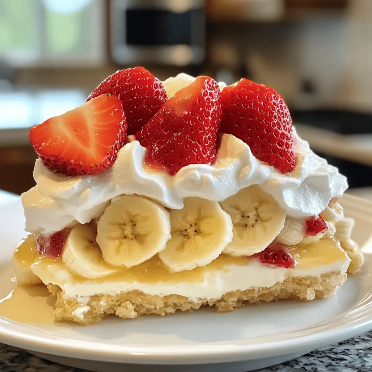 While rummaging through my fridge the other day, a delightful idea hit me: what if I could capture the summer essence in a dessert? That’s how my No-Bake Strawberry Banana Pudding Dream came to life! It combines the sweet, fruity goodness of ripe strawberries and bananas with a creamy pudding base, all without ever turning on the oven. This recipe not only takes just 20 minutes to whip up, making it perfect for those busy weeknights, but it also serves as a vibrant centerpiece for gatherings. Plus, it’s vegetarian and can be made gluten-free with a quick swap. How about serving this luscious dessert at your next get-together or simply treating yourself after a long day? Let’s dive into the tasty layers of this irresistible dream! Why Will You Love This No-Bake Dessert? Indulgence in Simplicity: You’ll love how easy it is to prepare this Strawberry Banana Pudding Dream, needing just 20 minutes of your time! Perfect for anyone, regardless of cooking expertise. Refreshing & Fruity: With layers of juicy strawberries and bananas, this dessert offers a refreshing burst of flavor that feels like summer on a spoon! Cater to Everyone: This recipe is not only vegetarian but can easily be made gluten-free by choosing the right wafers. Visual Appeal: The colorful layers create a stunning centerpiece, ensuring your guests are impressed before they even take a bite. Make-Ahead Magic: It’s an ideal option for busy days; prepare it ahead of time and let it chill, allowing the flavors to meld beautifully. For those who love fruity desserts, why not check out my Refreshing Virgin Strawberry too? This dessert is bound to be a crowd-pleaser! Strawberry Banana Pudding Dream Ingredients For the Base Vanilla Wafers – Base layer for structure and crunch; consider gluten-free wafers if needed. Milk – Aids in achieving the right consistency for the pudding mix; any dairy or non-dairy milk works beautifully. For the Fruit Layers Bananas – Provide natural sweetness and creaminess; use ripe bananas for optimal flavor. Strawberries – Fresh fruit layer adding bright flavor and color; frozen strawberries can be substituted if thawed and drained properly. For the Creamy Pudding French Vanilla Pudding Mix – Thickening agent that enhances the creamy texture; no direct substitutions suggested. Cream Cheese – Adds richness and creaminess to the pudding; Greek yogurt or dairy-free cream cheese can be used as substitutes. Sweetened Condensed Milk – Sweetens the mixture while adding creaminess; no substitutions suggested due to its unique properties. For the Topping Whipped Topping – Topping that adds a light, fluffy finish; homemade whipped cream can be used for a fresher option. Step‑by‑Step Instructions for Strawberry Banana Pudding Dream Step 1: Prepare the Pudding Base In a mixing bowl, combine 8 ounces of softened cream cheese with 1 cup of sweetened condensed milk. Using a hand mixer or whisk, blend until the mixture is smooth and creamy, about 2 minutes. Once smooth, gradually add in 1 package of French vanilla pudding mix and 2 cups of milk, continuing to mix until there are no lumps, approximately 3 minutes. Step 2: Layer the Vanilla Wafers In a large glass dish or trifle bowl, layer 1 cup of vanilla wafers at the bottom to form a sturdy base. Make sure the wafers are arranged evenly, as this will provide structure and crunch to your Strawberry Banana Pudding Dream. This initial layer is crucial for achieving that delightful balance of textures in your dessert. Step 3: Add the Fruity Layers Slice 2 ripe bananas and layer them evenly over the vanilla wafers, followed by a generous layer of 1 cup of fresh strawberries, hulled and sliced. Take your time to distribute the fruit for even coverage, as this will enhance the visual appeal and flavor of each delectable spoonful of the pudding as we continue building our dream dessert. Step 4: Pour the Pudding Mixture Gently pour half of the creamy pudding mixture over the layered fruit and vanilla wafers, ensuring even distribution across the entire surface. Use a spatula to help smooth the pudding and make sure every piece of fruit is well covered. This layering method not only looks appealing but also helps meld the flavors beautifully as the dessert sets. Step 5: Repeat the Layering Process Add another layer of vanilla wafers, followed by the remaining banana slices and strawberries. Pour the rest of the creamy pudding mixture over this new layer, again ensuring even coverage. Smooth out the top with a spatula to make it visually appealing. This second layer brings balance to the Strawberry Banana Pudding Dream, ensuring flavor in every bite. Step 6: Finish with Whipped Topping Spread 2 cups of whipped topping evenly over the final layer of pudding, creating a light, fluffy cap for your dessert. Ensure the whipped topping is distributed evenly, as it serves as the delightful finishing touch with its airy texture. This step not only adds flavor but also a beautiful presentation to your Strawberry Banana Pudding Dream. Step 7: Chill and Serve Cover the dish with plastic wrap and refrigerate for at least 4 hours, allowing the layers to meld and the pudding to set. Once chilled, the flavors will be beautifully combined, and the texture will be perfect for serving. This dessert can also be made a day in advance for an even more intense flavor experience, making it ideal for any gathering. Expert Tips for Strawberry Banana Pudding Dream Choose Ripe Fruits: Ensure your bananas and strawberries are ripe for the sweetest flavor. Overripe bananas can make the dessert mushy, so aim for that perfect balance. Layer Carefully: When layering, take your time to distribute the fruit and wafers evenly. This will ensure each bite of your Strawberry Banana Pudding Dream is flavorful and visually appealing. Avoid Excess Moisture: If using frozen strawberries, be sure to thoroughly thaw and drain them to prevent your pudding from becoming watery. Excess moisture ca