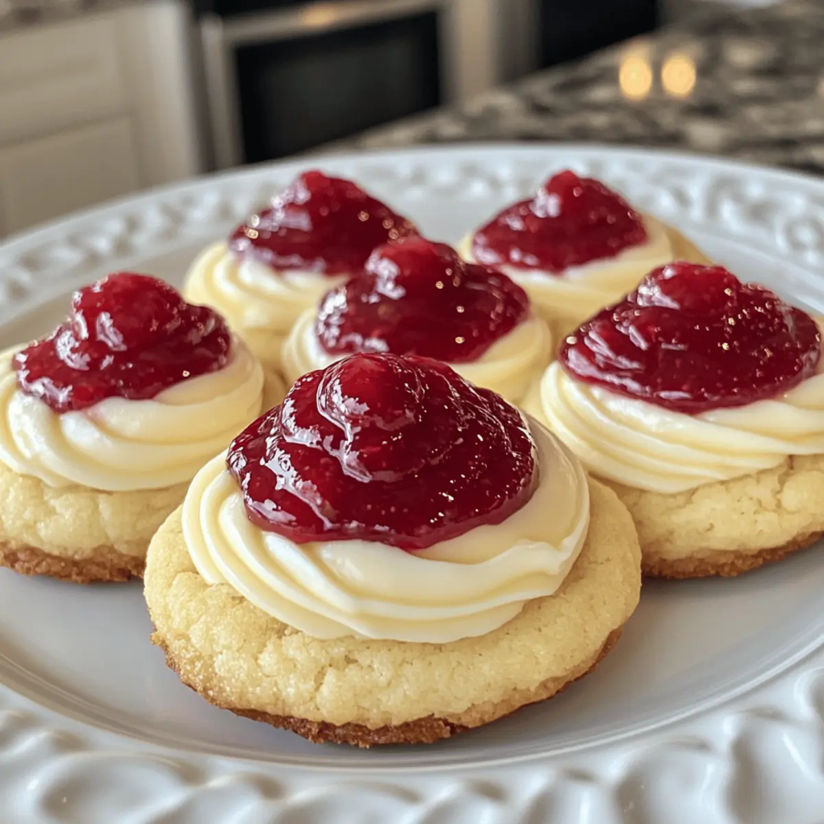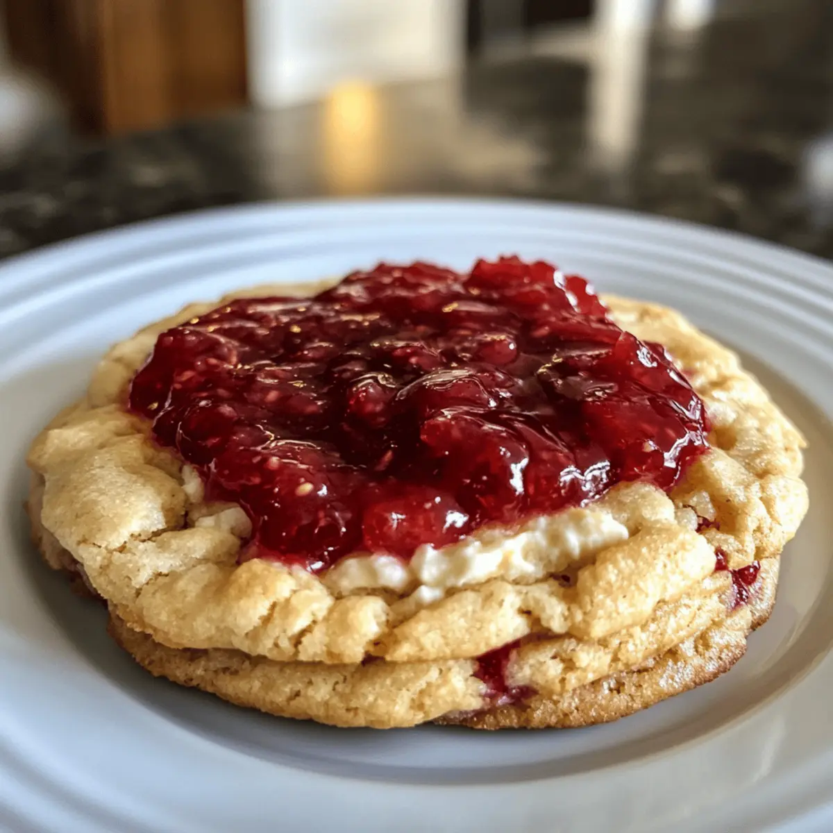 A calm Sunday afternoon nestled by the window and a sudden urge for something sweet sent me diving into my pantry. That’s when I stumbled upon the perfect pairing: creamy cheesecake mingling with my homemade strawberry jam. It piqued my creative spirit, leading me to whip up some irresistible Strawberry Cheesecake Cookies. These delightful treats are not only a quick baking project, but they’re also a showstopper at dinner parties that will have your guests singing your praises. With a tender cookie base wrapped around a luscious cheesecake filling, each bite unveils a delightful burst of juicy strawberry goodness. Curious to see how this delightful fusion of cookie and cheesecake comes together? Let’s bake! Why Are Strawberry Cheesecake Cookies a Must-Try? Irresistible Combination: These cookies blend two beloved desserts into one heavenly bite. Homemade Strawberry Jam adds a touch of freshness, making each cookie burst with flavor. Quick and Easy: No need for complicated techniques; this recipe is simple enough for all skill levels. Impressive Presentation: Serve them warm, and watch your guests raving about the gorgeous layers of cheesecake and jam. Customizable Delight: Feel free to swap the strawberries for your favorite fruit or embellish with flavored extracts like almond. Perfect for Any Occasion: Whether it’s a cozy tea time or a festive gathering, these cookies are sure to impress. Elevate your dessert spread by checking out our delightful Strawberry Cheesecake Stuffed or indulge in a simple yet elegant Free Strawberry Cheesecake for more delicious options! Strawberry Cheesecake Cookies Ingredients Discover the essentials needed to create these delightful Strawberry Cheesecake Cookies! For the Cheesecake Filling Cold Cream Cheese – Provides richness and fluffiness; keep it cold for better texture while mixing. Sugar – Sweetens both the cheesecake filling and cookie dough; adjust to your taste preference. Vanilla Extract – Adds a warm, aromatic note; pure vanilla yields the best flavor. For the Strawberry Jam Diced Strawberries – Ensures bright, fresh flavor; choose ripe, seasonal strawberries for maximum sweetness. Sugar – Helps in creating the jam’s sweetness and texture; feel free to adjust based on berry tartness. For the Cookie Dough Flour – The main structure of the cookies; all-purpose flour works best, or use gluten-free flour as a substitute. Baking Powder – Helps cookies rise; ensure it’s fresh for optimal results. Baking Soda – Another leavening agent; always check its freshness for best outcomes. Salt – Balances sweetness and enhances flavor, essential for a well-rounded taste. Butter (Softened) – Brings tenderness and rich flavor; make sure it’s at room temperature for proper creaming. Egg – Binds ingredients and adds moisture; using a room temperature egg is preferable. Sugar (for rolling) – Gives the cookies a sparkly finish; coarse sugar can add extra crunch. Each of these ingredients plays a crucial role in creating the soft, buttery texture and striking flavors of your Strawberry Cheesecake Cookies. Happy baking! Step‑by‑Step Instructions for Strawberry Cheesecake Cookies Step 1: Prepare the Cheesecake Filling In a mixing bowl, combine the cold cream cheese, sugar, and vanilla extract. Using an electric mixer, beat the mixture on medium speed until it becomes smooth and fluffy, about 2-3 minutes. Once ready, use a cookie scoop to form small discs and place them on a parchment-lined baking sheet, then transfer to the freezer for at least 1 hour until solid. Step 2: Make the Strawberry Jam In a medium saucepan over medium heat, combine diced strawberries with sugar. Cook the mixture, stirring frequently for about 45 minutes, smashing the strawberries halfway through to release juices. Keep an eye on the jam to prevent burning, and once it thickens and resembles a warm syrup, remove it from heat and allow it to cool completely. Step 3: Prepare the Cookie Dough In a separate bowl, whisk together flour, baking powder, baking soda, and salt. In another bowl, cream softened butter and sugar using an electric mixer until light and fluffy, about 5 minutes. Beat in the room temperature egg and vanilla extract, then gradually fold in the dry ingredients until just combined, ensuring not to overmix the dough. Step 4: Combine Dough and Jam Gently take the cooled strawberry jam and fold in chunks into the cookie dough, being careful not to break the jam up too much. This will create delicious pockets of flavor in your Strawberry Cheesecake Cookies. Chill the dough in the refrigerator for about 30 minutes to make it easier to handle. Step 5: Shape the Cookies After chilling, scoop out approximately two tablespoons of the dough and flatten it in your hand. Place a cheesecake disc in the center, fold the dough around it to enclose completely, and shape it into a ball. Roll each cookie ball in sugar for a sparkly finish, ensuring they are well-coated. Step 6: Bake the Cookies Preheat your oven to 350°F (175°C). Line a baking sheet with parchment paper and arrange the coated cookie balls, leaving space in between. Bake for 11-12 minutes, or until the edges are lightly golden. Gently press each cookie with a cookie cutter while they are warm to achieve that perfect shape, then let cool on the baking sheet for a few minutes before transferring to a wire rack. Make Ahead Options These Strawberry Cheesecake Cookies are perfect for those busy weeknights when you crave something sweet without the hassle! You can prepare the cheesecake filling by mixing the ingredients and freezing small discs up to 24 hours in advance. Additionally, make the homemade strawberry jam ahead of time and store it in the fridge for up to 3 days to prevent the flavors from fading. For the cookie dough, simply prepare it and keep it in the refrigerator for up to 2 days. When you’re ready to bake, just combine the dough with the frozen cheesecake discs and jam, roll